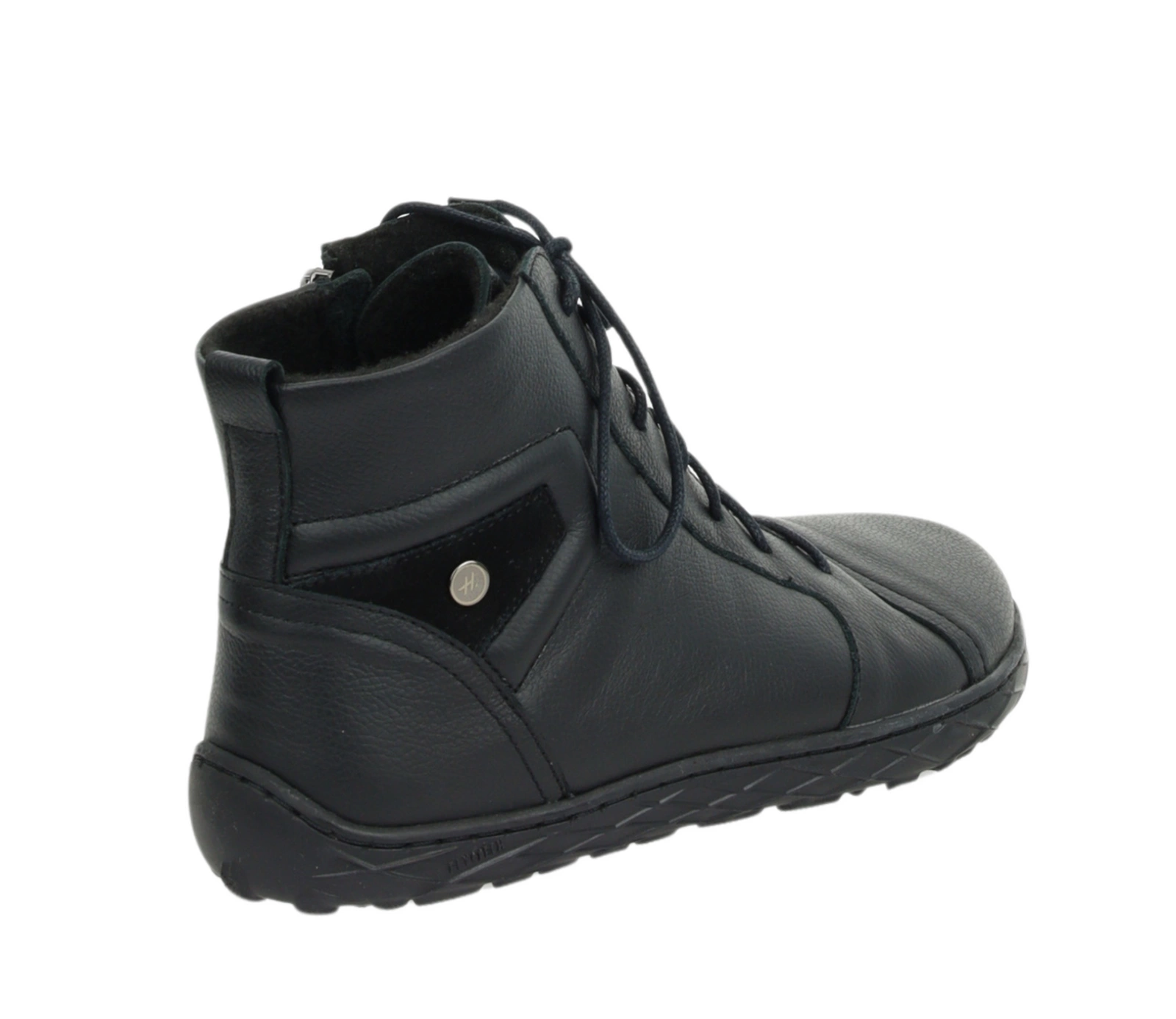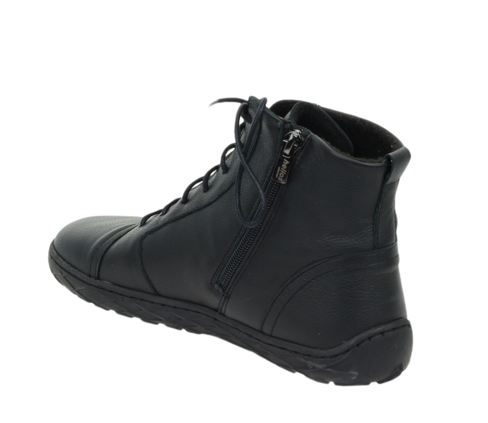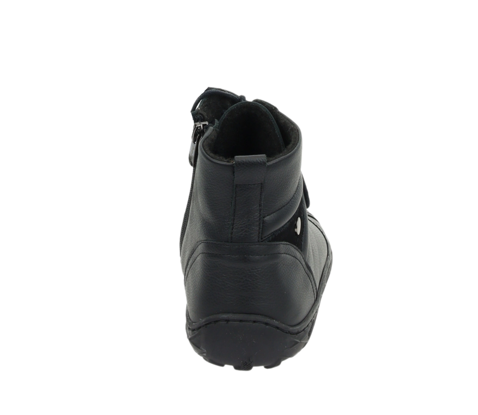 Skórzane czarne botki damskie płaskie na szeroką stopę Helios