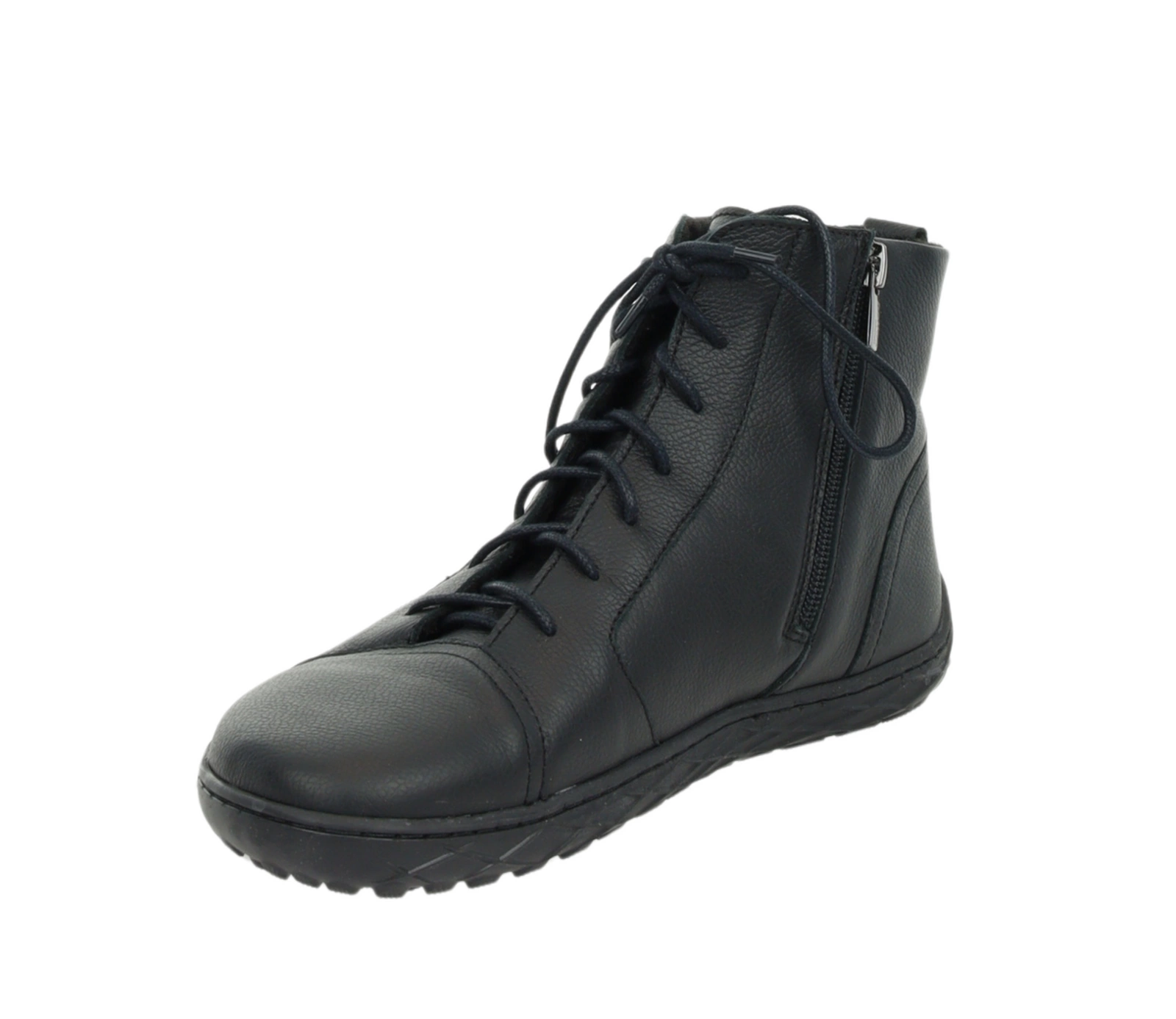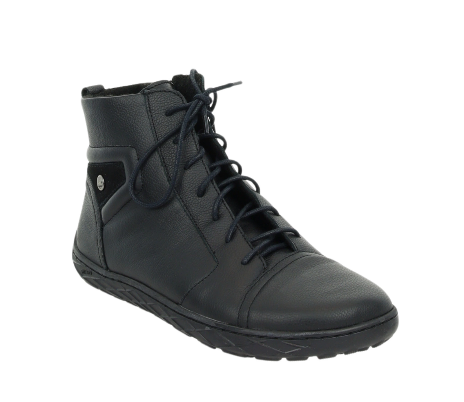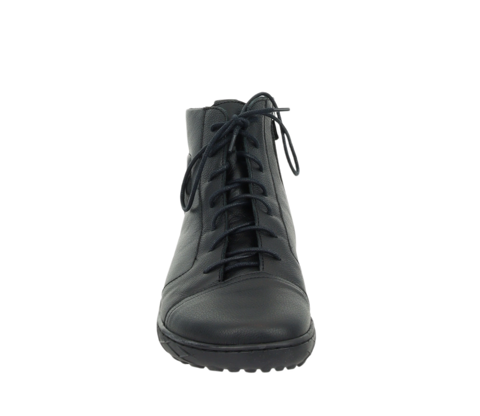 Skórzane czarne botki damskie płaskie na szeroką stopę Helios