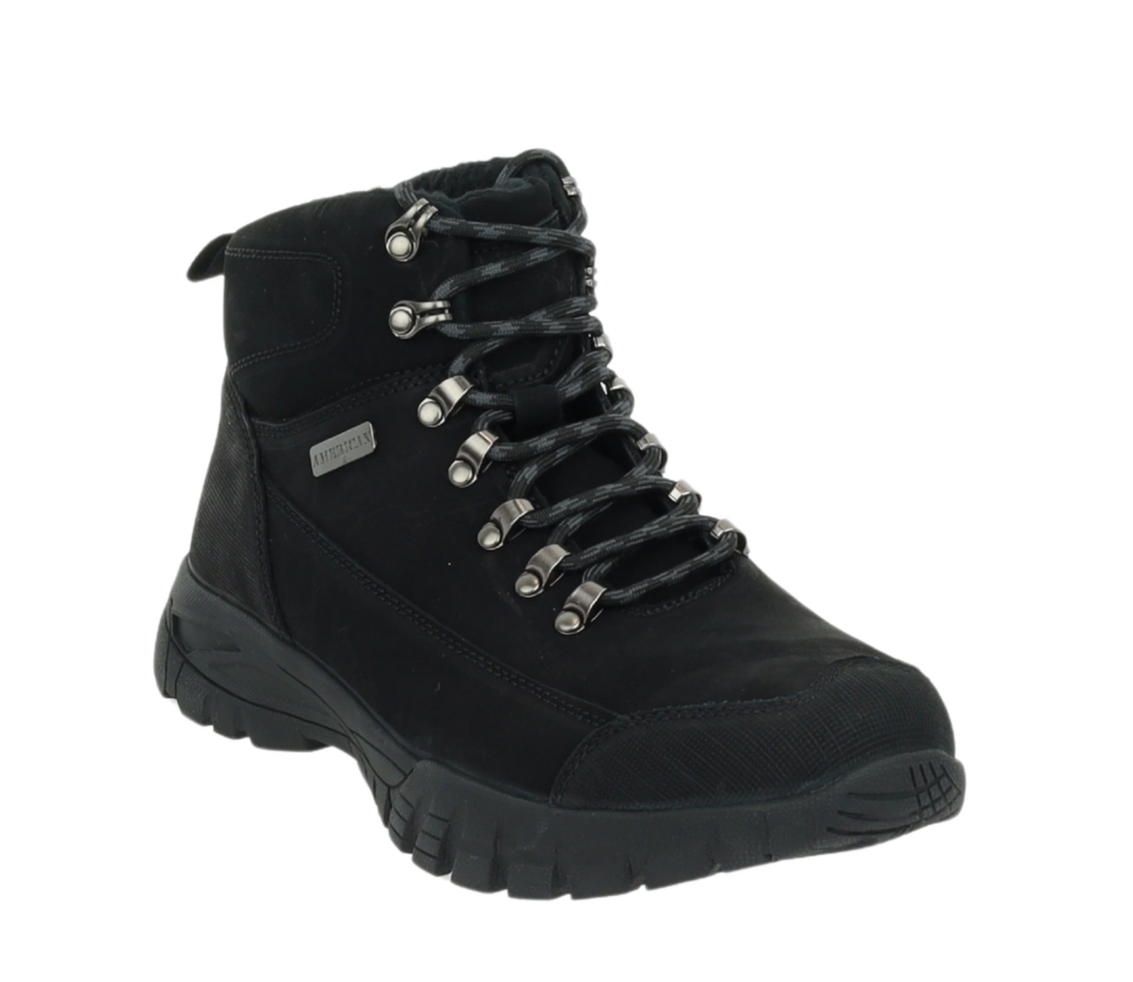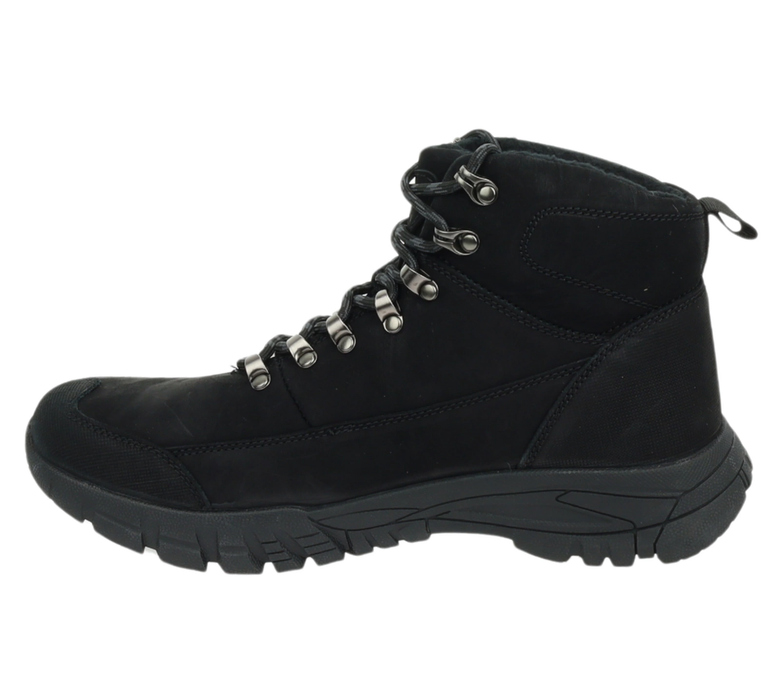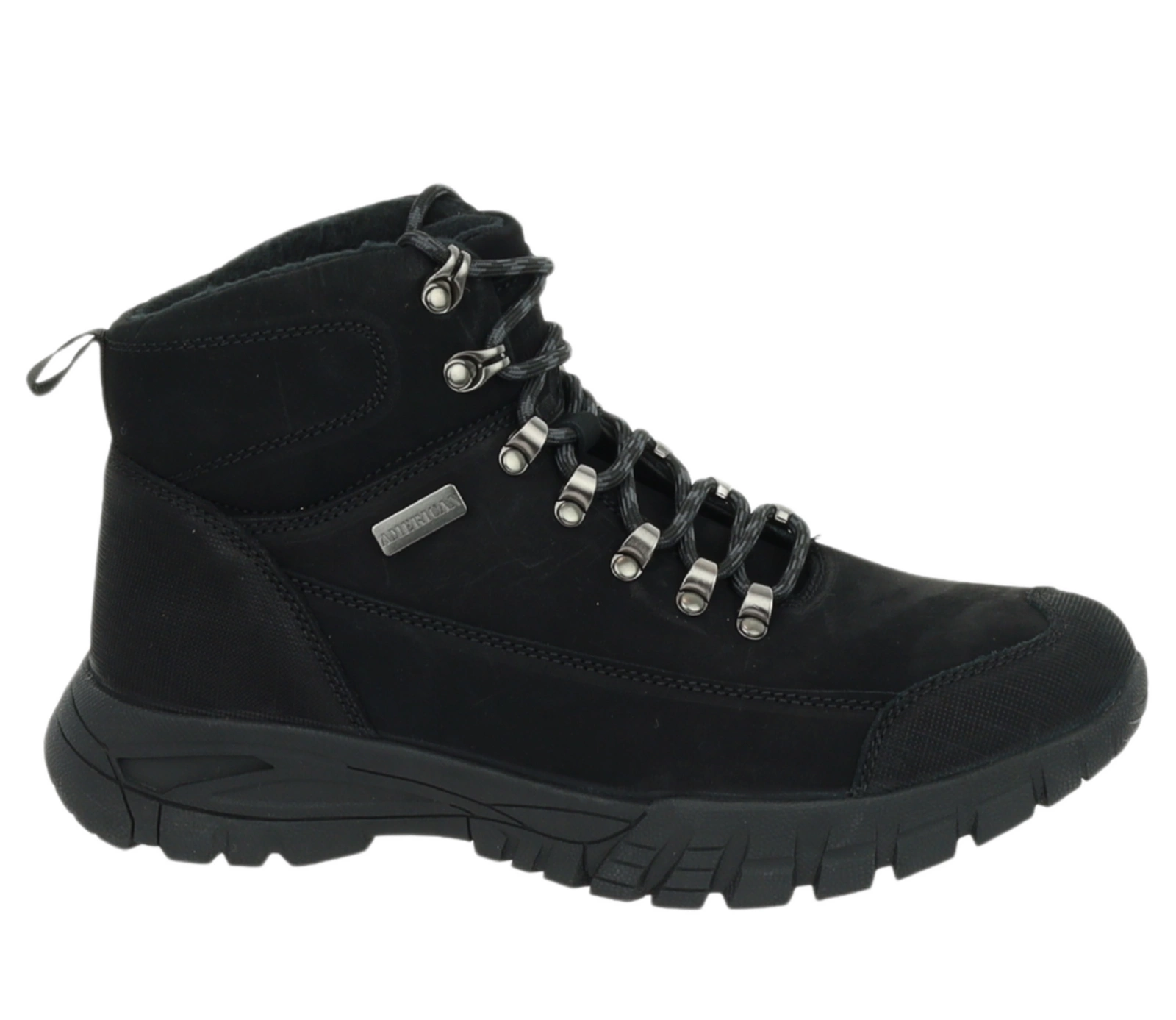 Czarne skórzane buty zimowe męskie trzewiki za kostkę American Club