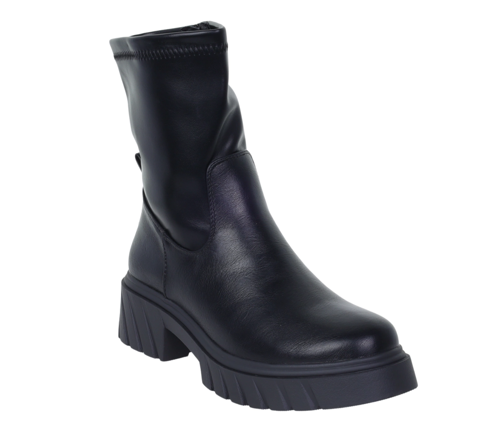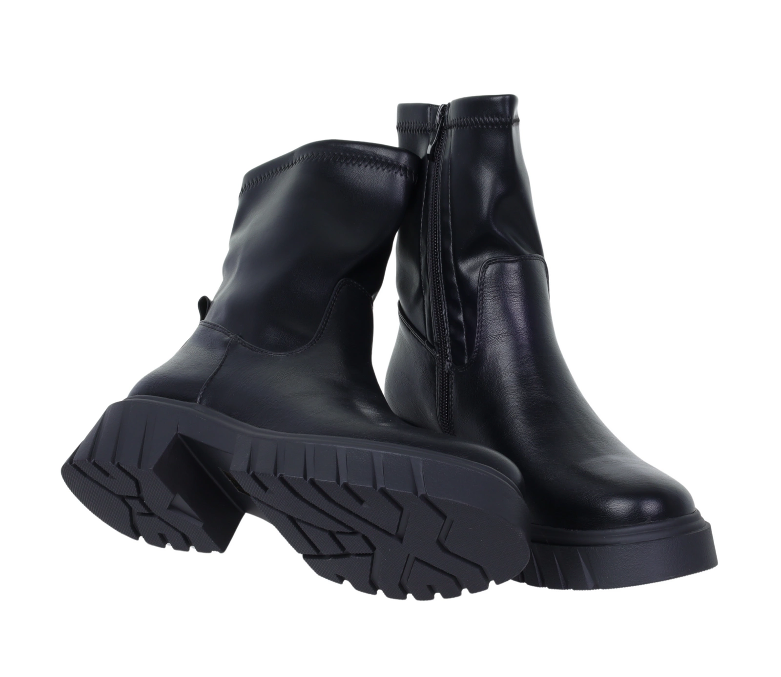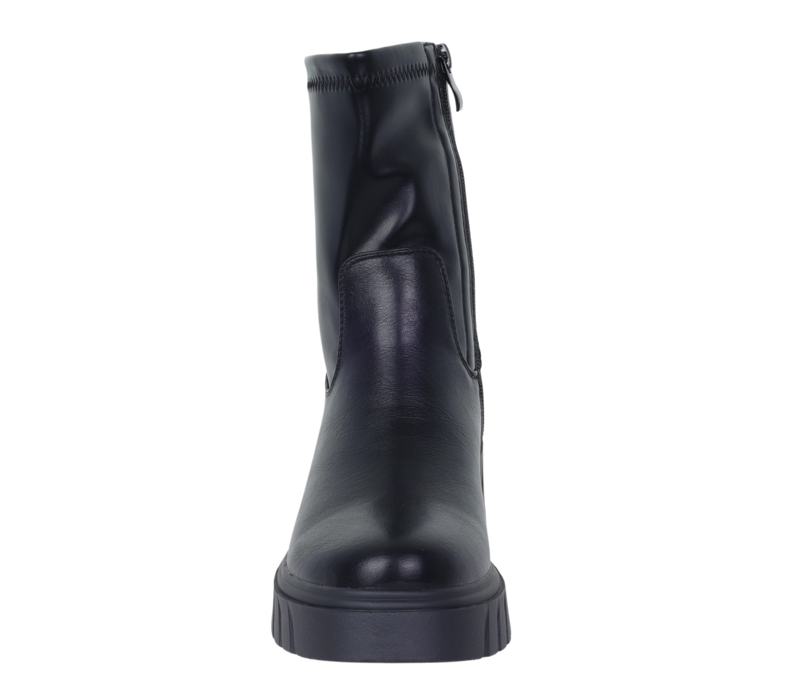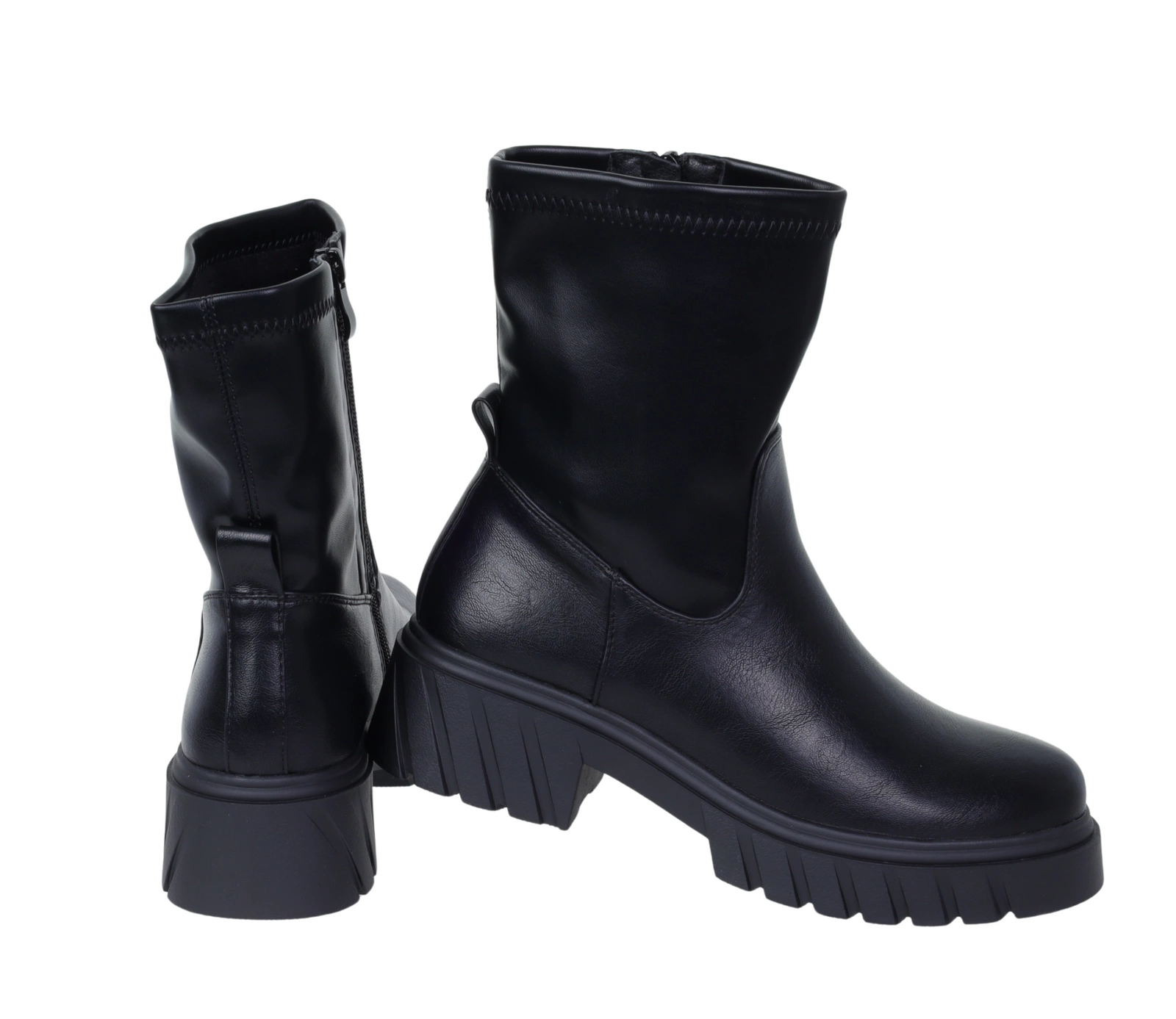 Czarne botki damskie wysokie na grubej platformie licowe Jezzi