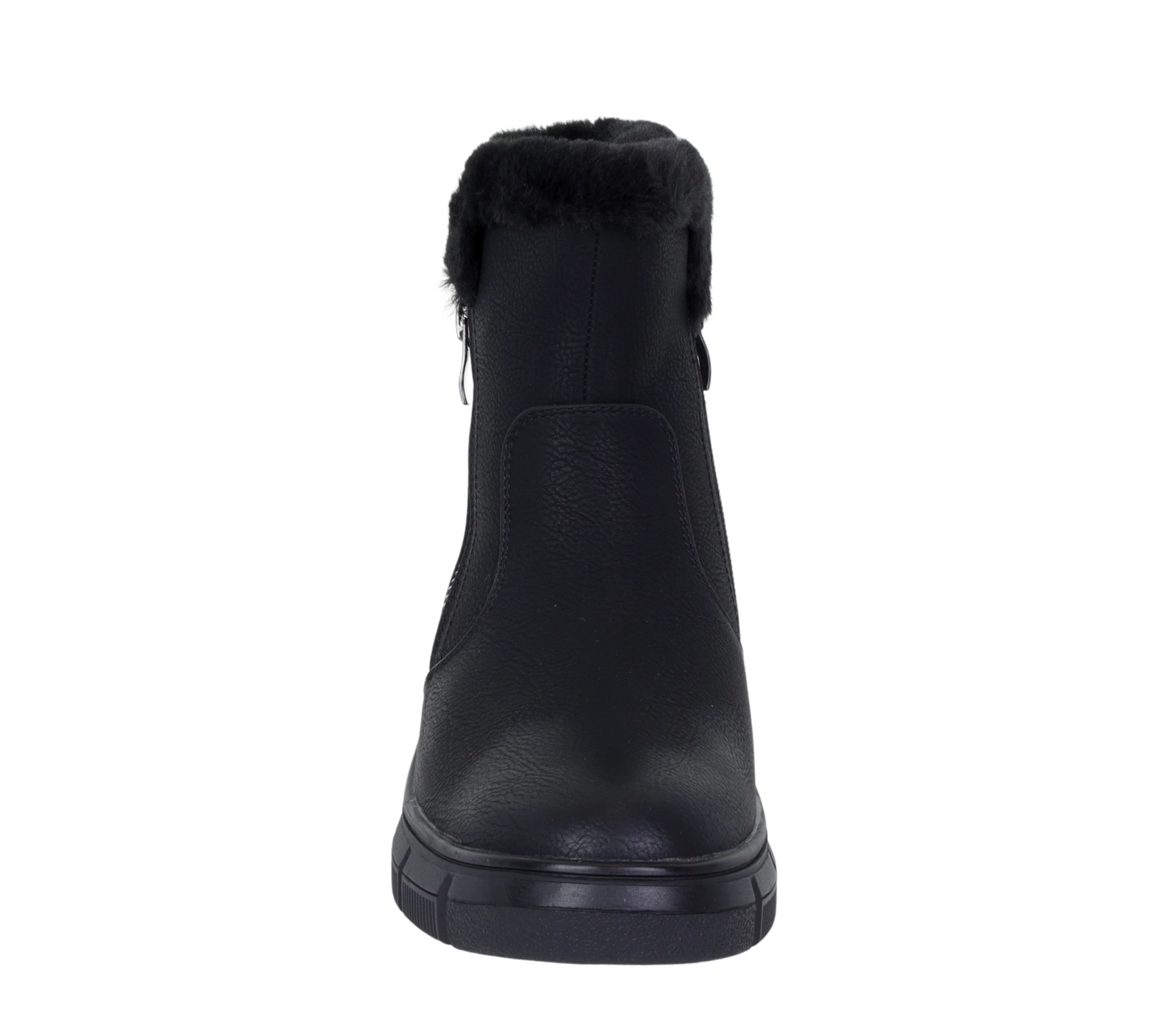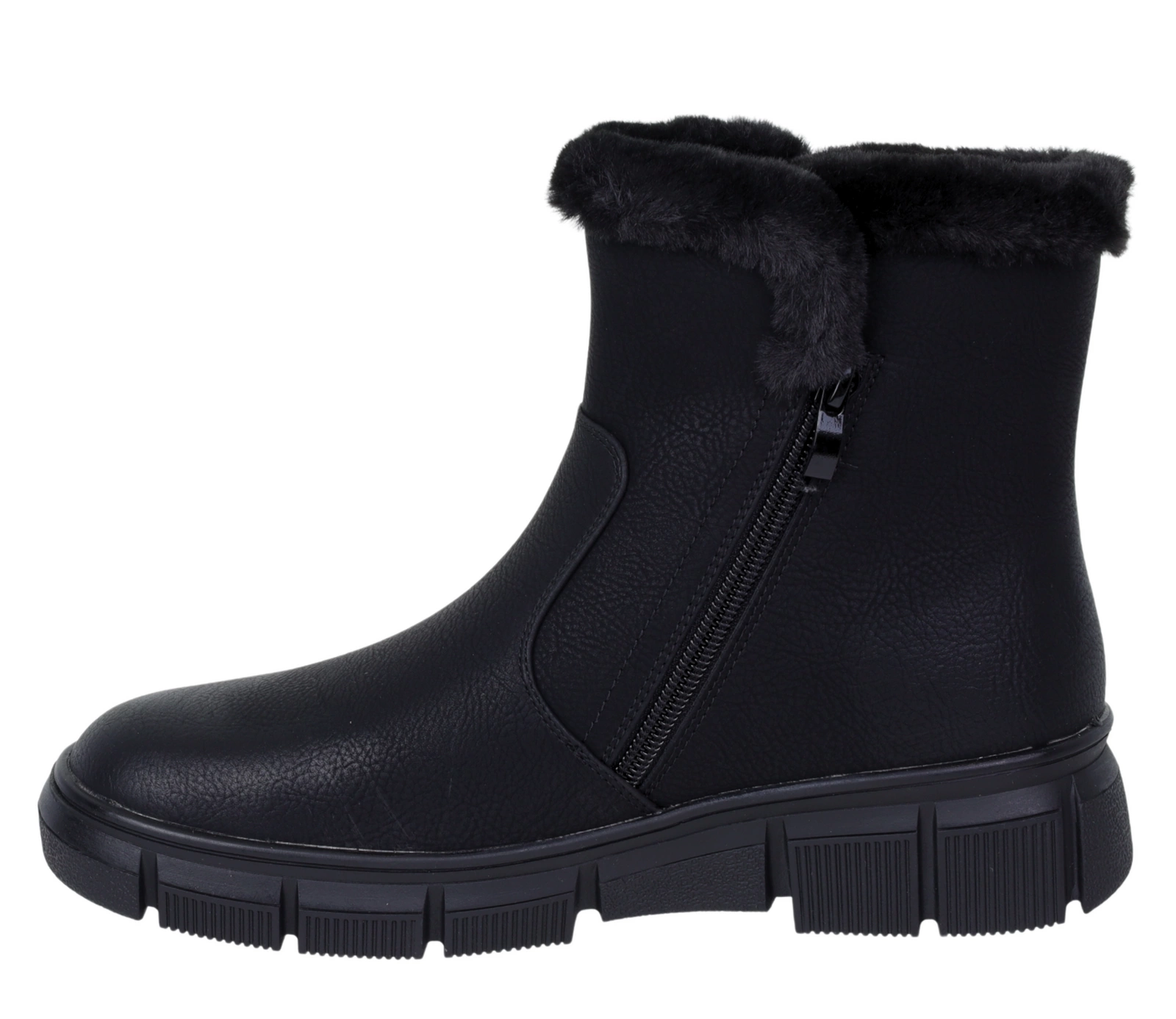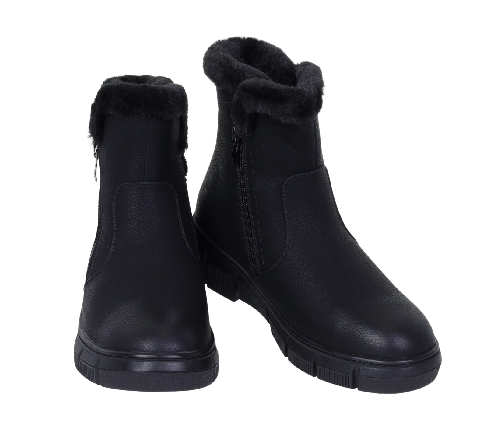 Czarne buty zimowe damskie botki ocieplane futerkiem płaskie Jezzi