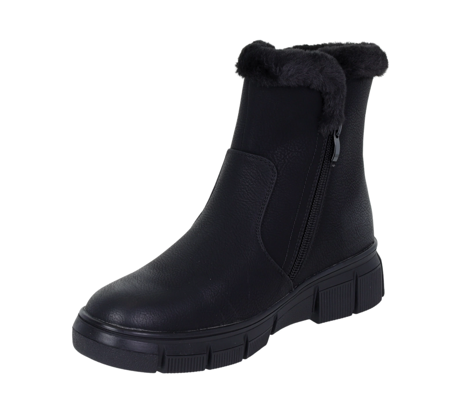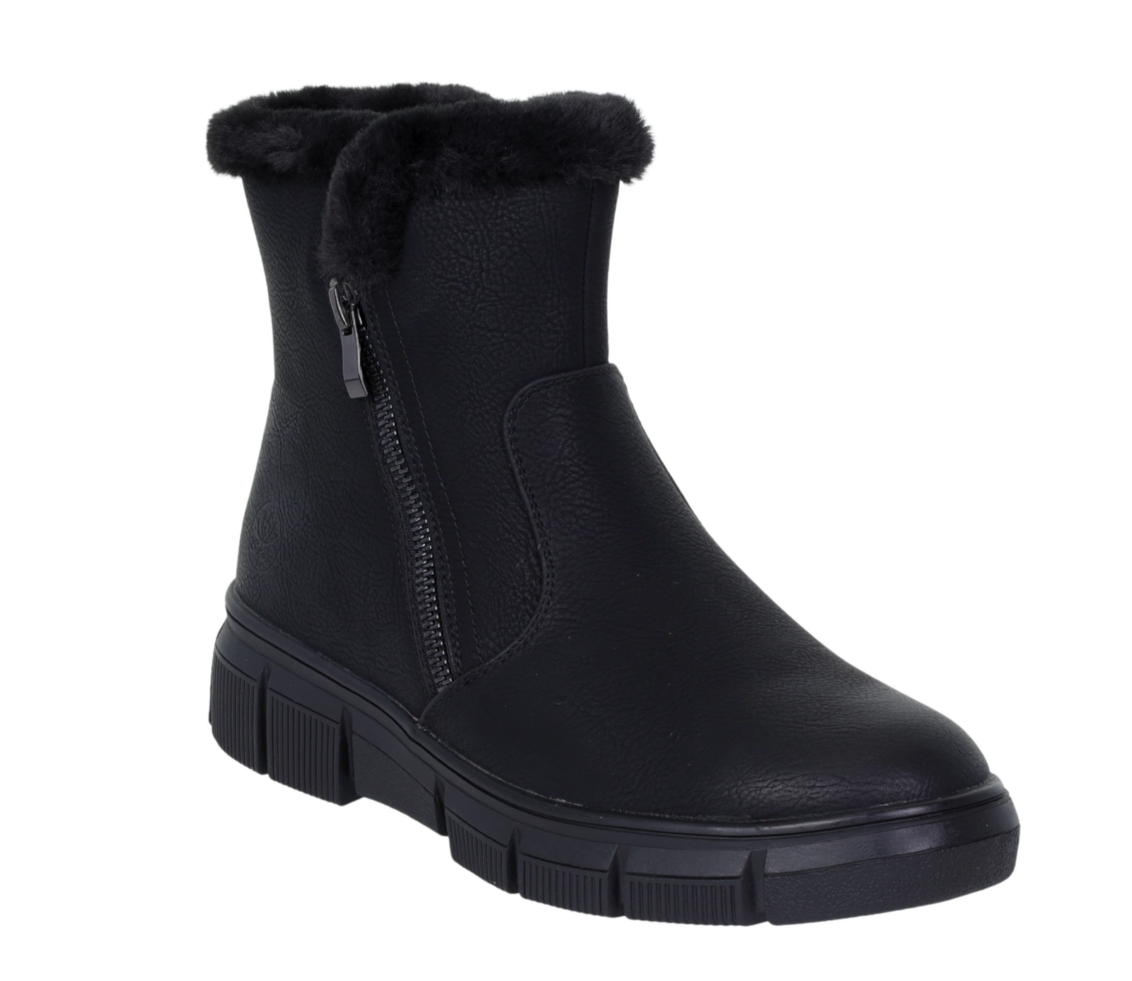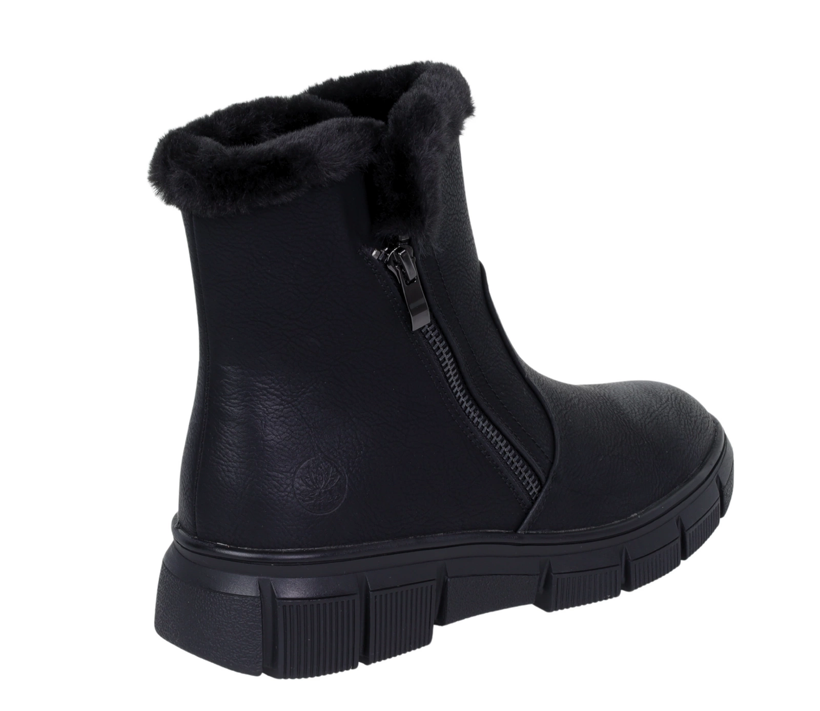 Czarne buty zimowe damskie botki ocieplane futerkiem płaskie Jezzi