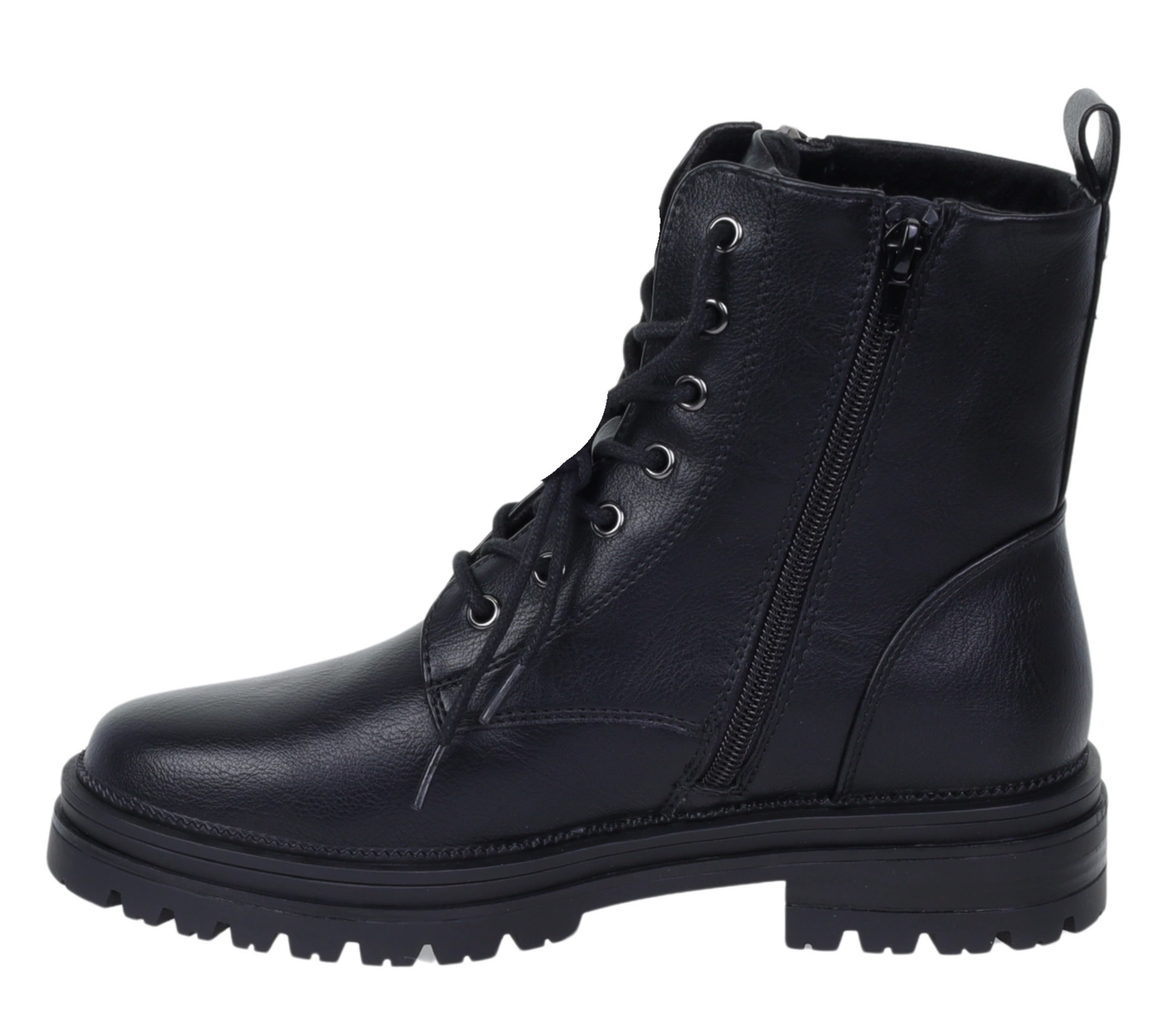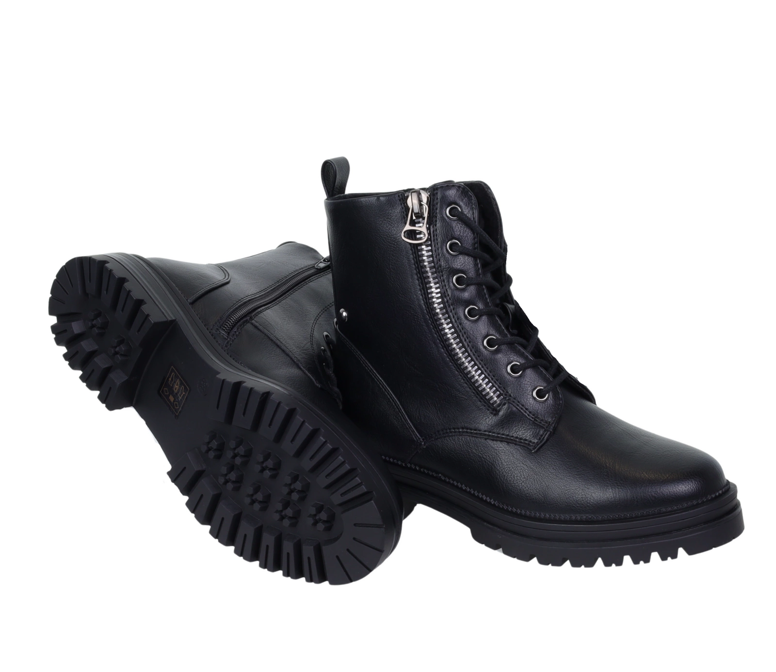 Czarne botki damskie ocieplane traperki na zamek i sznurowadła Jezzi