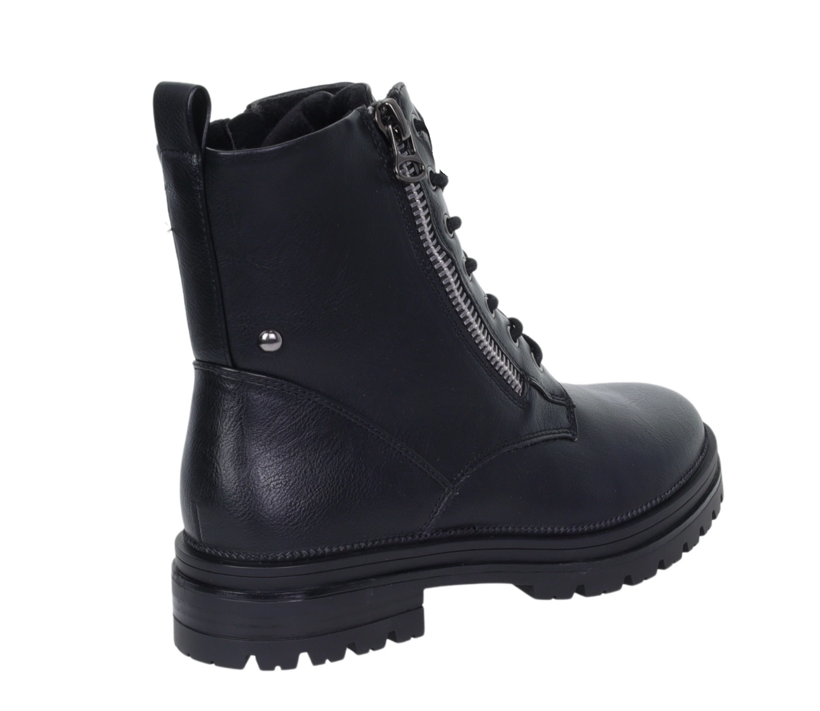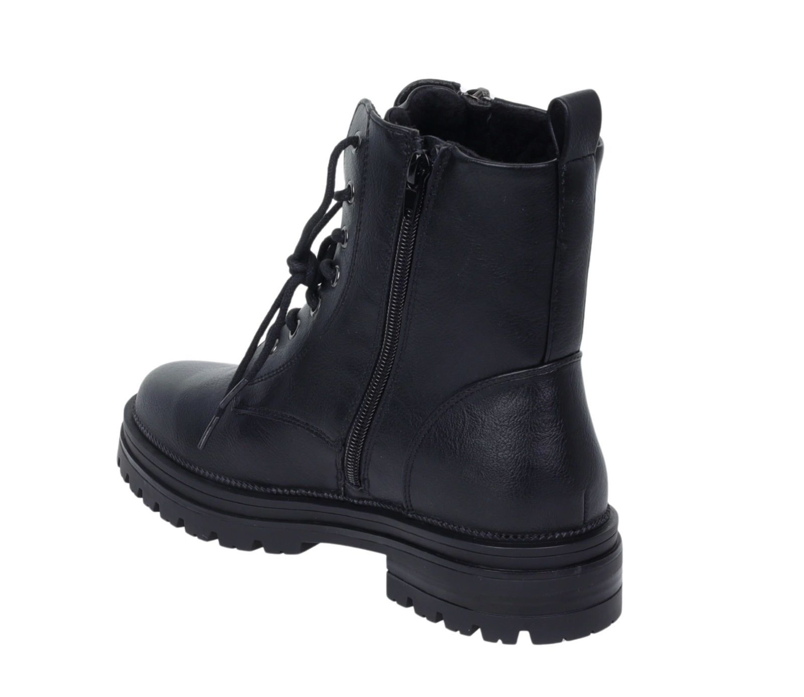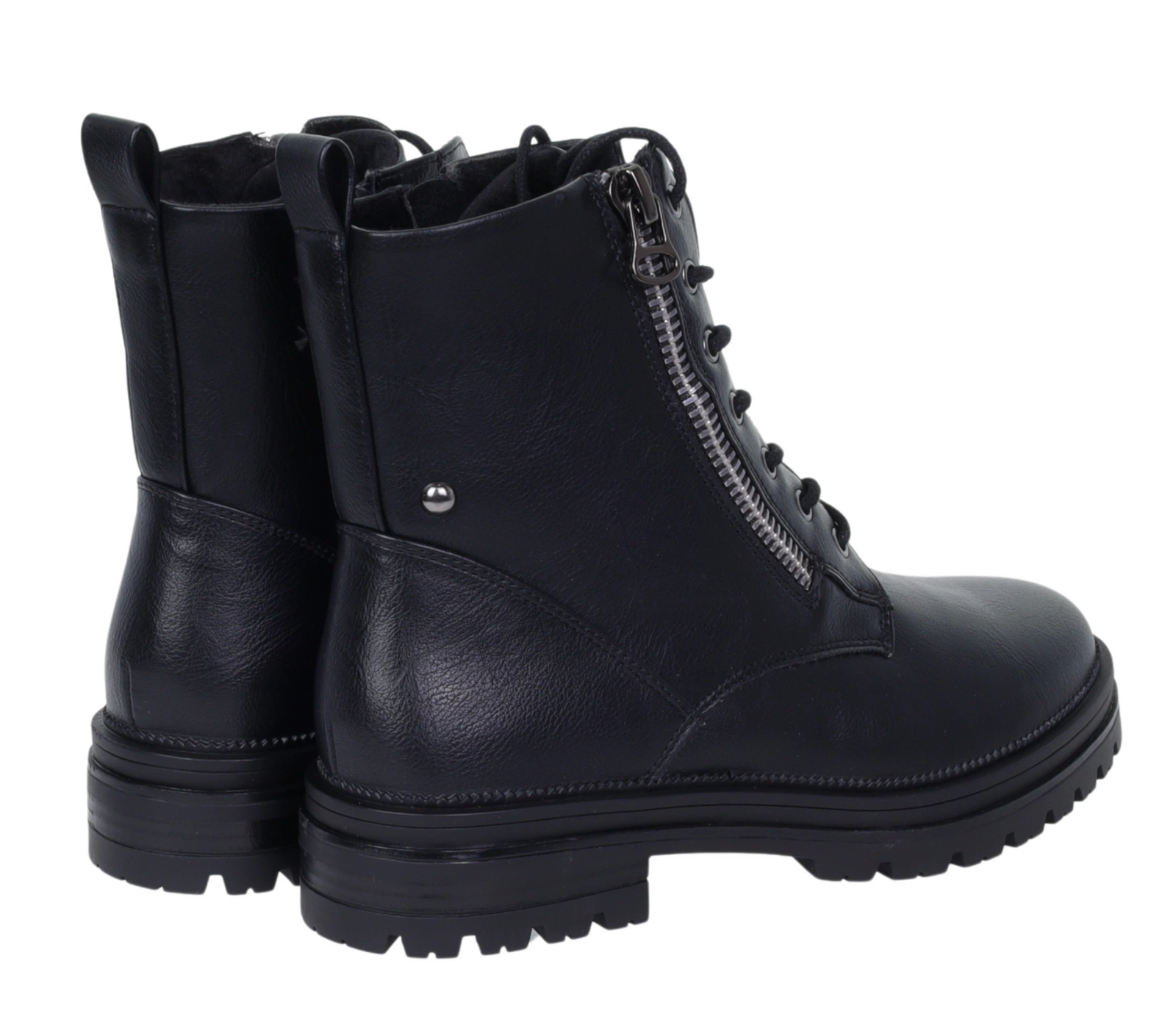 Czarne botki damskie zimowe glany niskie na zamek i sznurowadła.