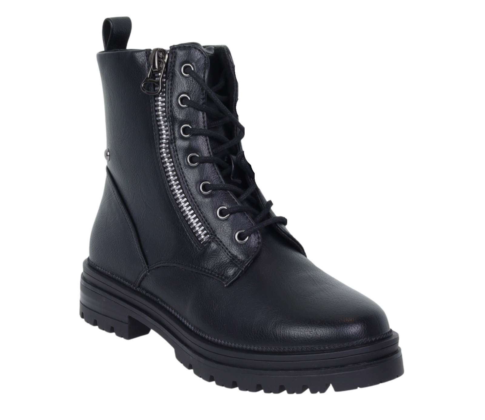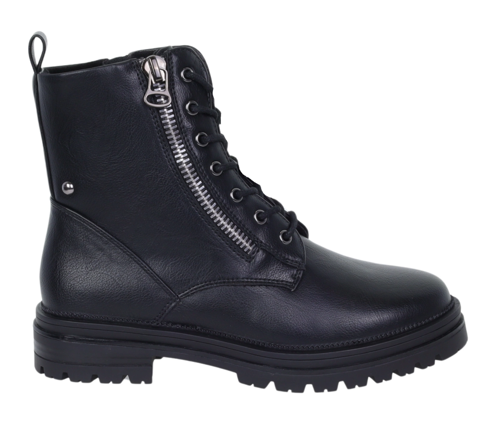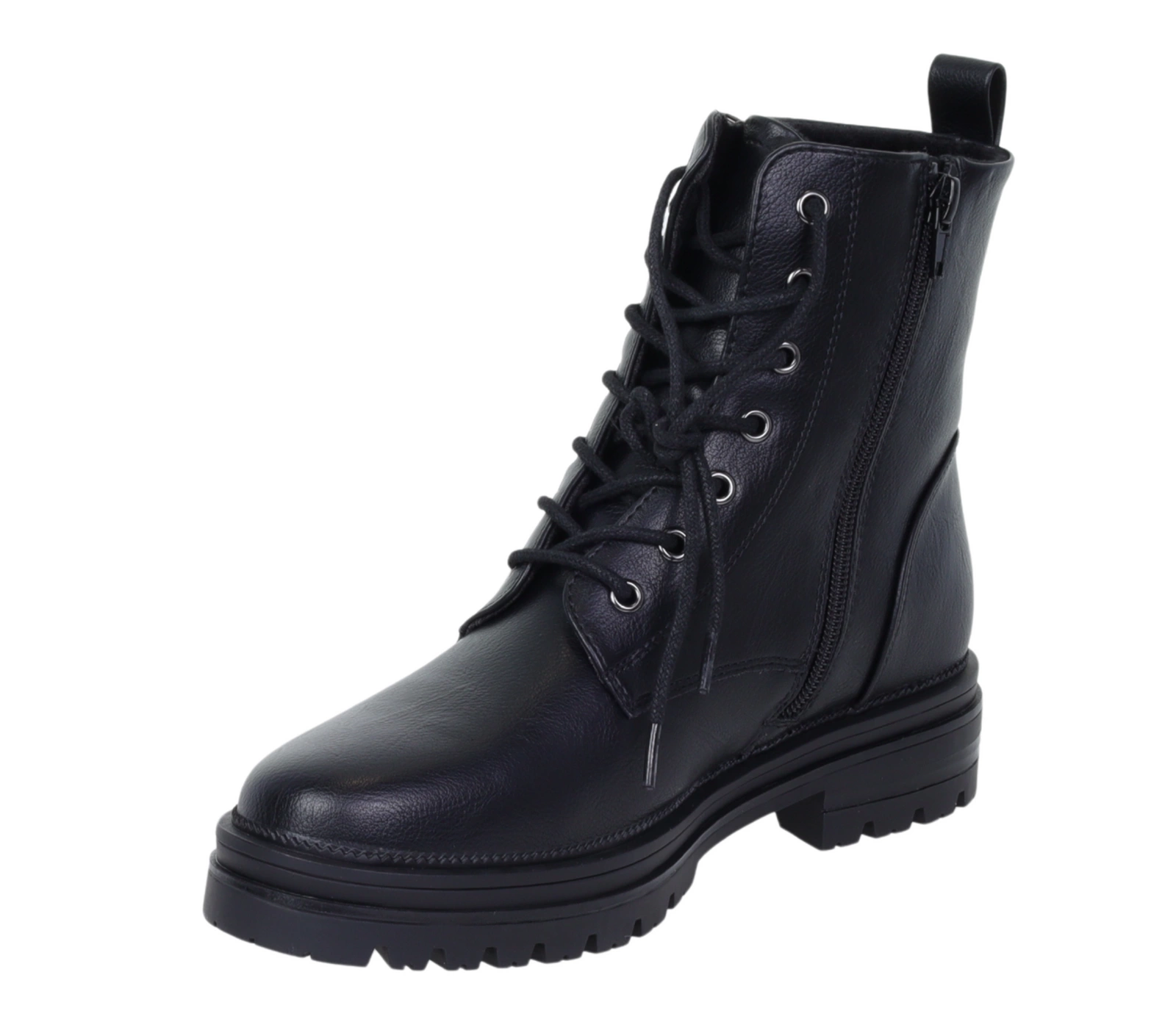 Czarne botki damskie zimowe glany niskie na zamek i sznurowadła.