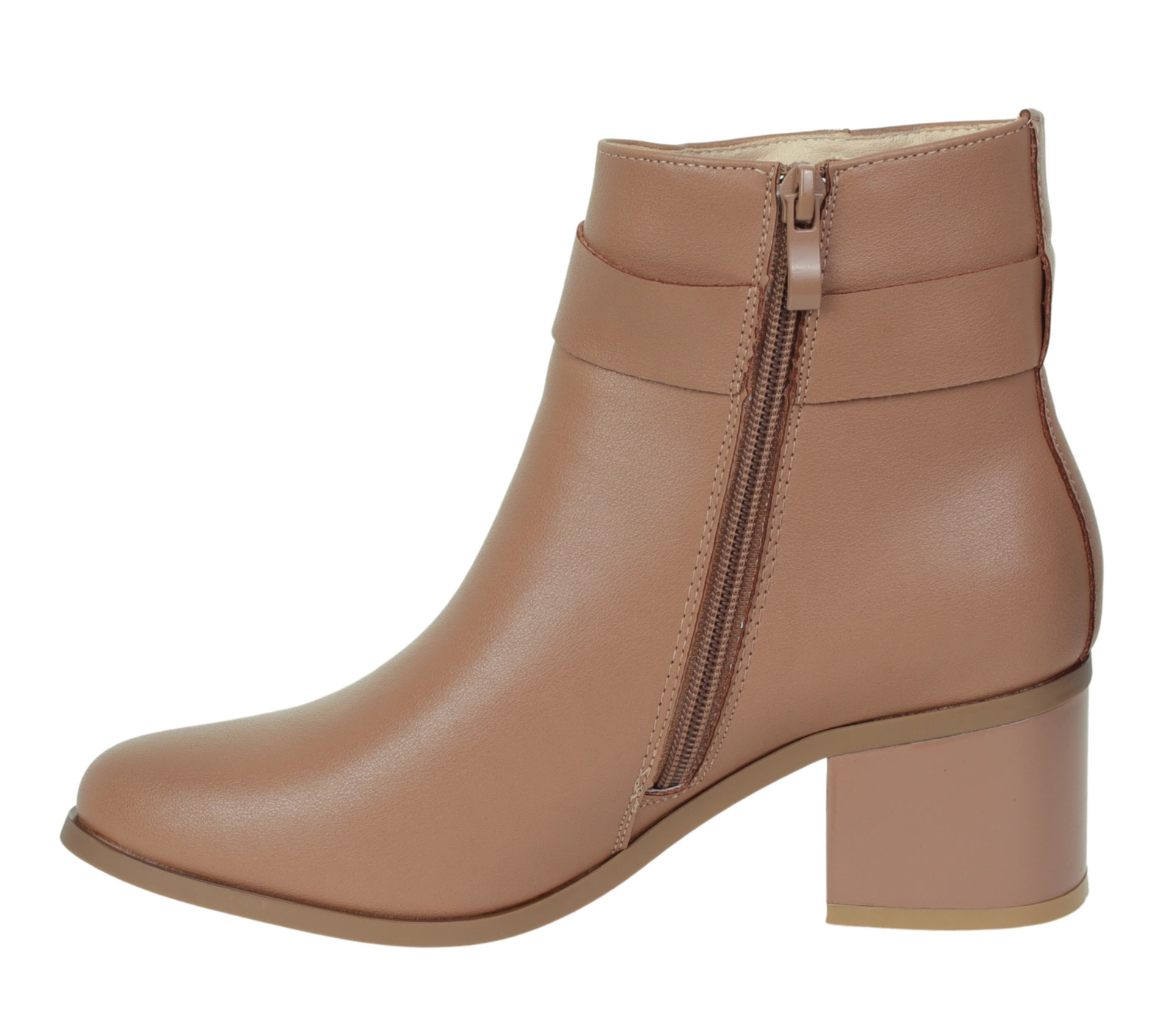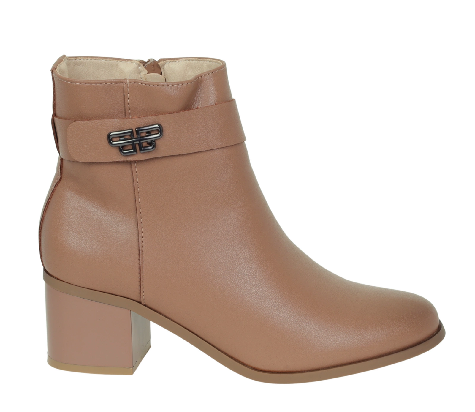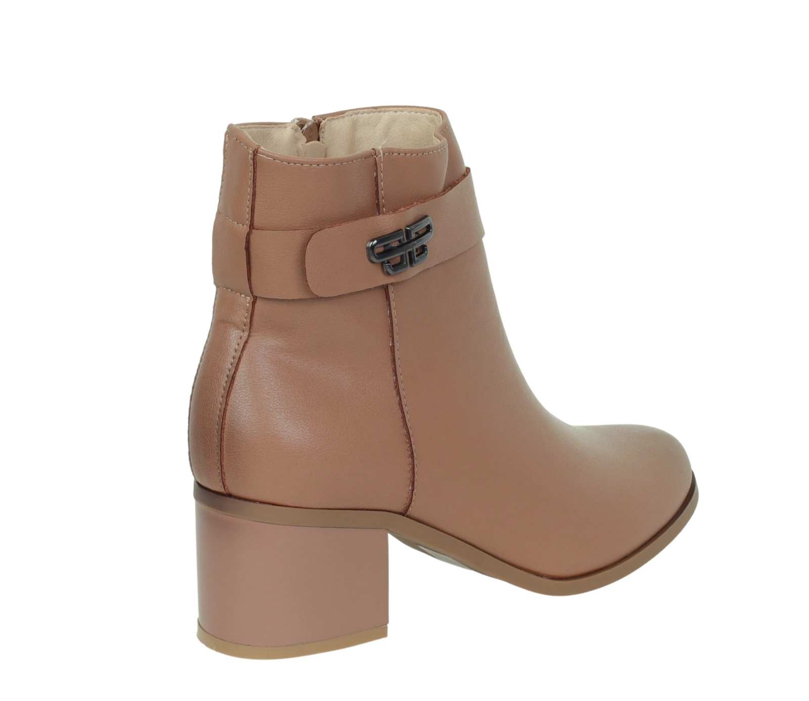 Eleganckie beżowe botki damskie skórzane na średnim obcasie Jezzi