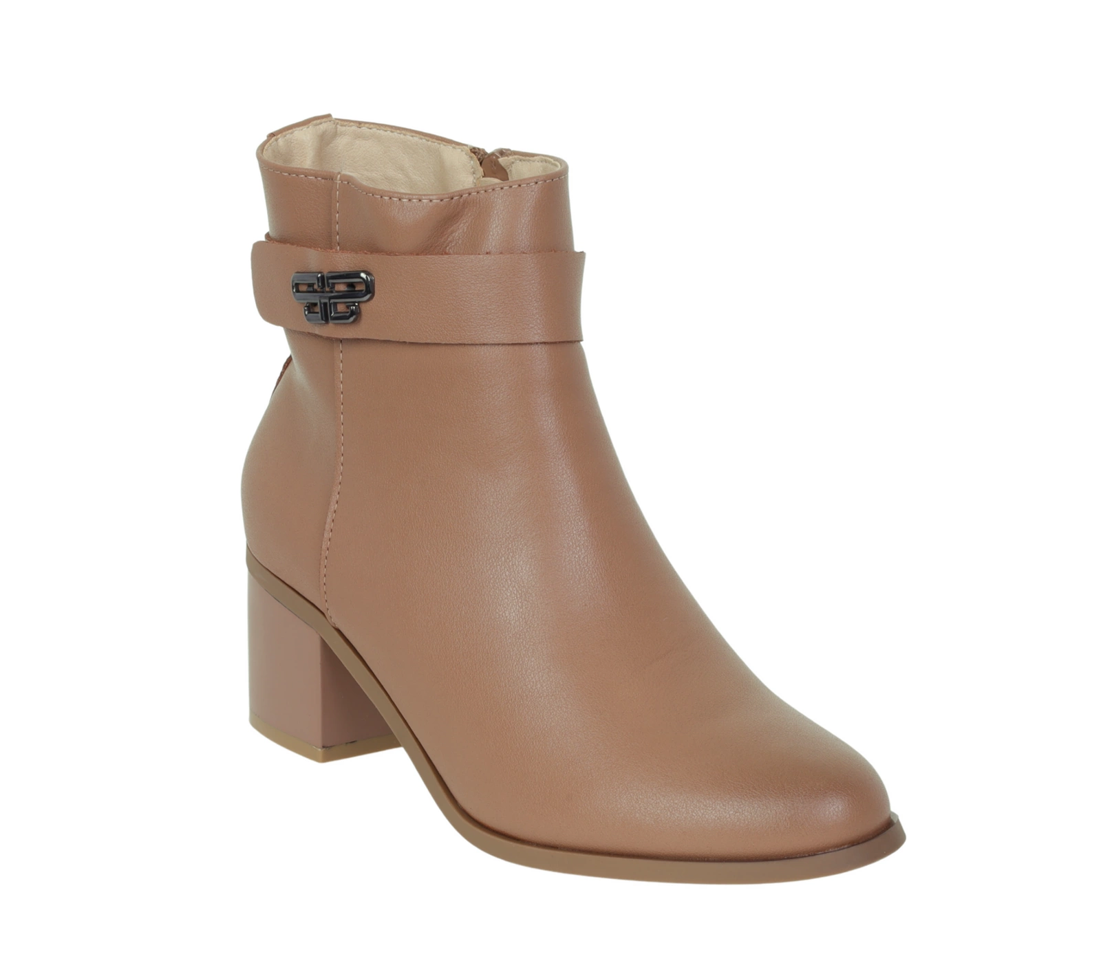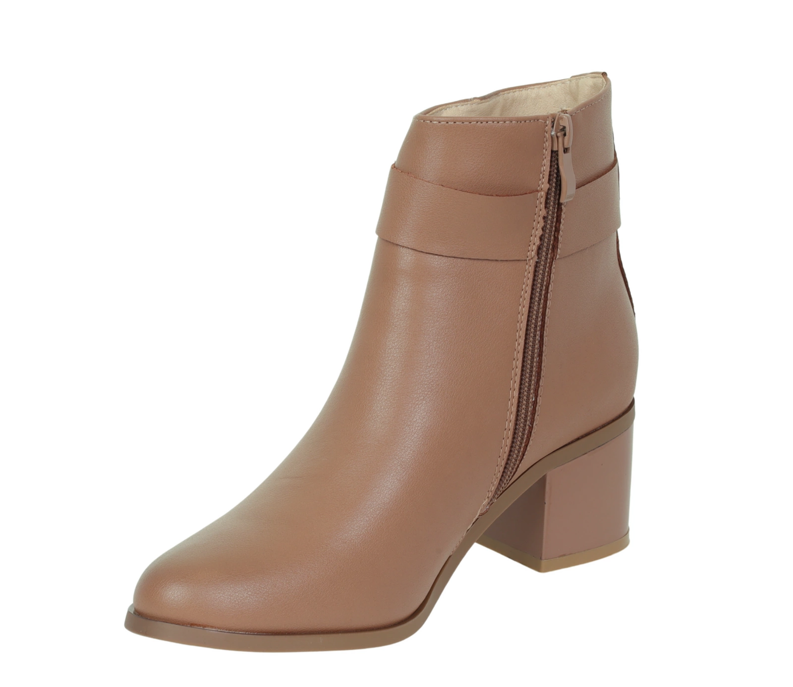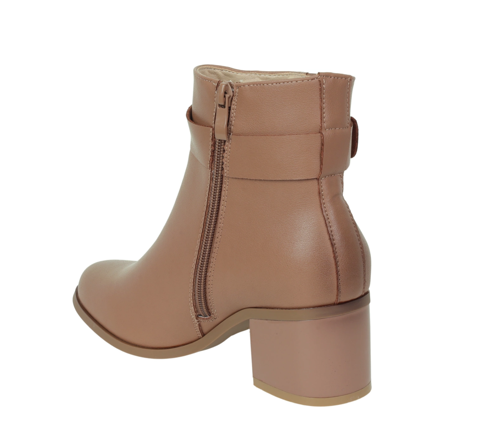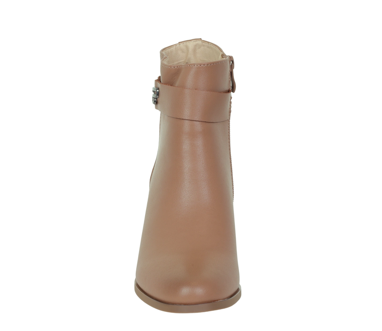 Eleganckie beżowe botki damskie skórzane na średnim obcasie Jezzi