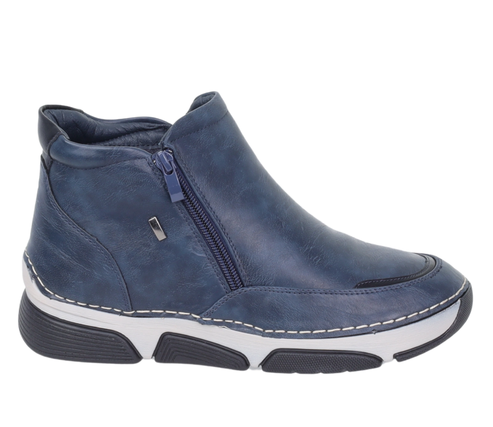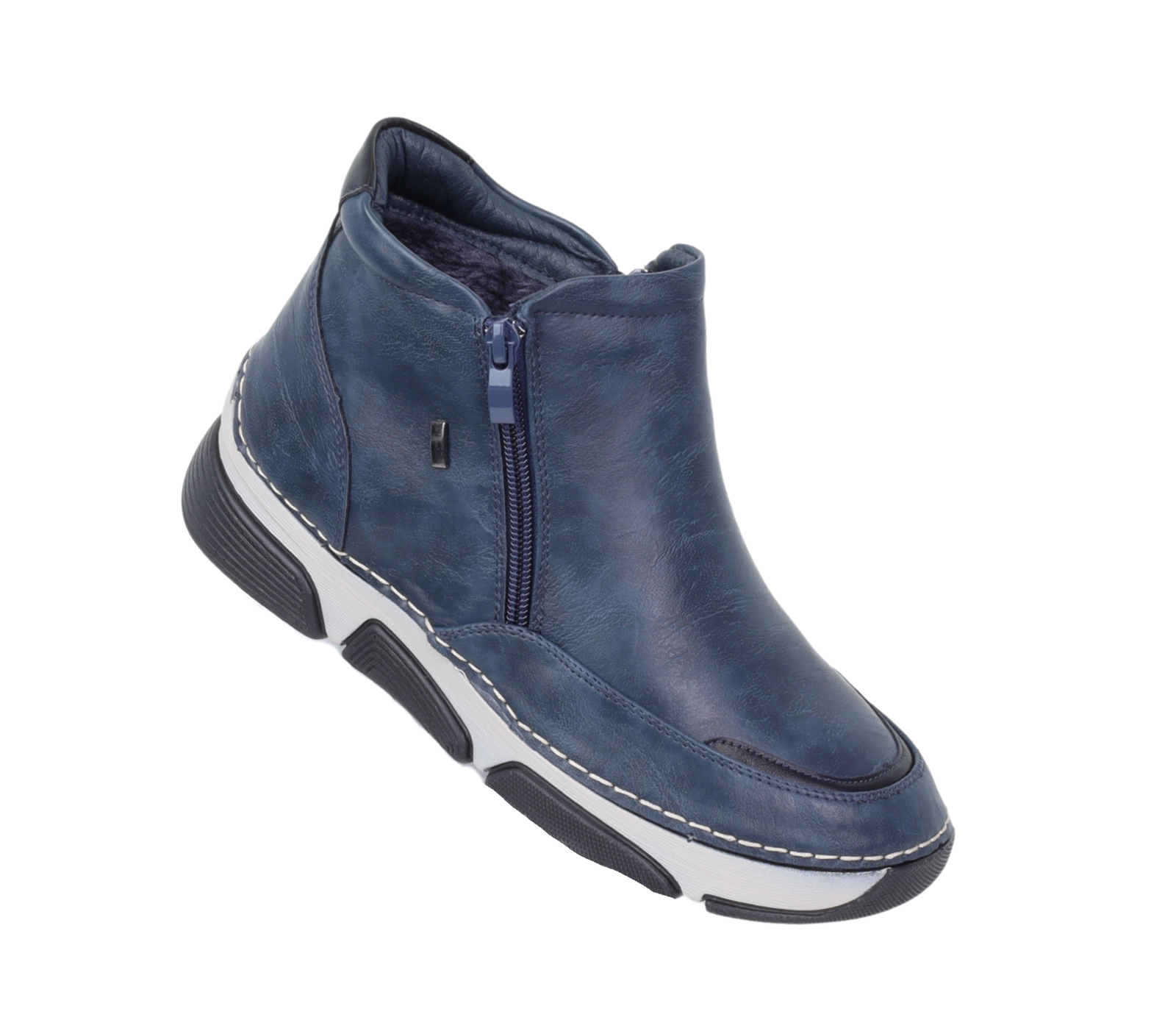 Granatowe botki damskie zimowe ocieplane komfortowe na dwa zamki HAIDRA