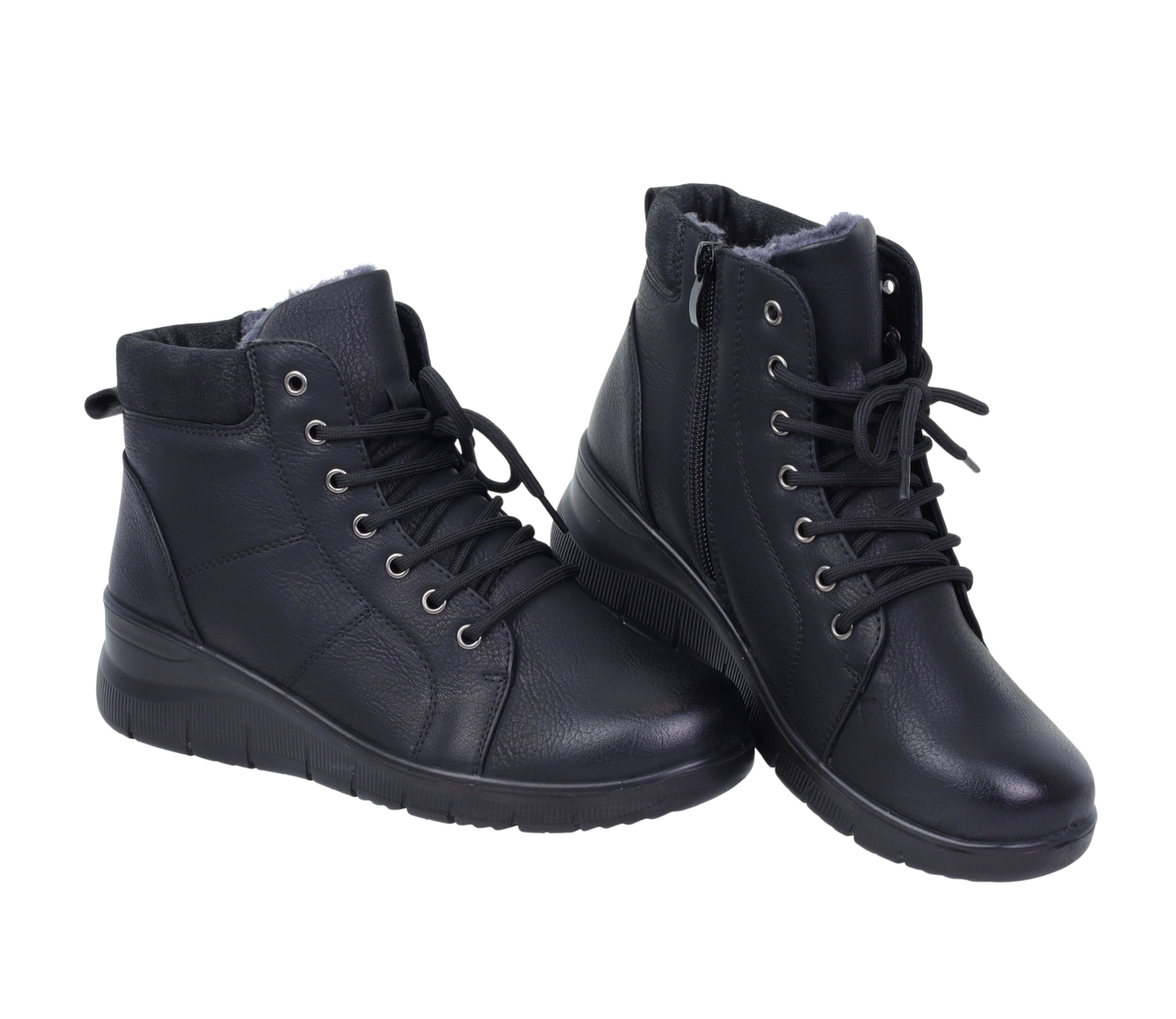 Czarne ciepłe buty zimowe damskie botki zdrowotne na zimę trzewiki