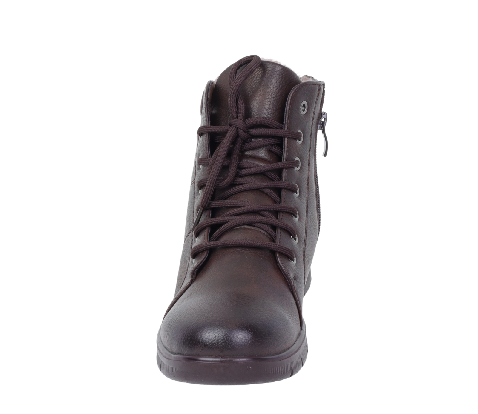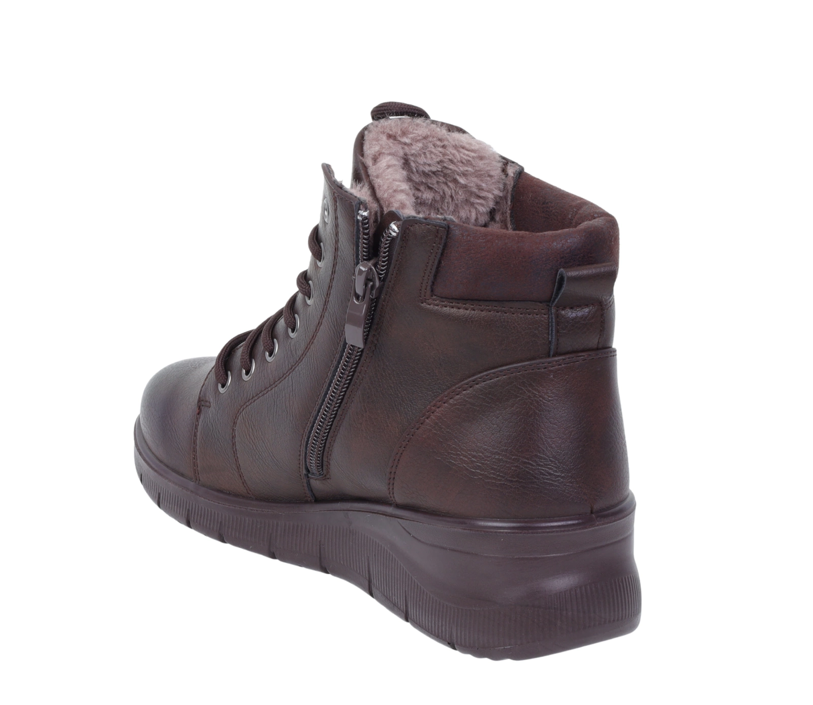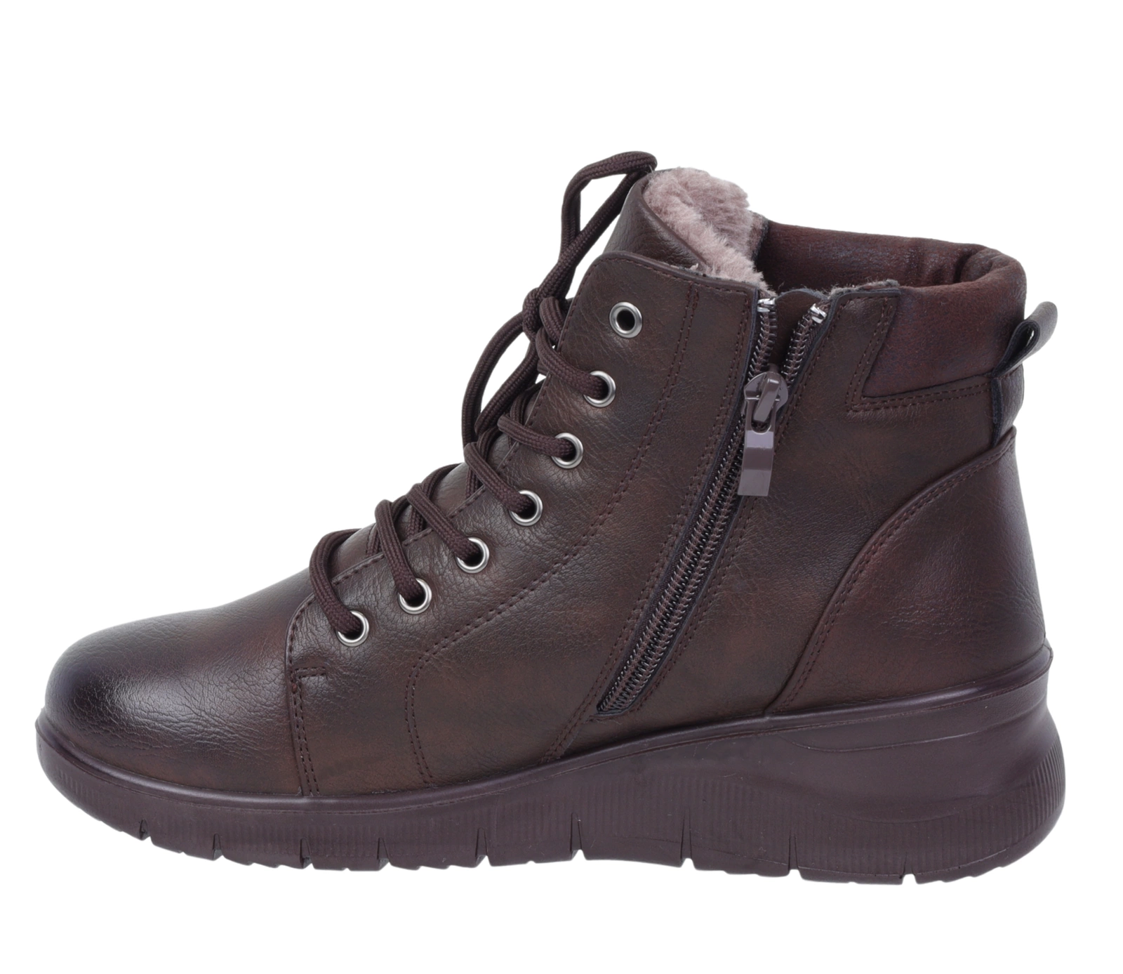 Brązowe trzewiki damskie komfortowe buty zimowe na zamek i sznurowadła Haidra