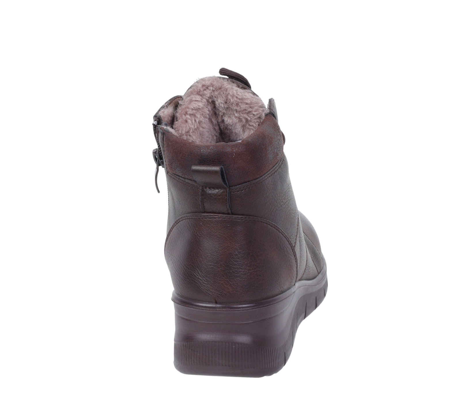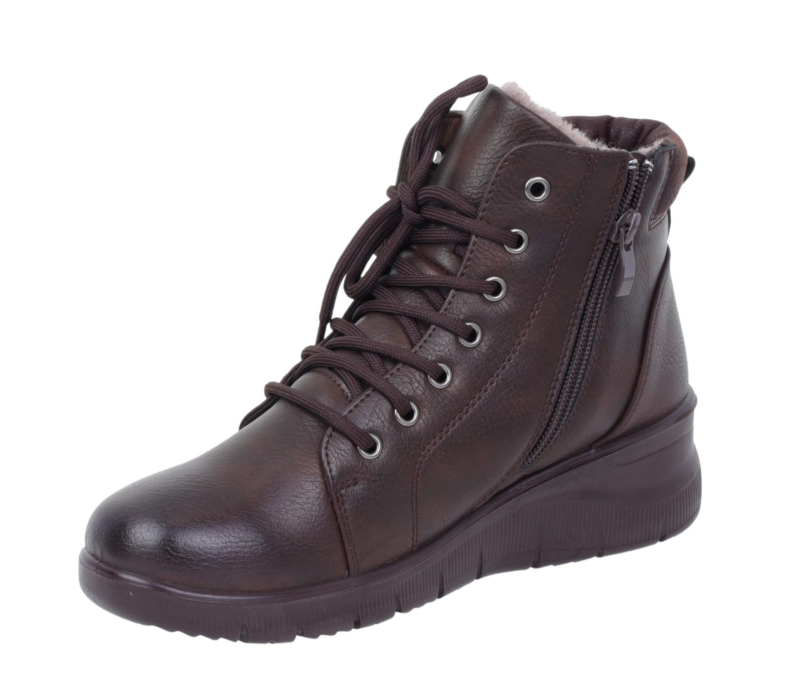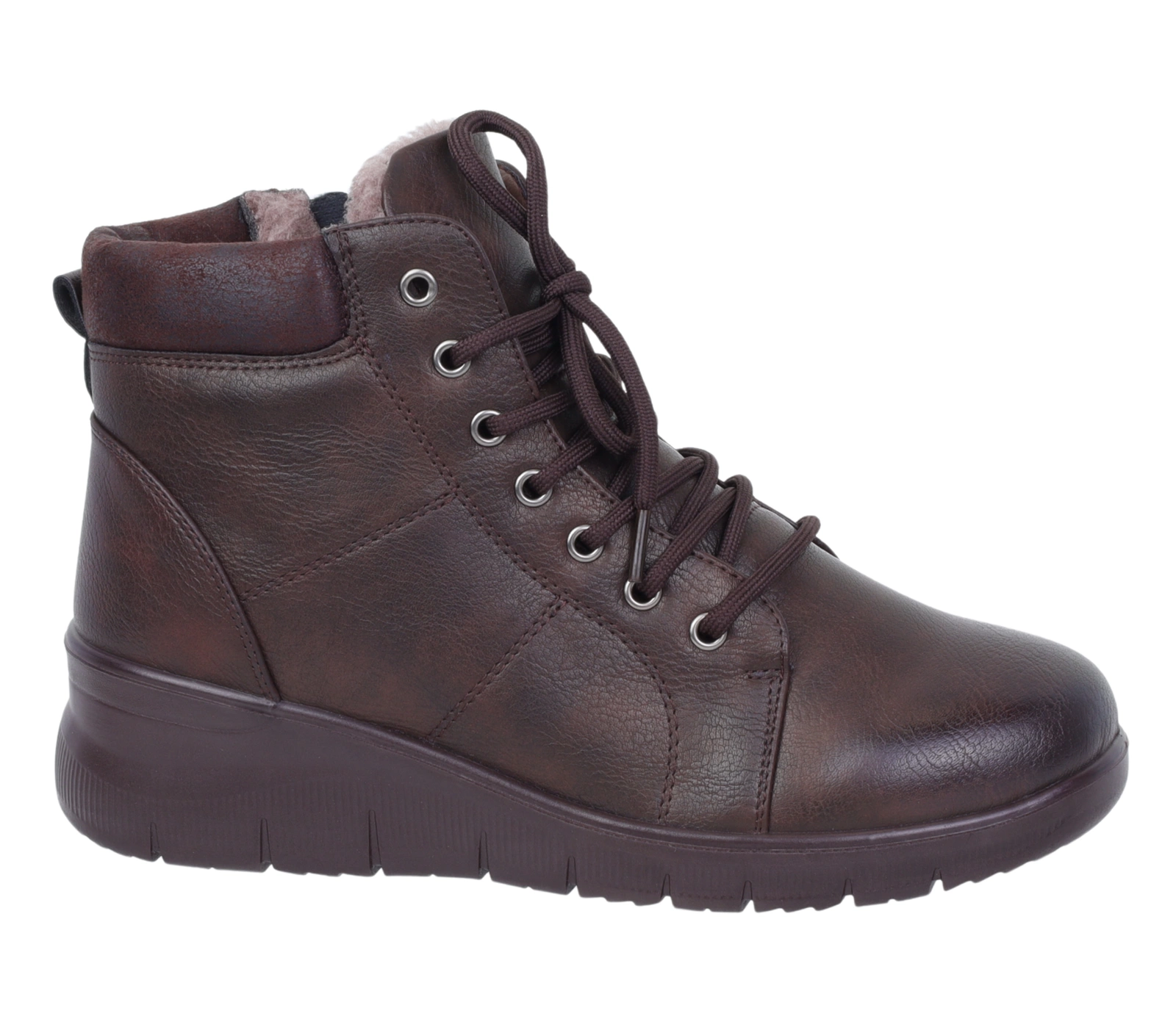 Brązowe trzewiki damskie komfortowe buty zimowe na zamek i sznurowadła Haidra
