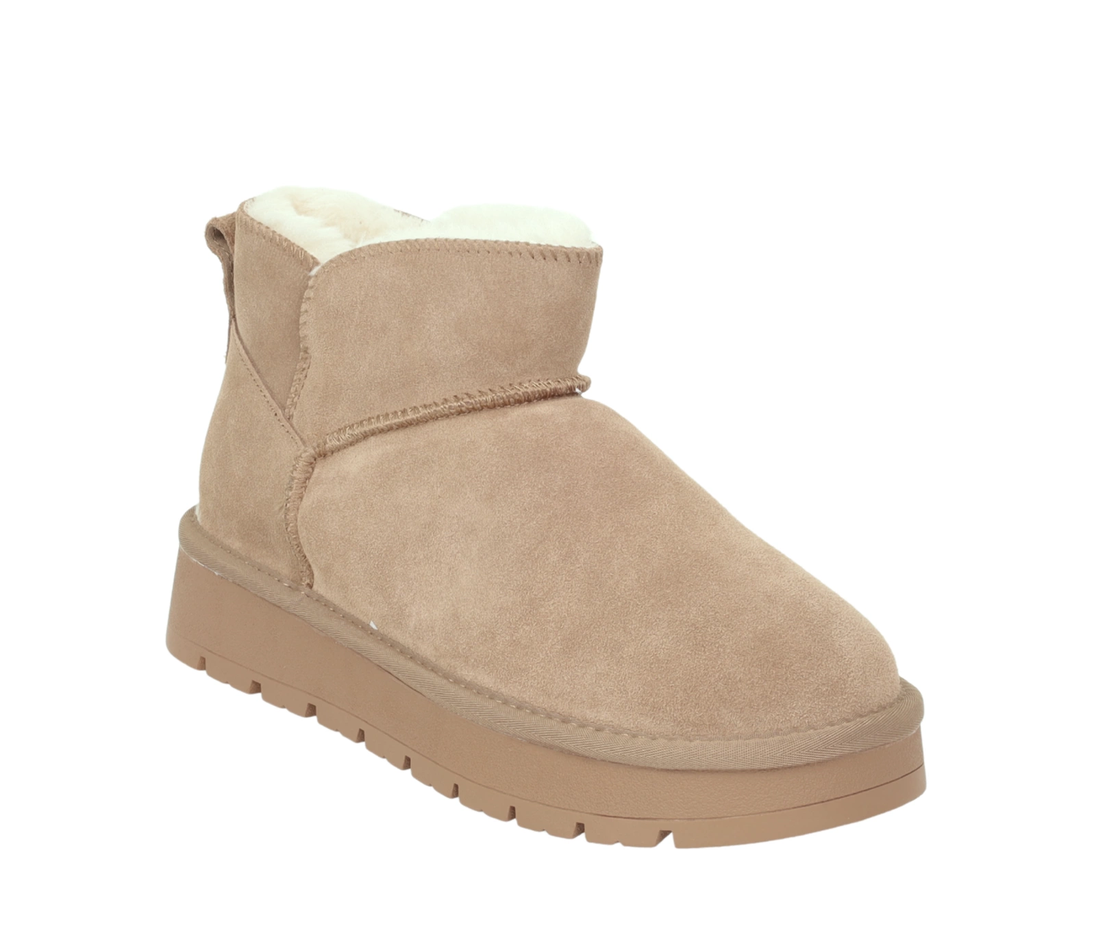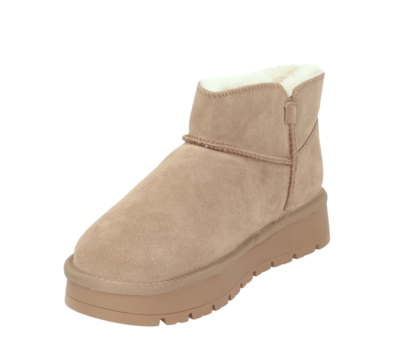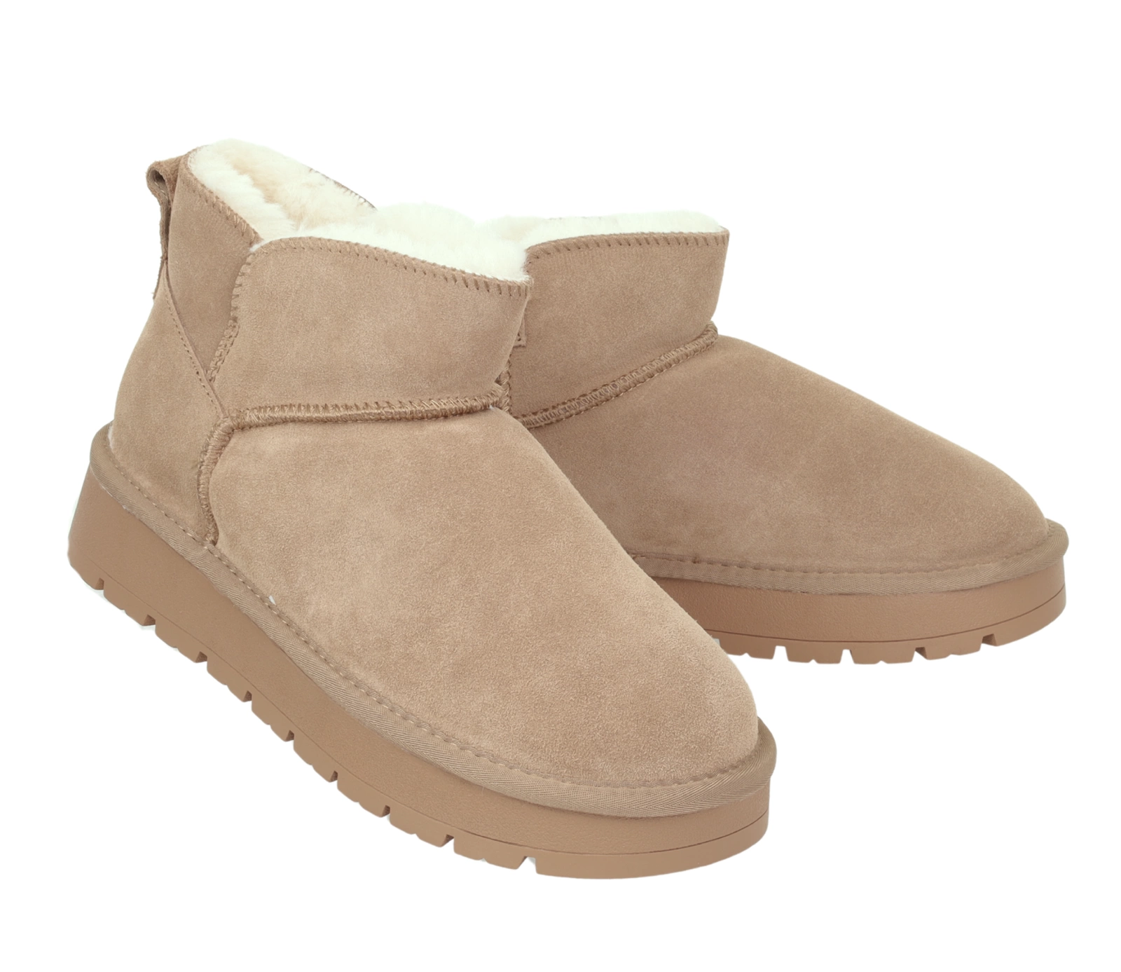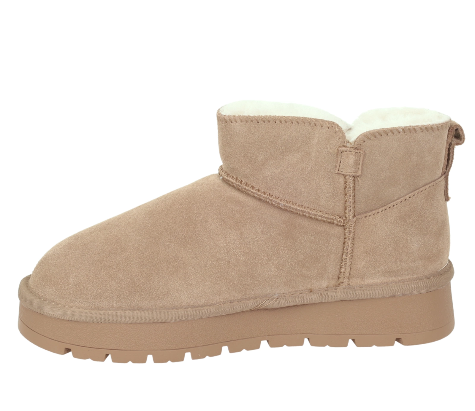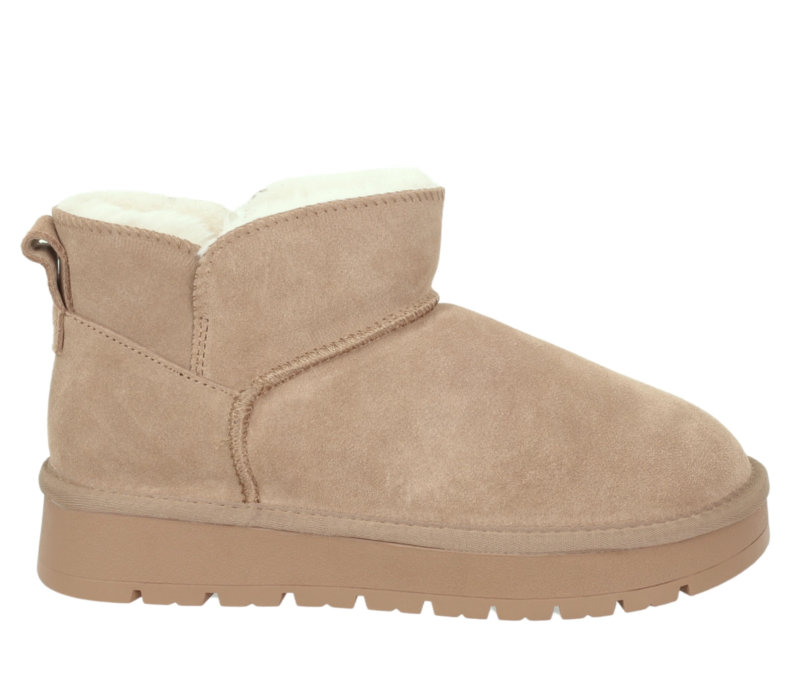 Beżowe botki damskie śniegowce EMY ze skóry naturalnej