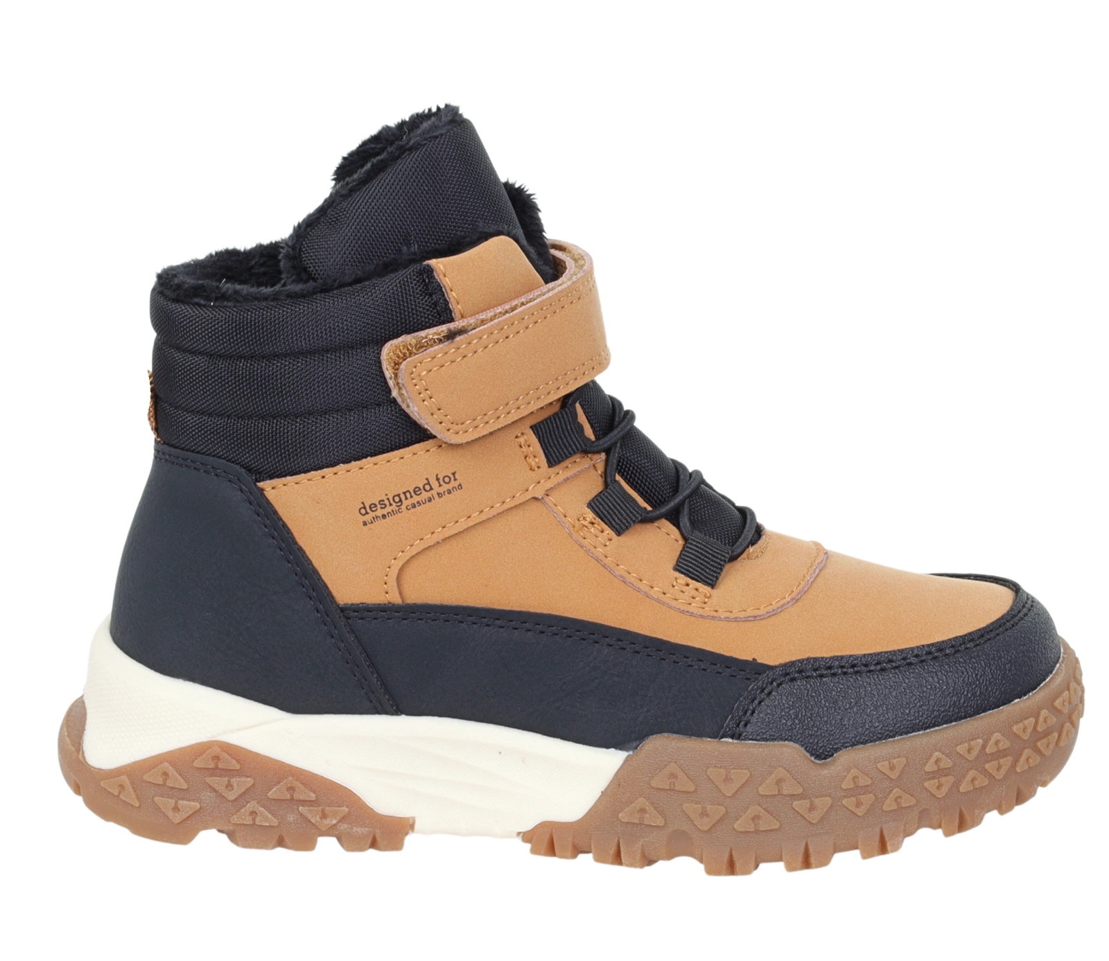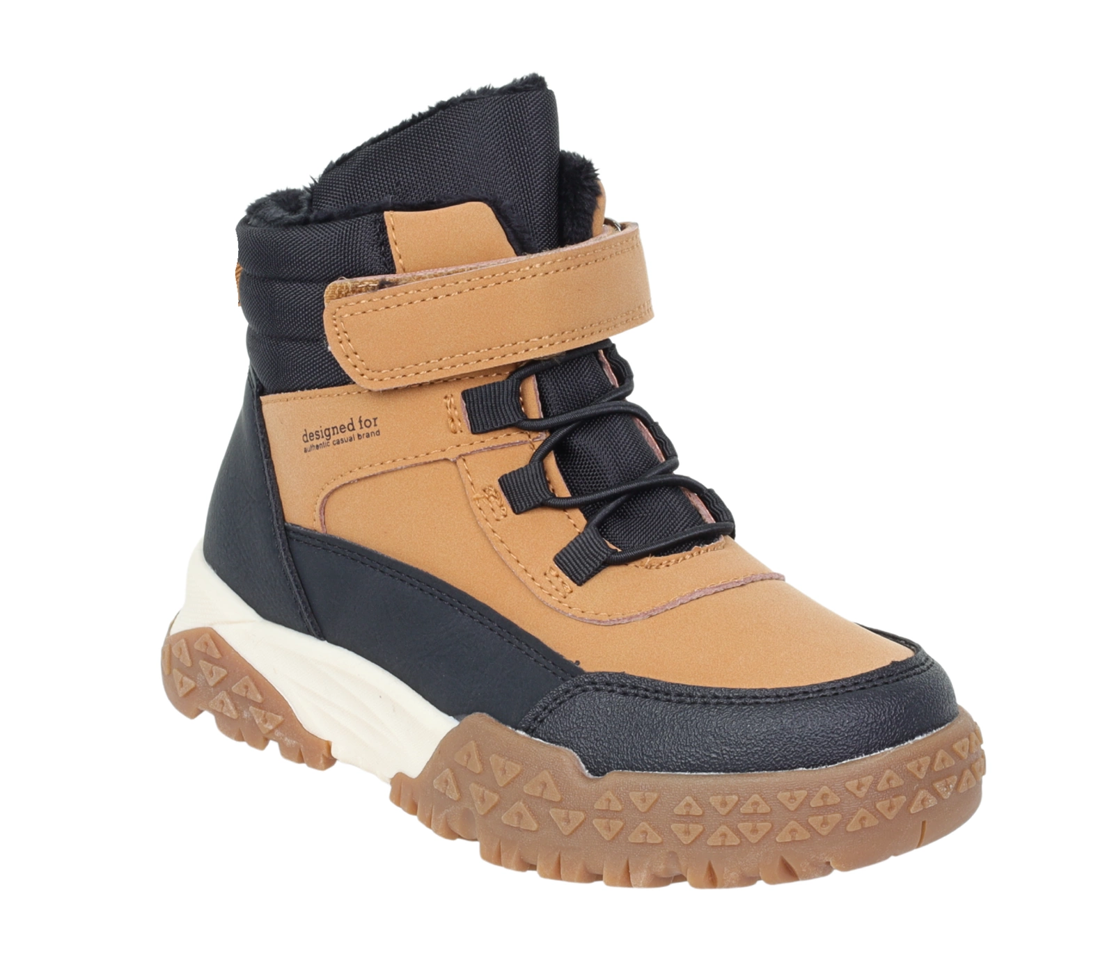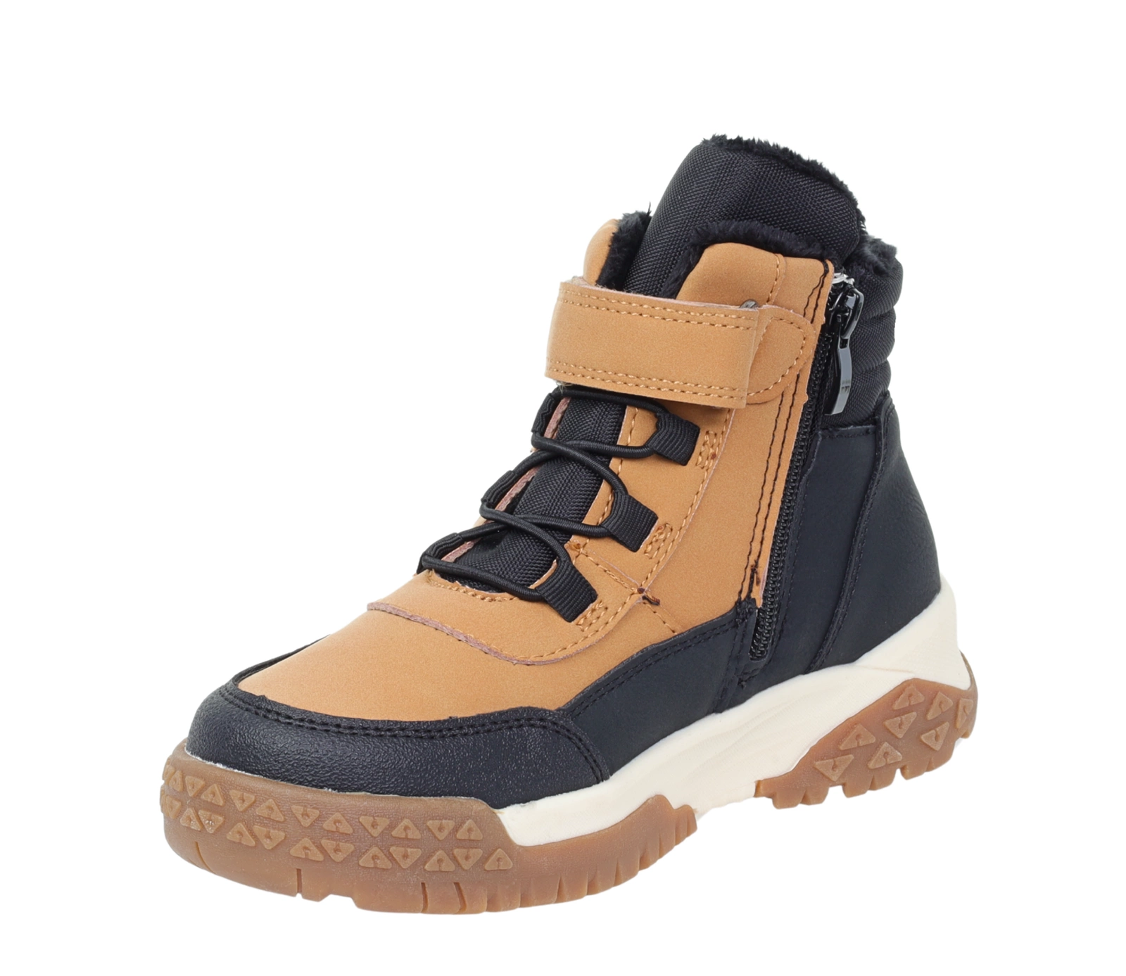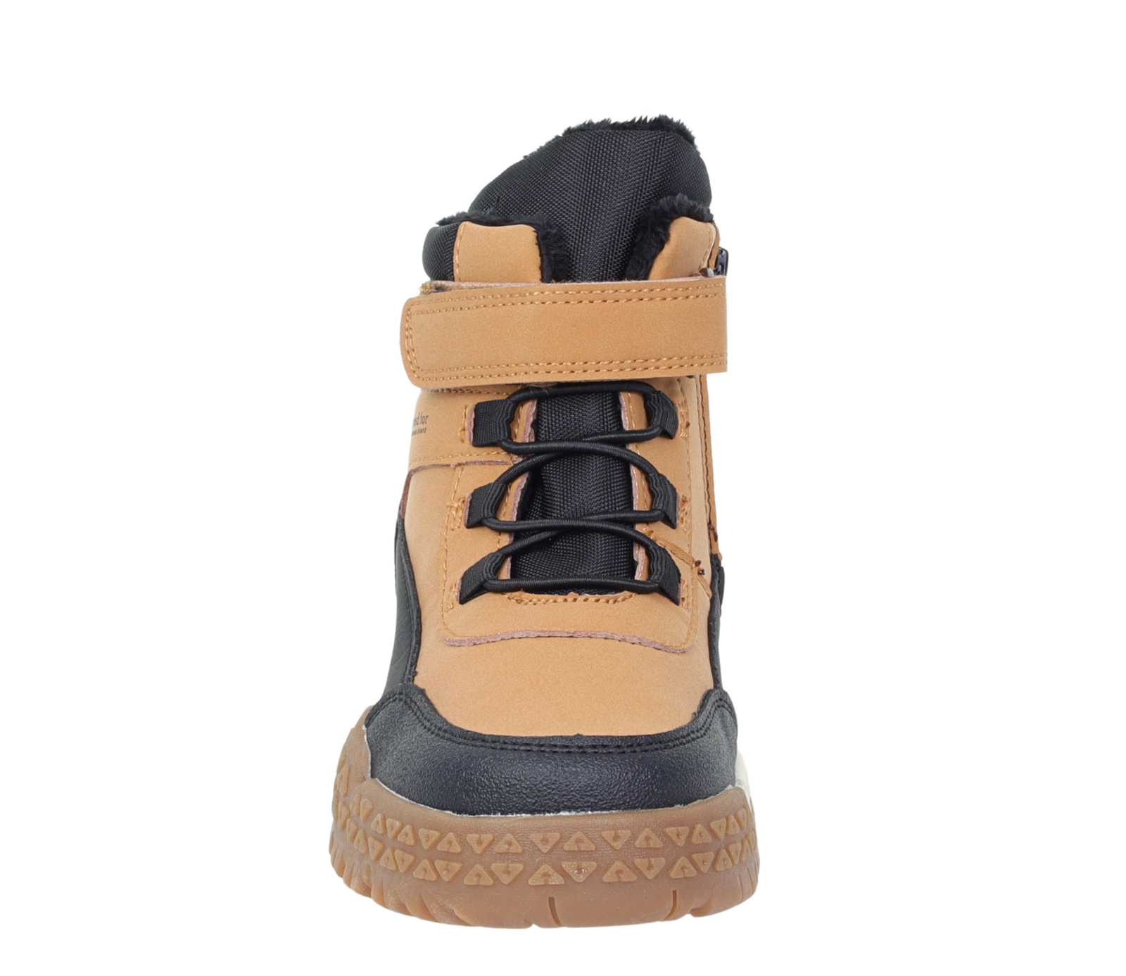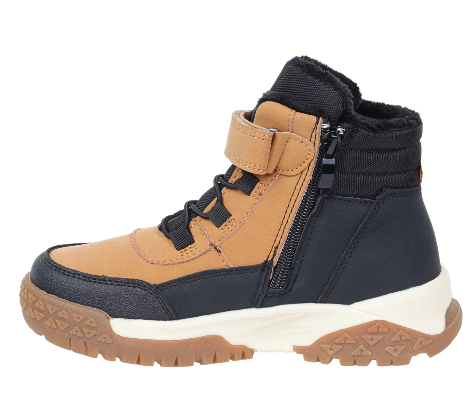 Musztardowe trzewiki dziecięce dla chłopca buty zimowe na rzepy