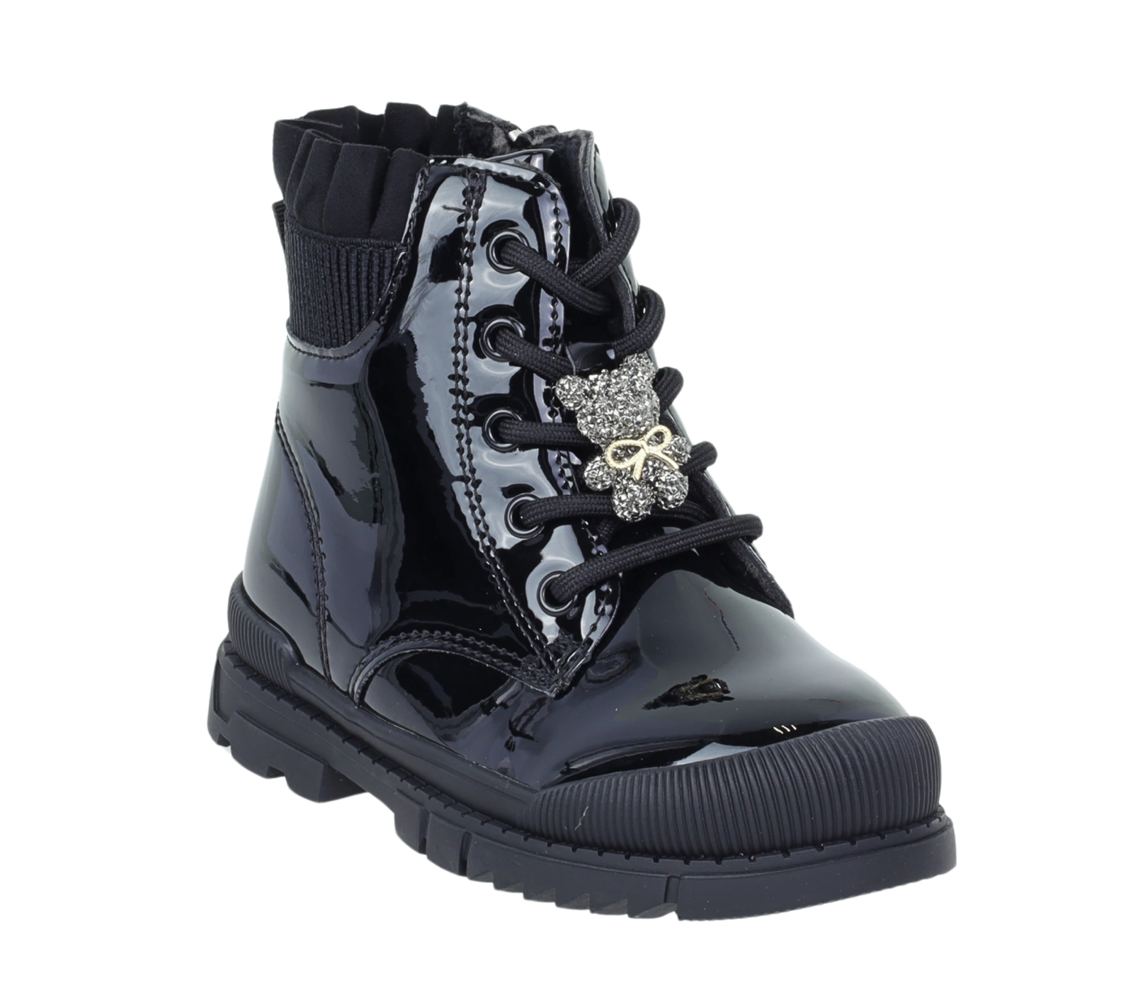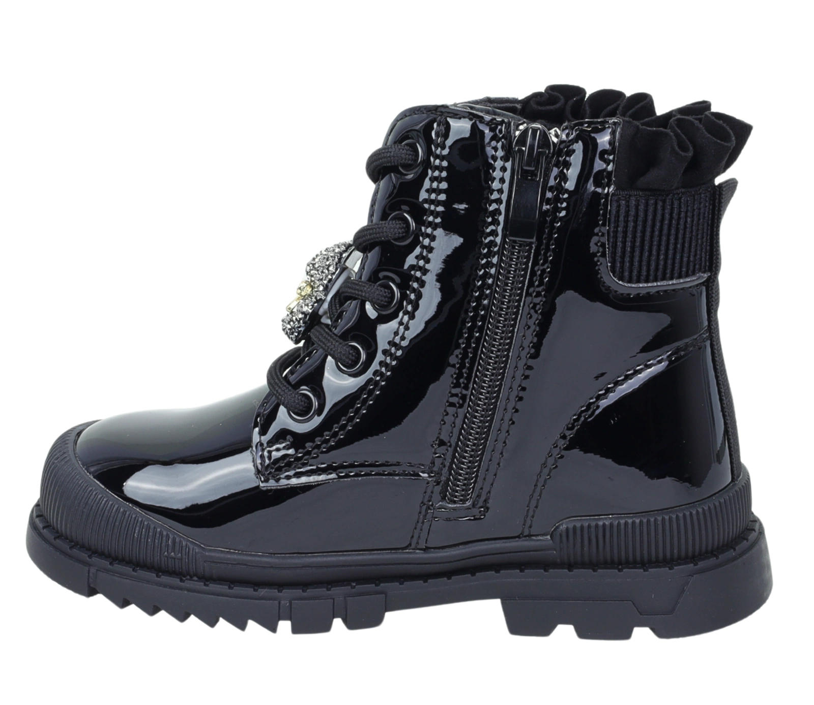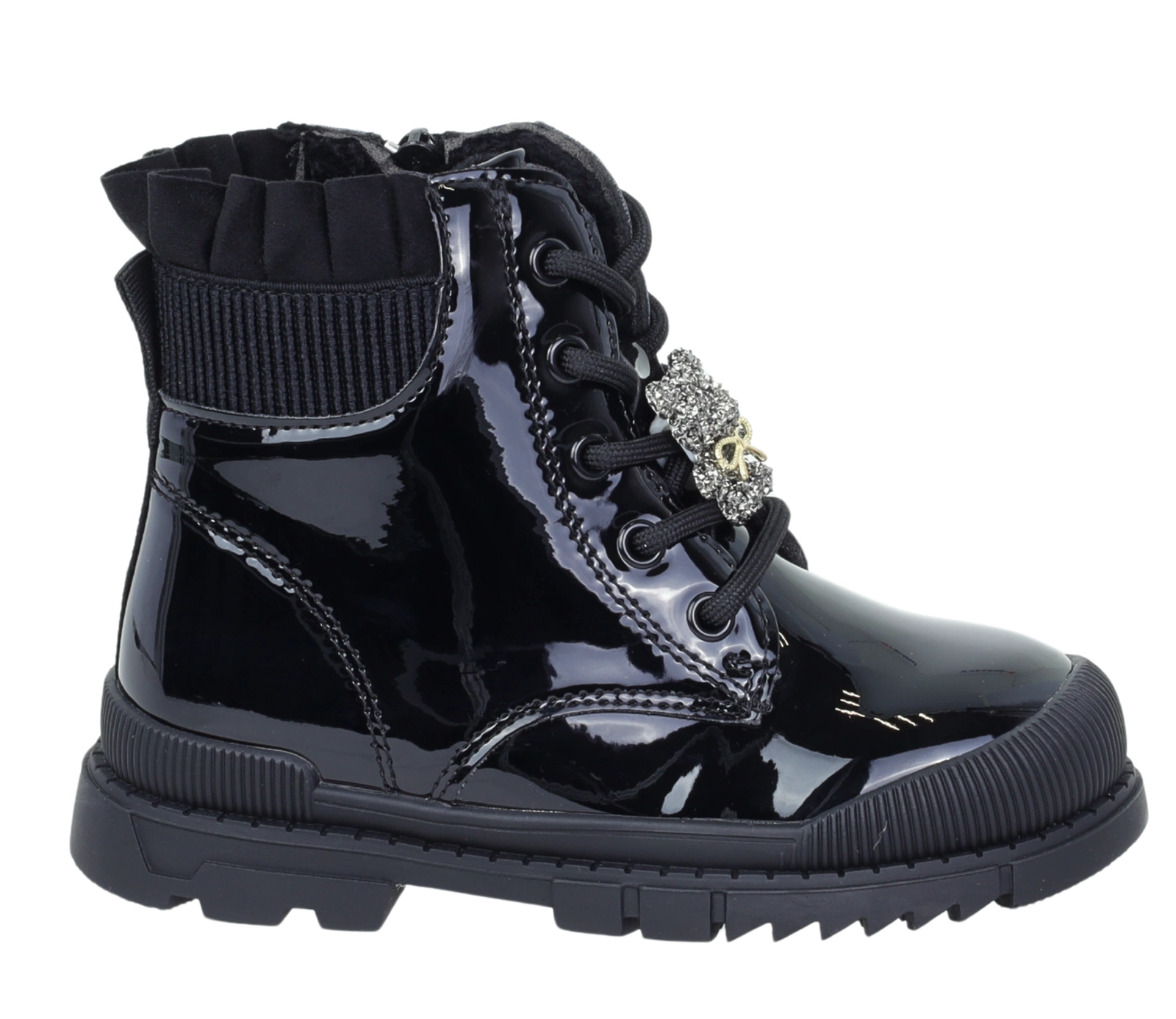Czarne lakierowane botki dziecięce ocieplane eleganckie i ciepłe MISS E