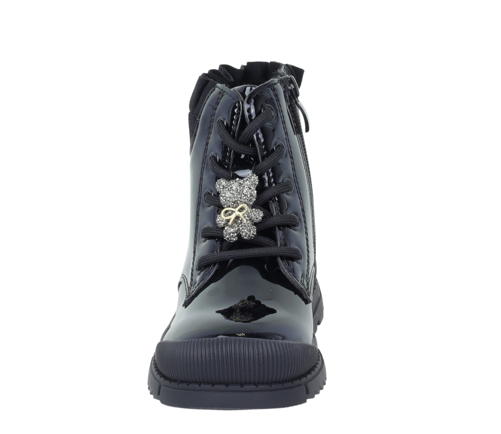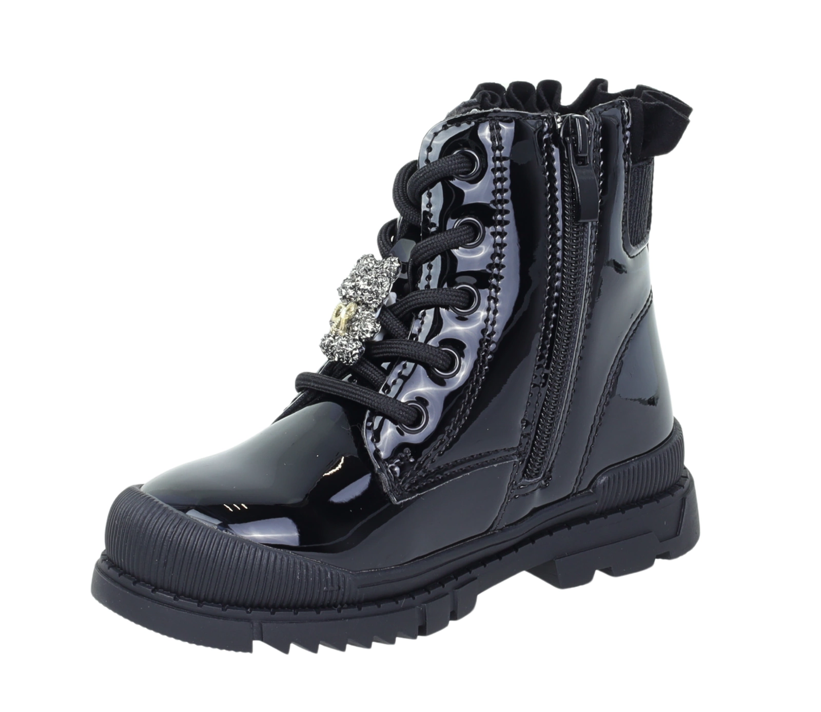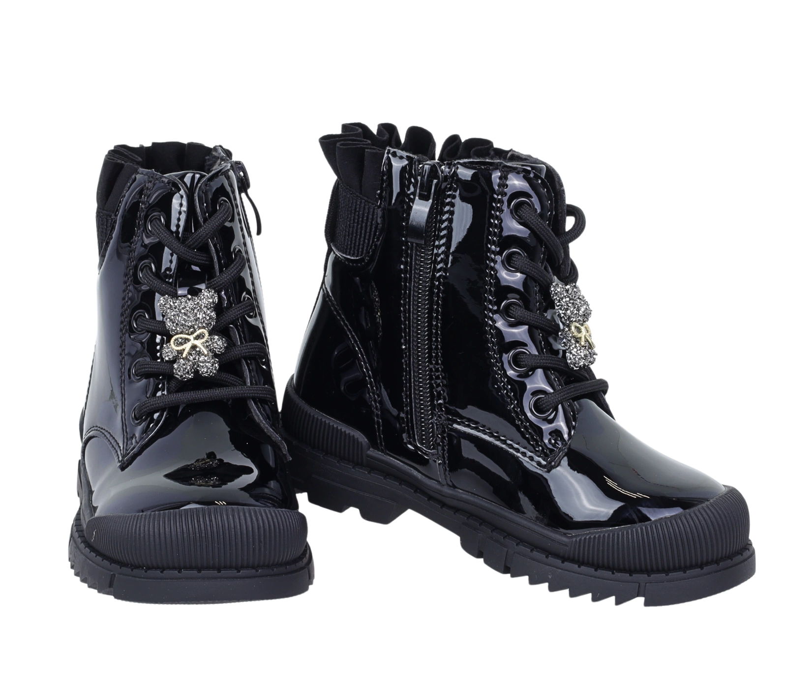 Czarne lakierowane botki dziecięce ocieplane eleganckie i ciepłe MISS E