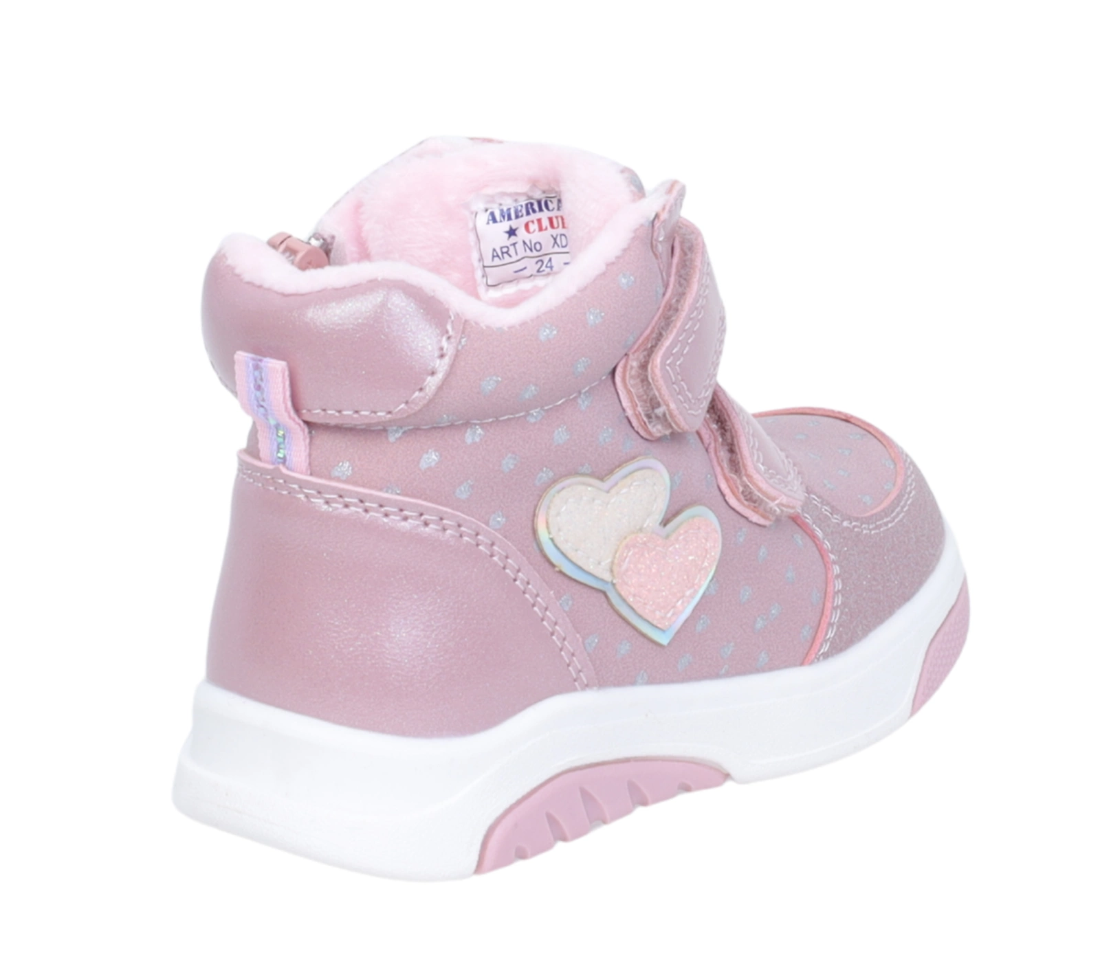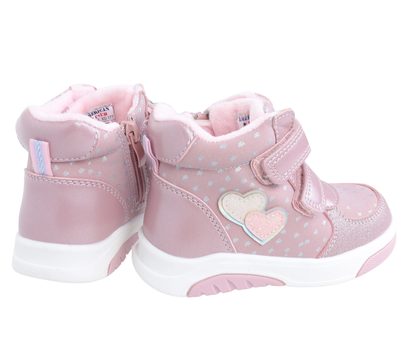 Różowe buty zimowe dla dziewczynki na rzepy ciepłe i tanie American