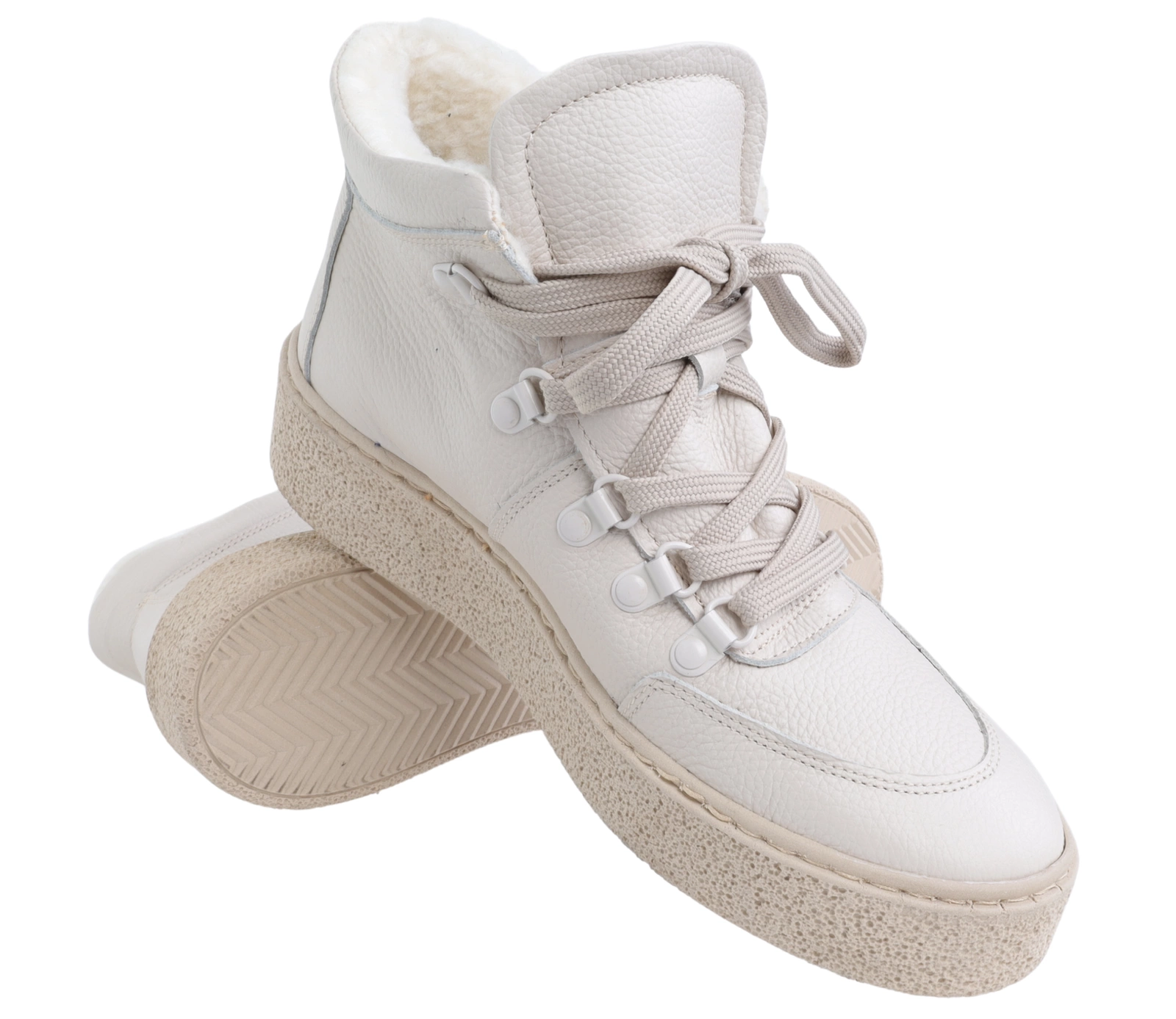 Jasne skórzane półbuty damskie zimowe ocieplane wełną sportowe Gino Fabiani