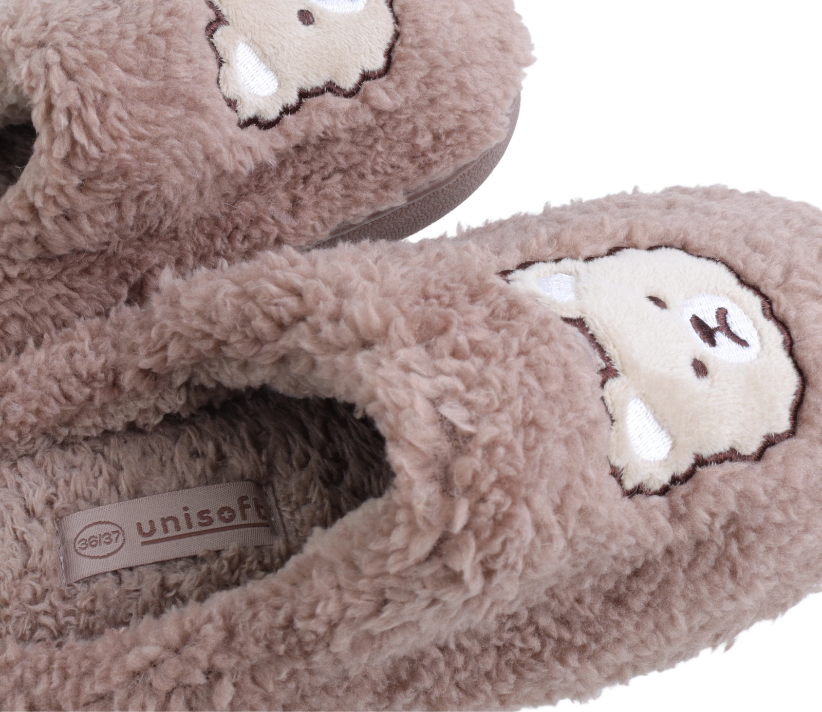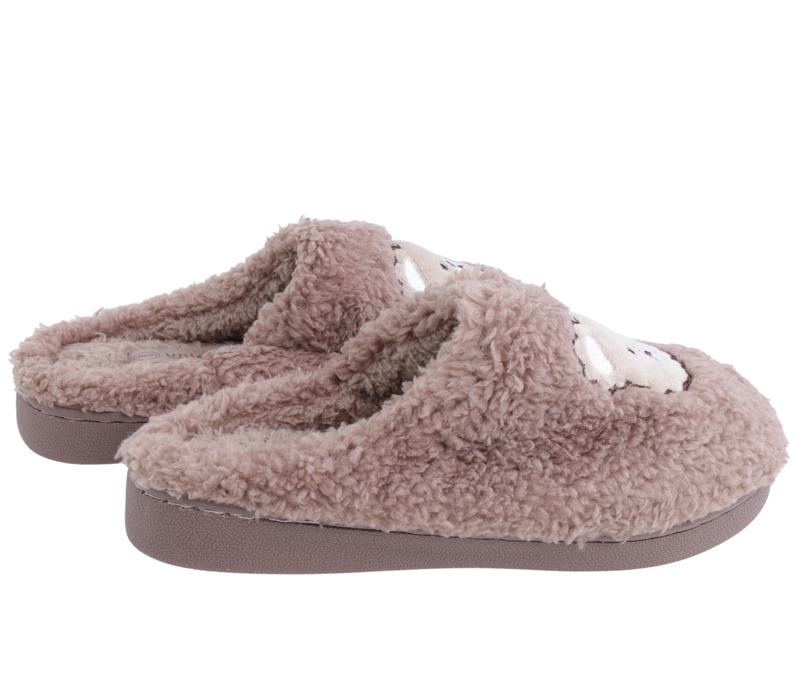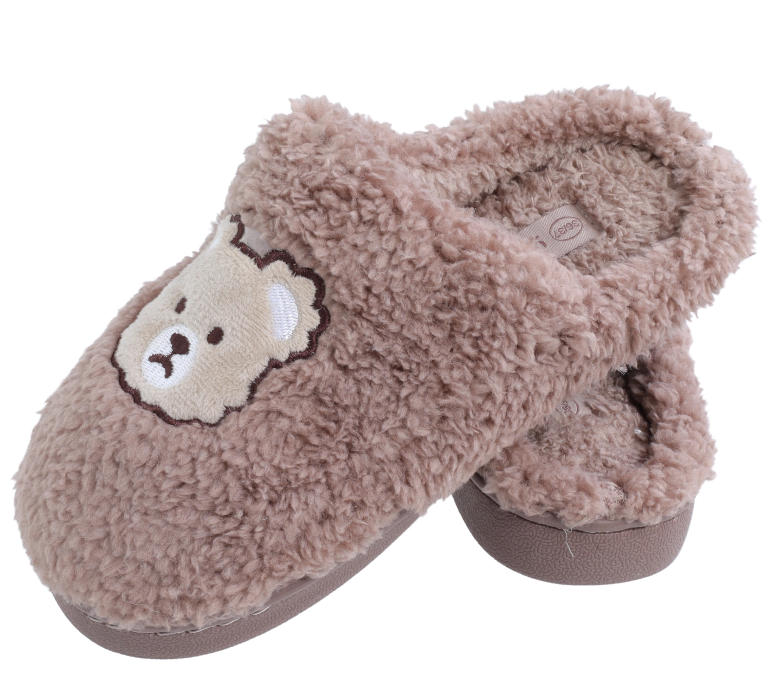 Brązowe miękkie kapcie damskie zabudowane ciepłe z Misiem