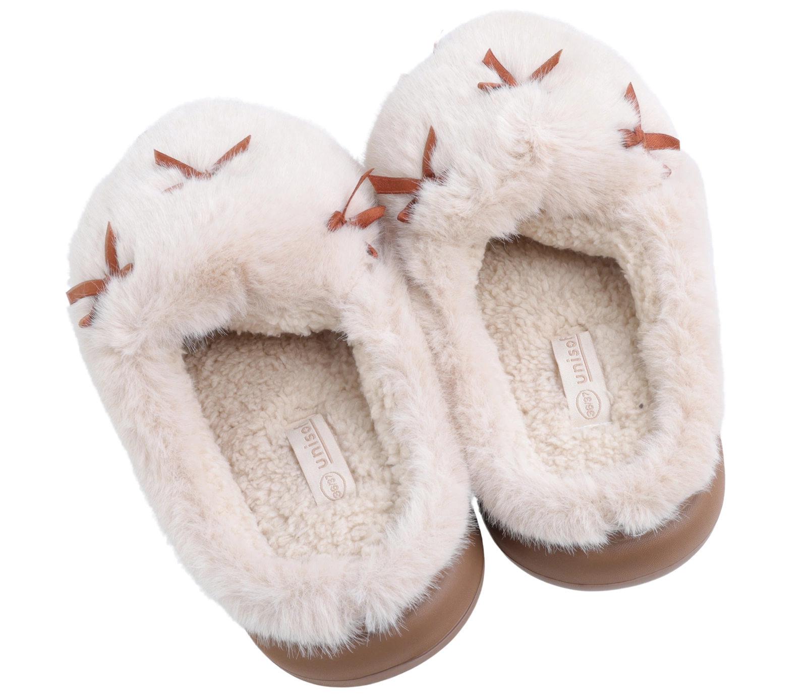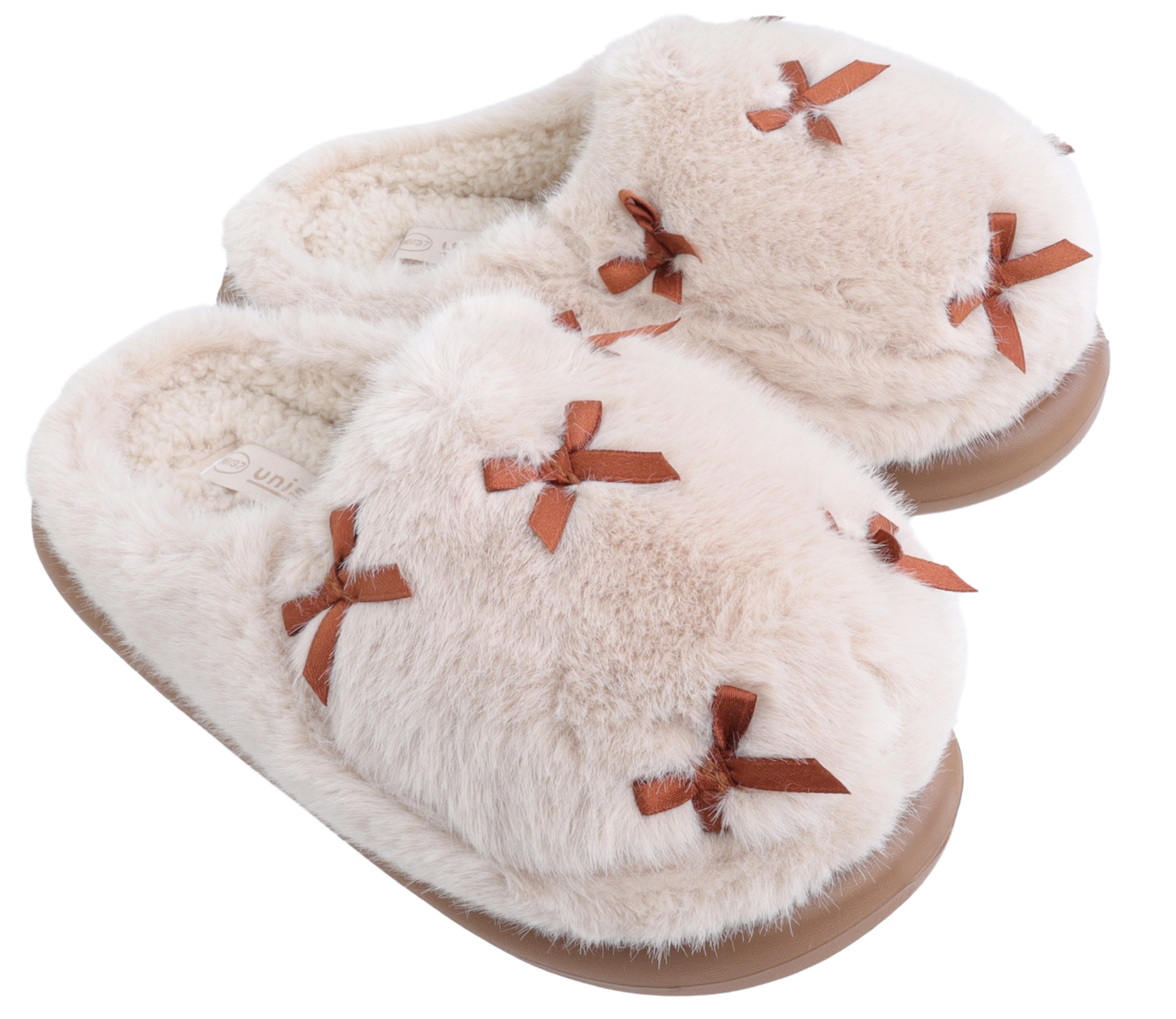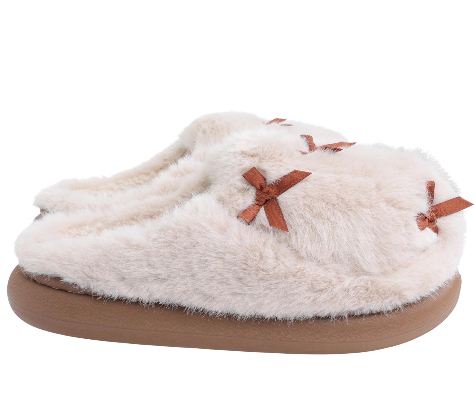 Puszyste kapcie damskie po domu ciepłe futerkowe klapki zabudowane z Kokardkami