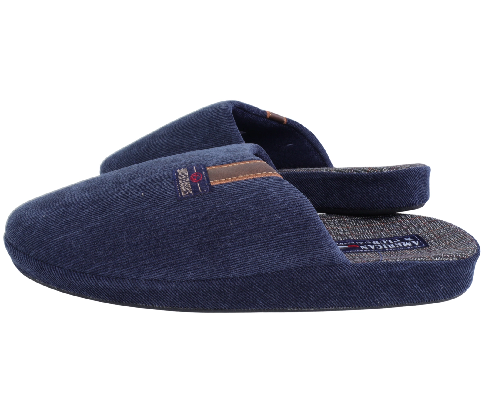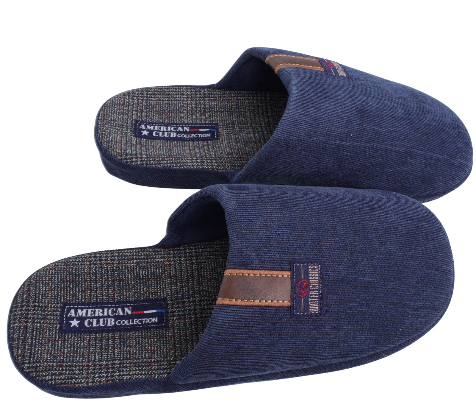 Granatowe kapcie męskie zabudowane pantofle po domu American