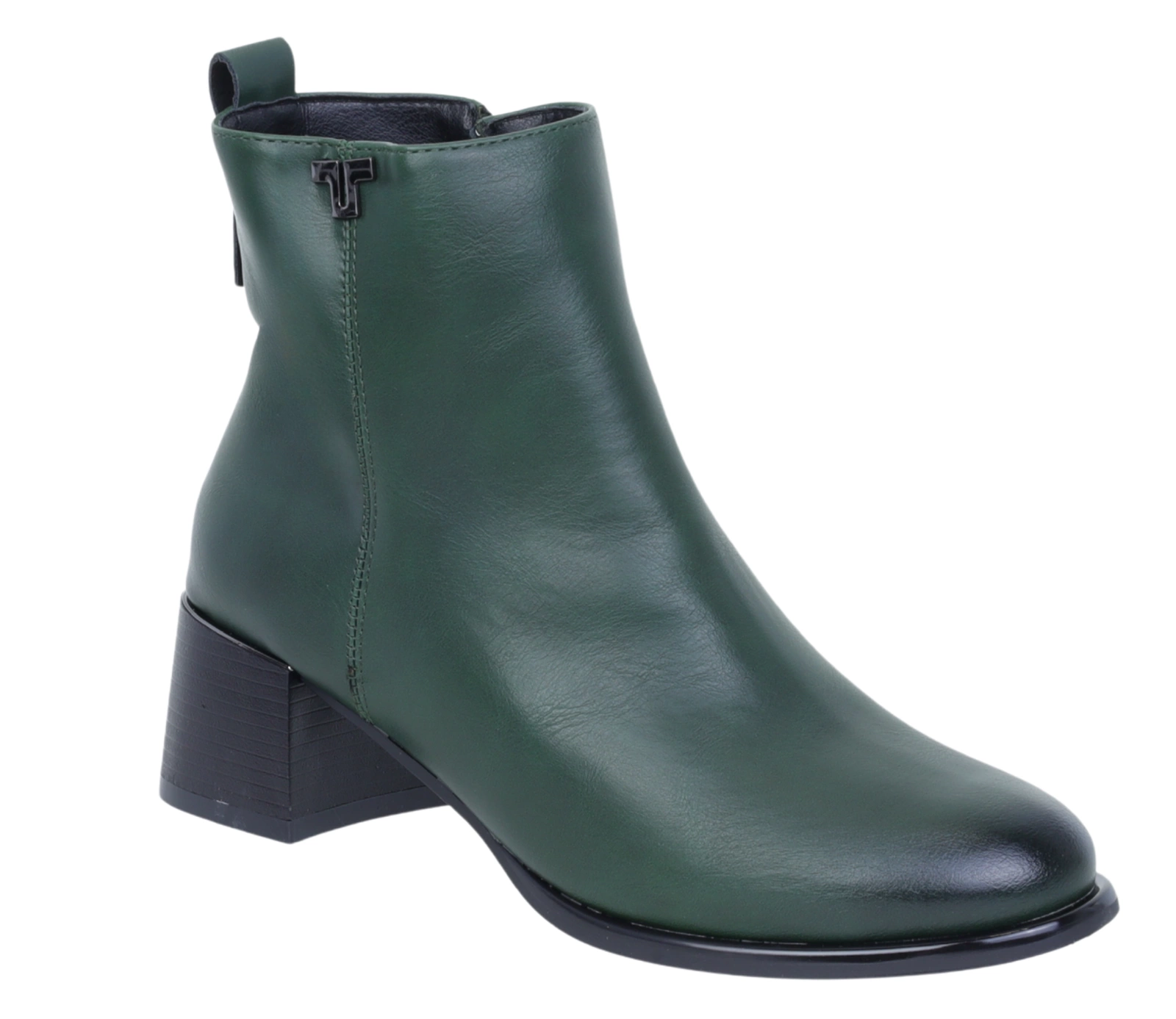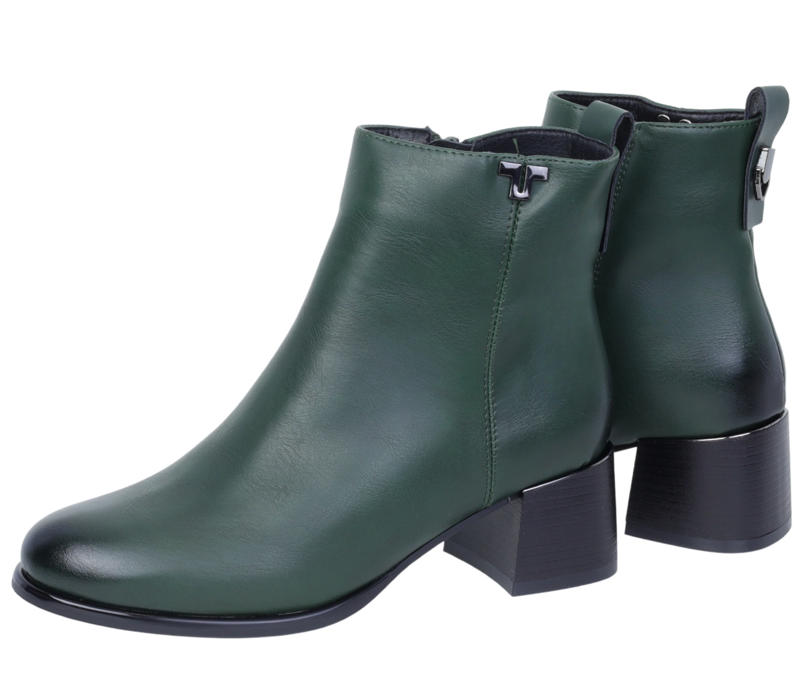 Zielone botki damskie eleganckie na niskim obcasie ocieplane Jezzi