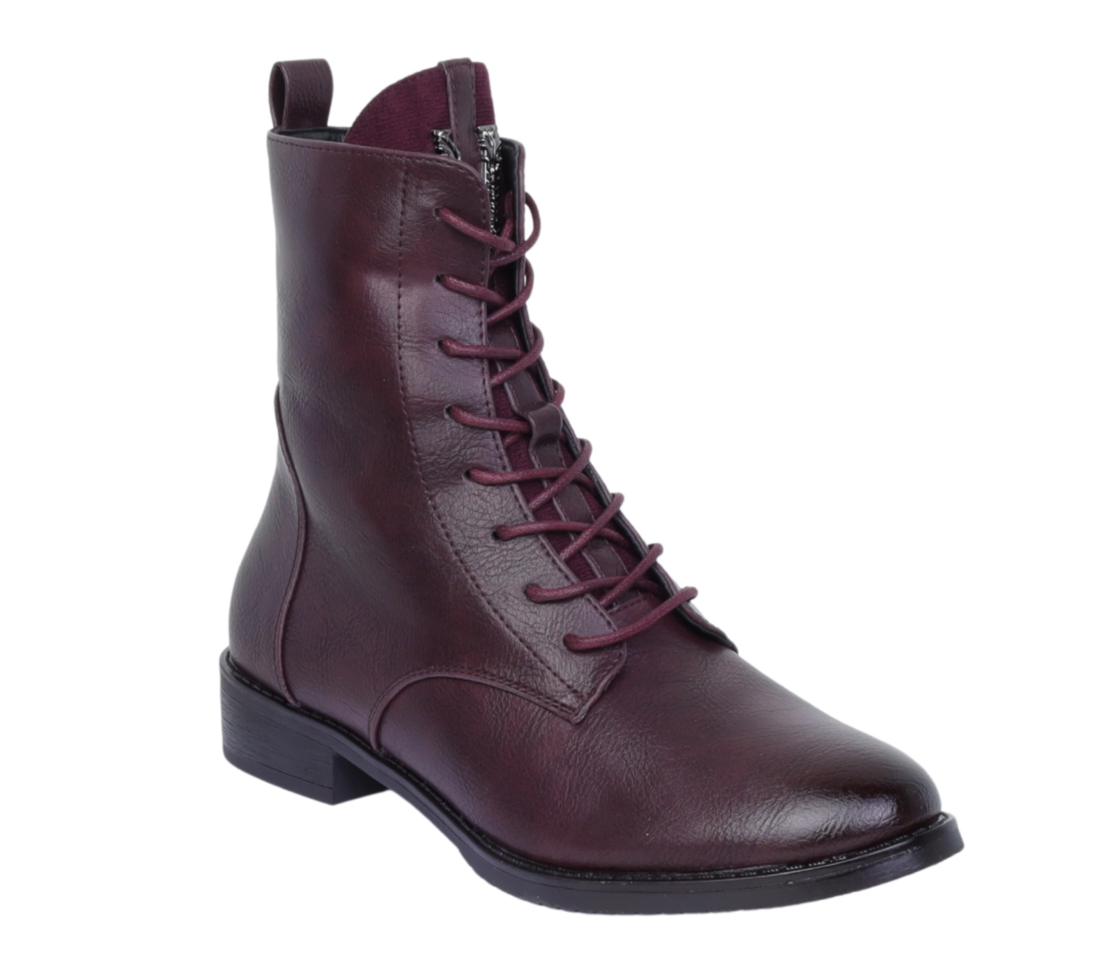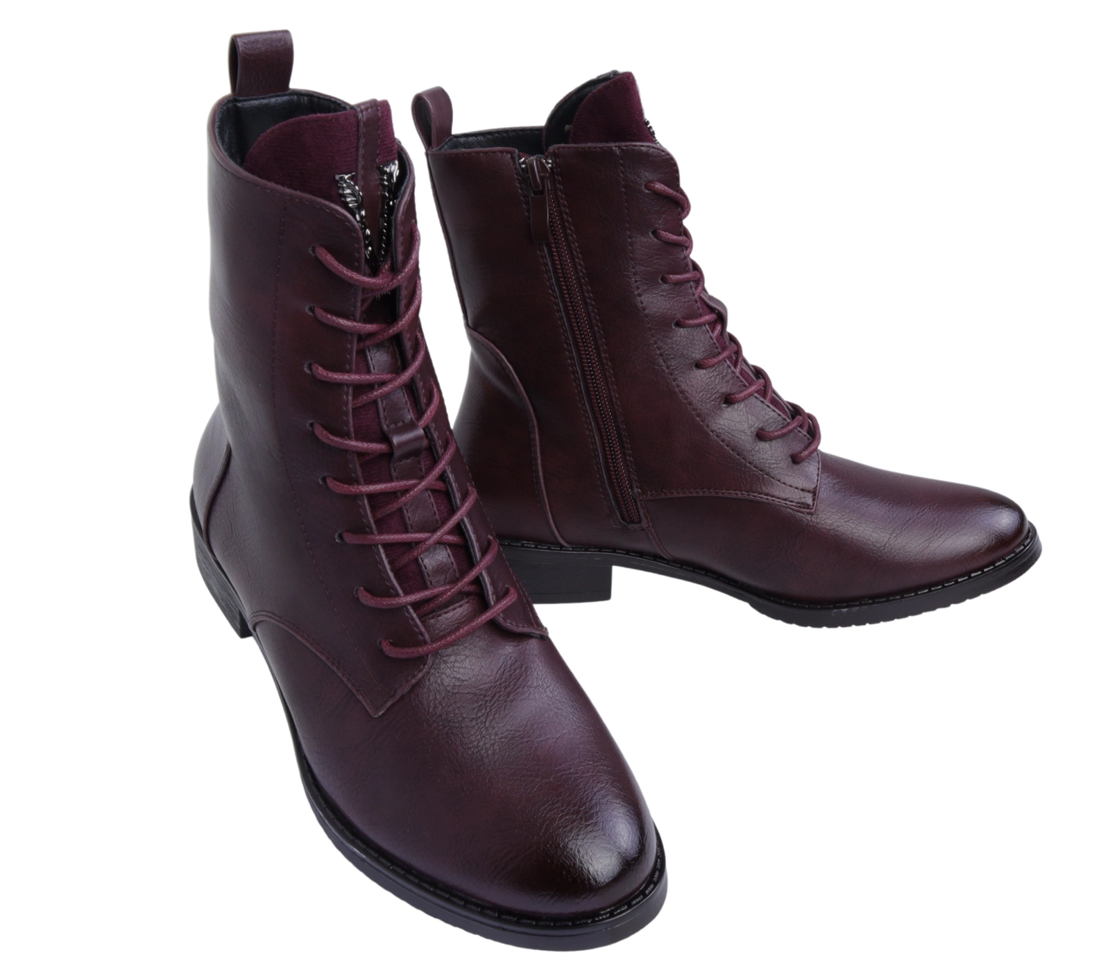 Bordowe botki damskie klasyczne na zamek i sznurowadła Jezzi