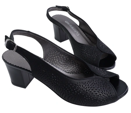 Czarne skórzane czółenka sandały na wygodnym obcasie Gino Fabiani