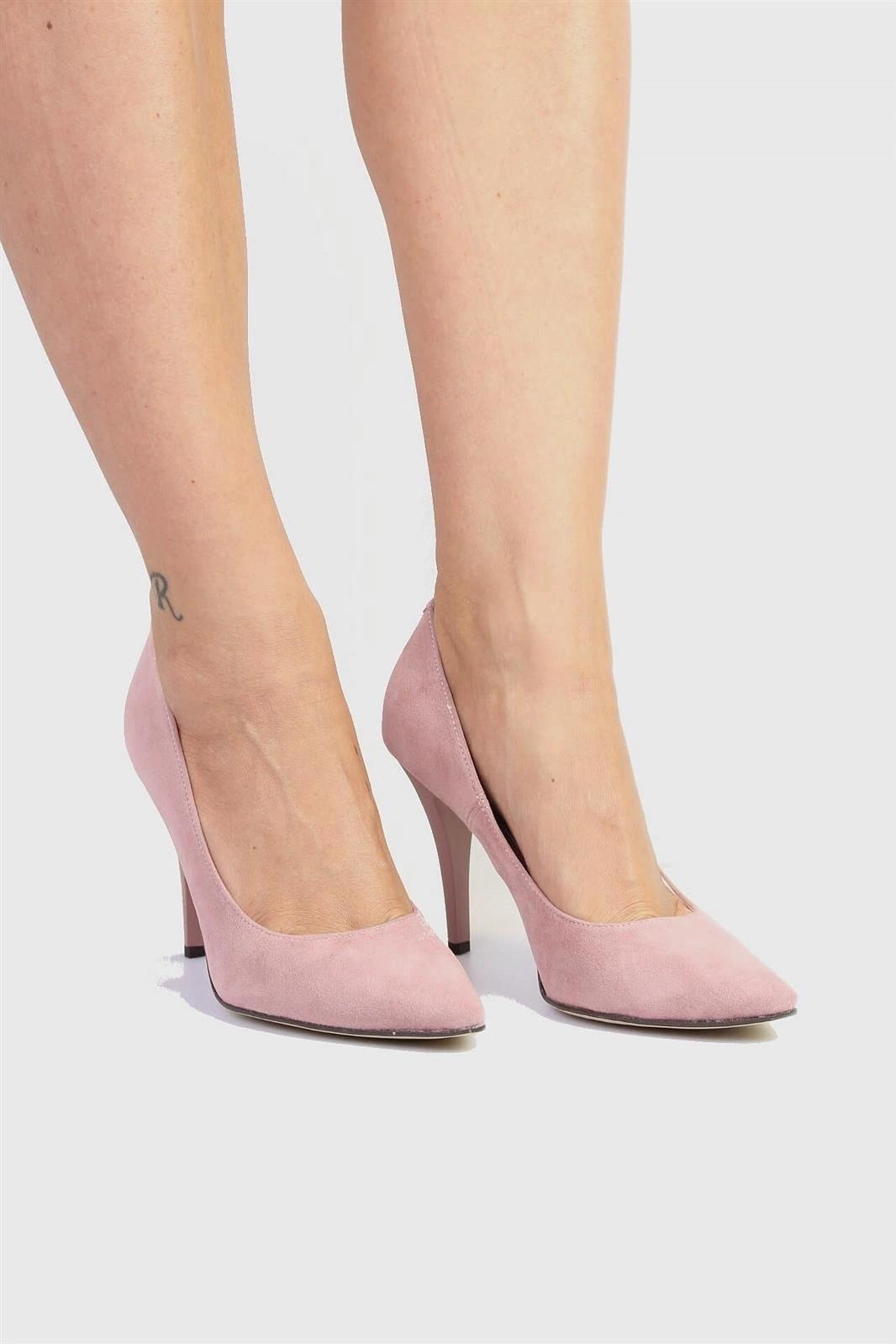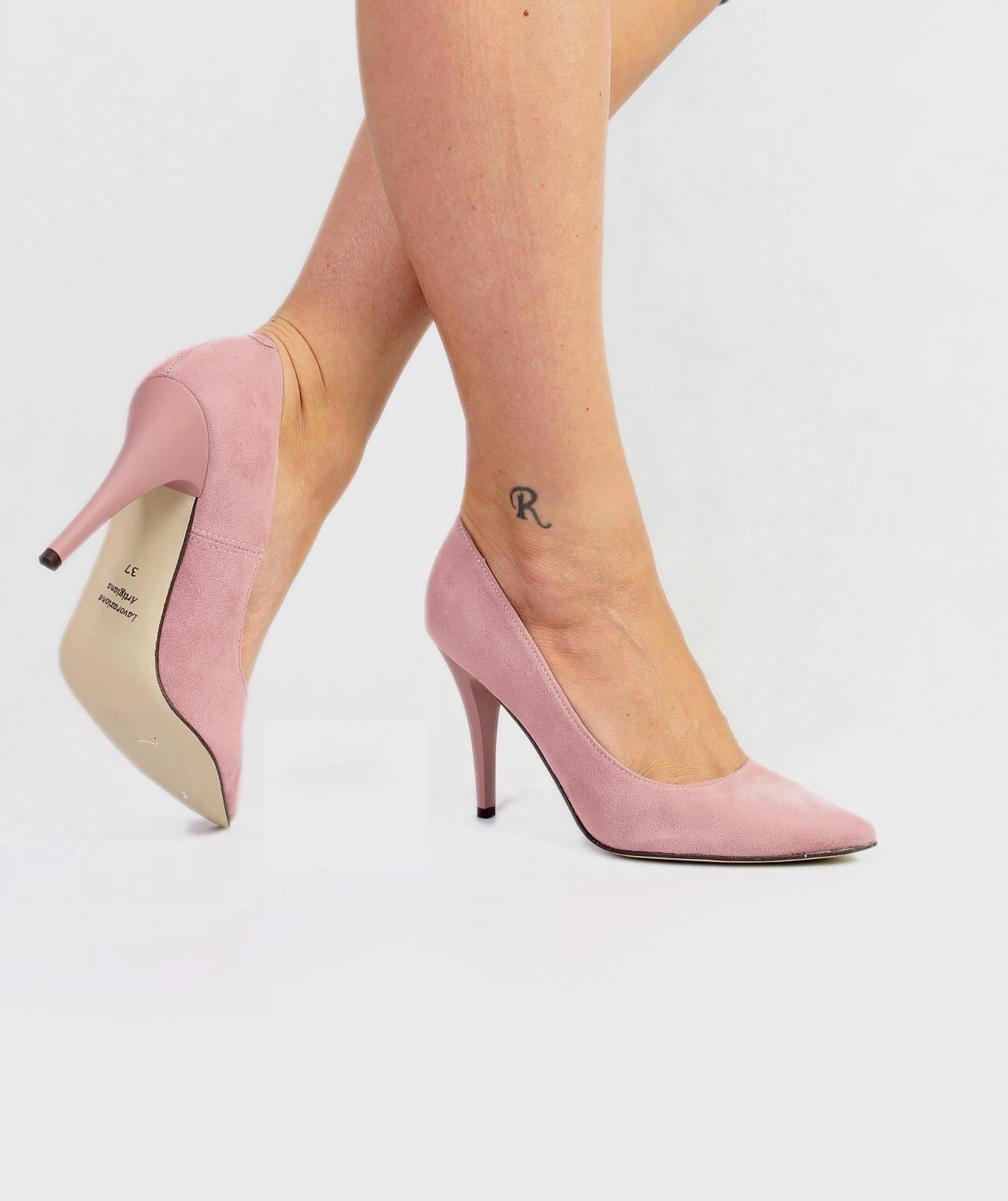Wysokie szpilki zamszowe pudrowy róż JUMA