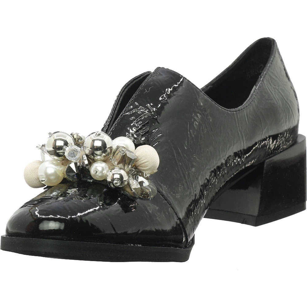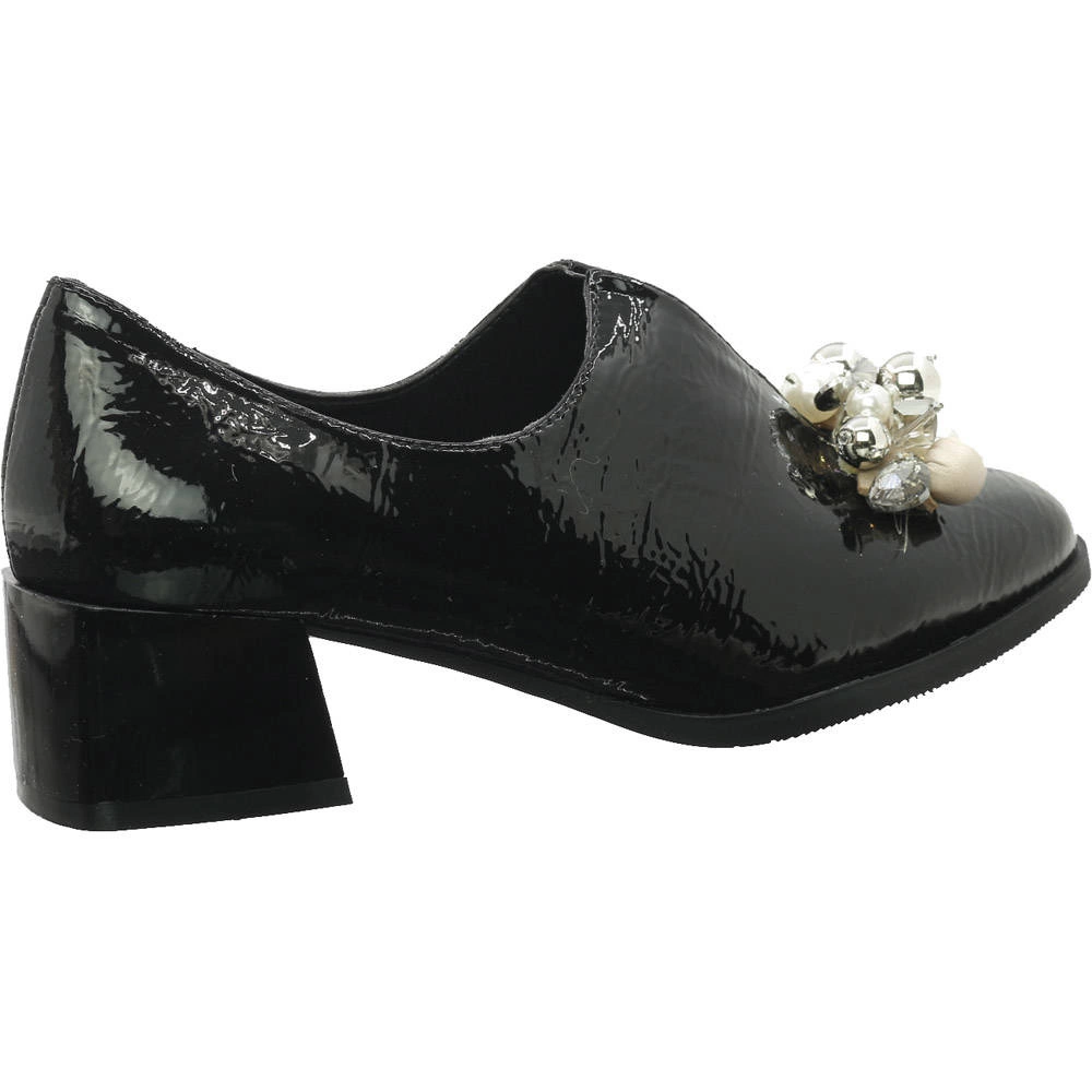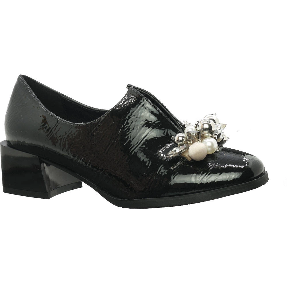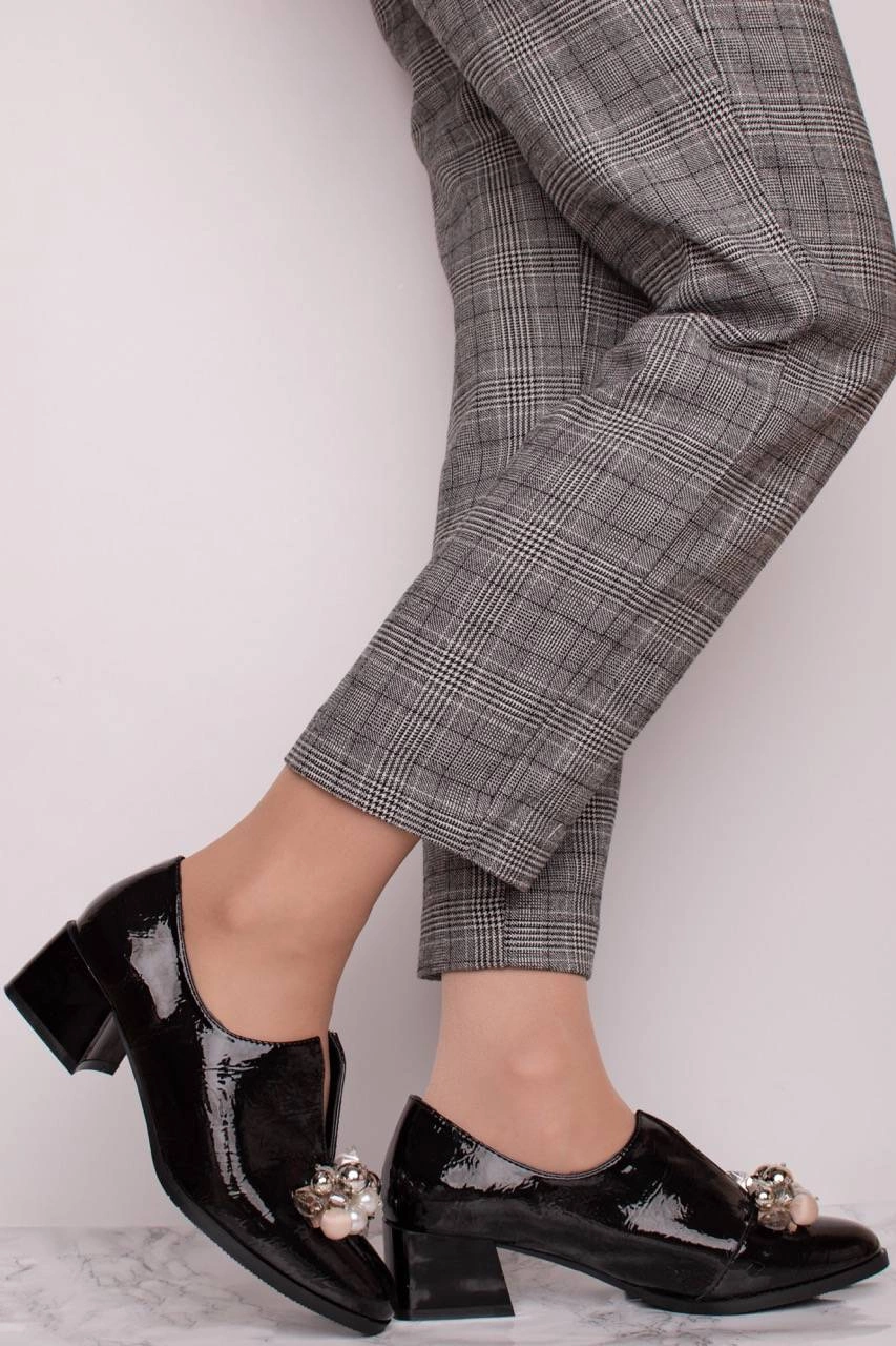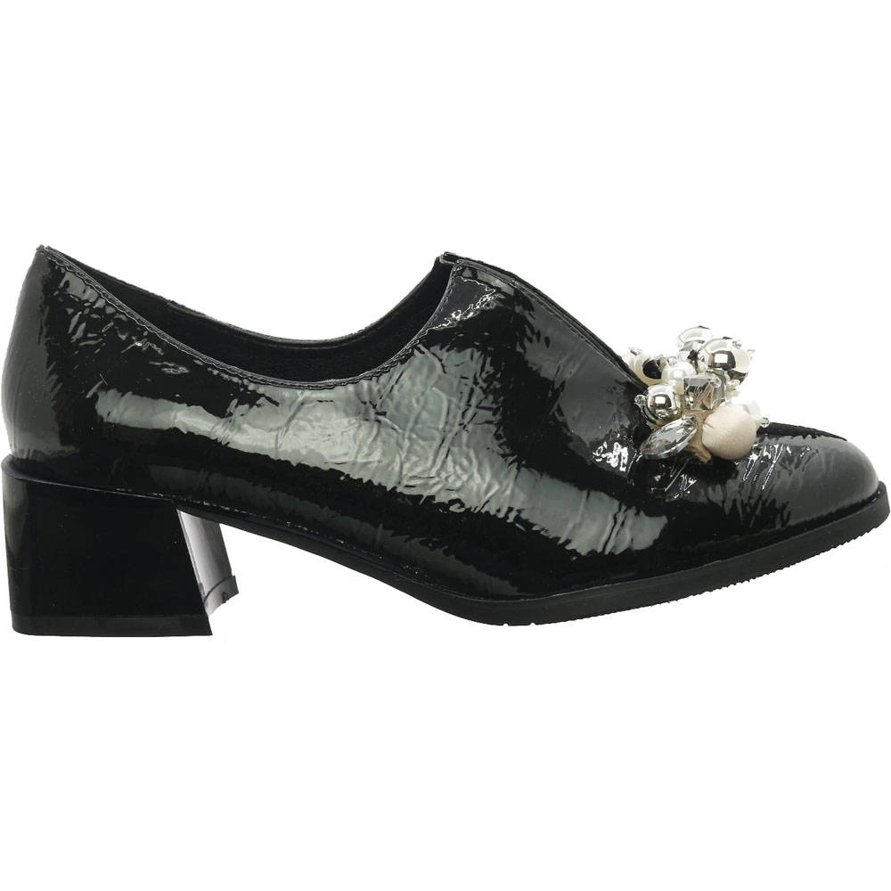 Lakierowane półbuty damskie na obcasie z biżuterią Jezzi