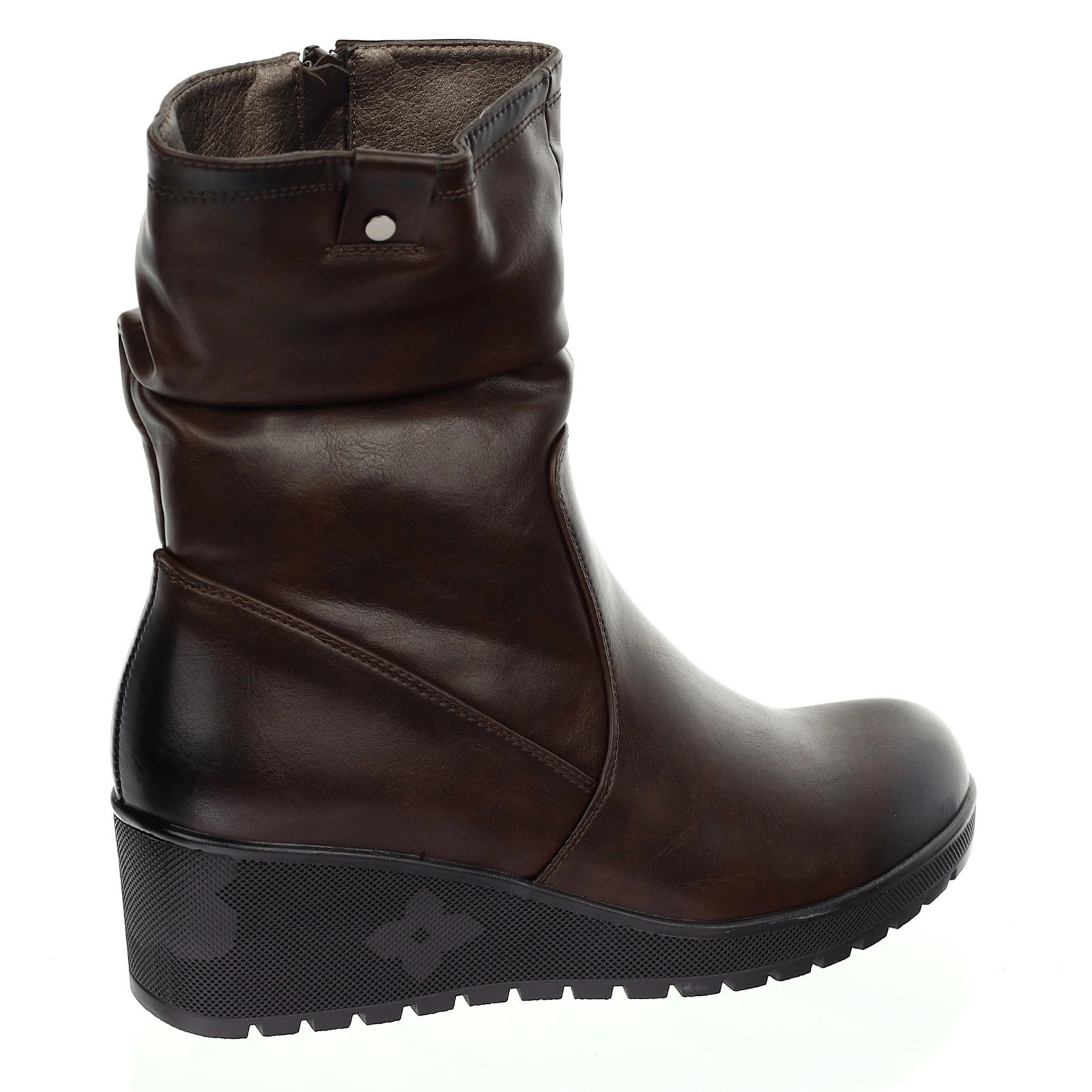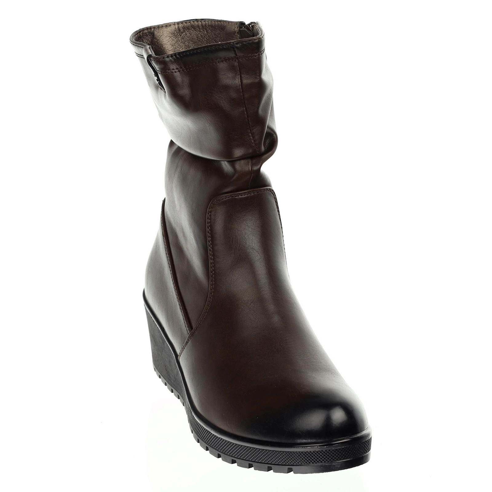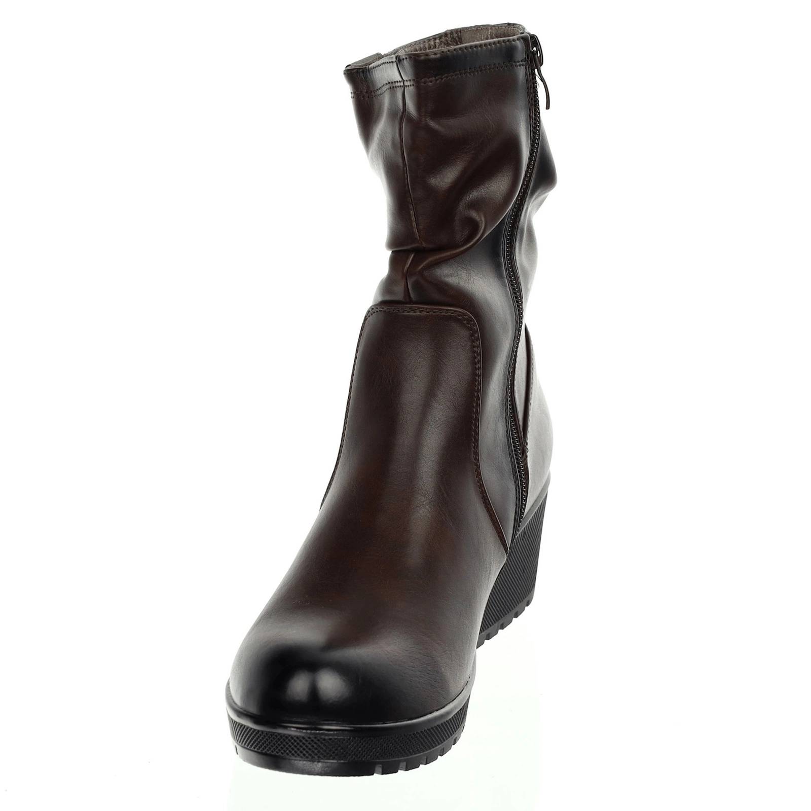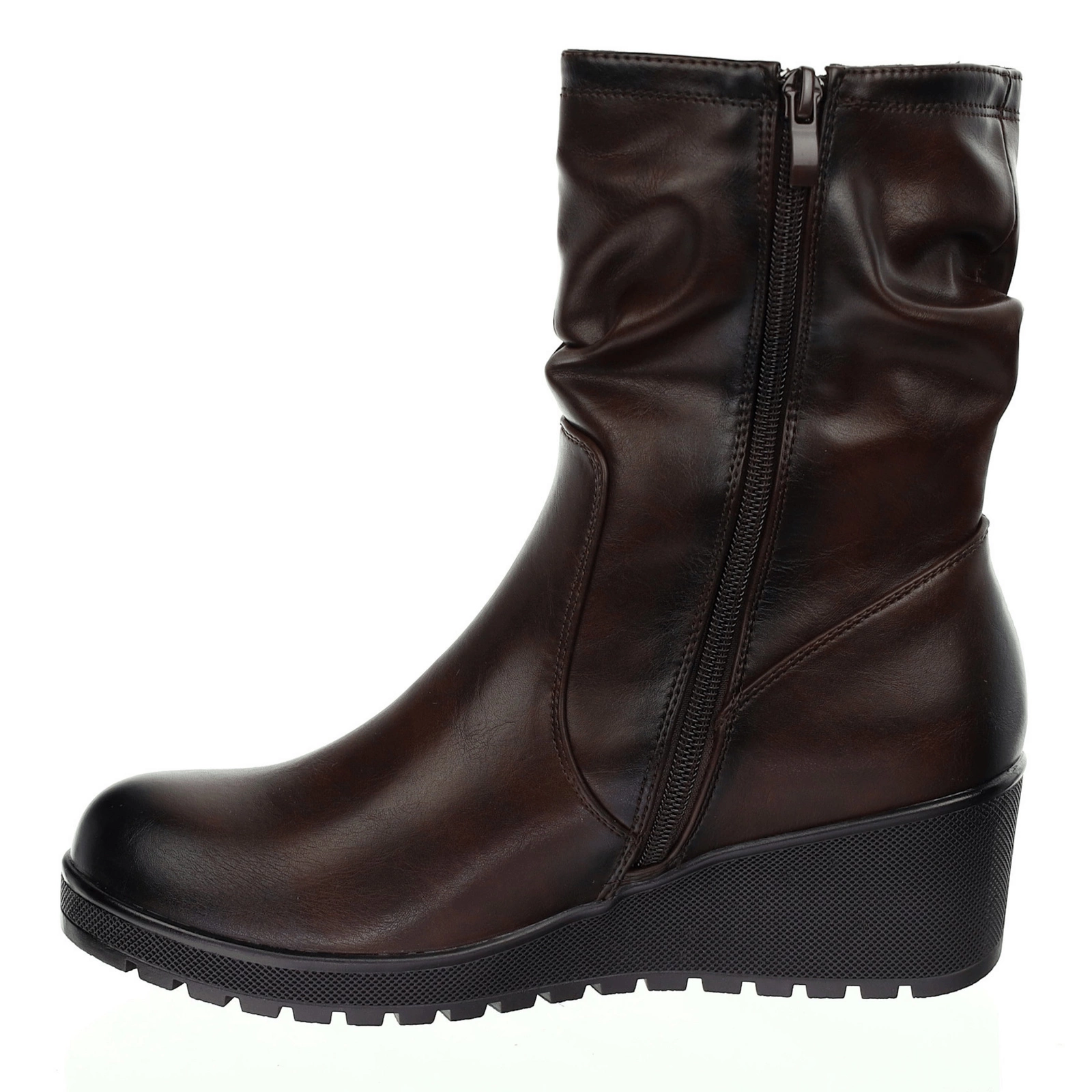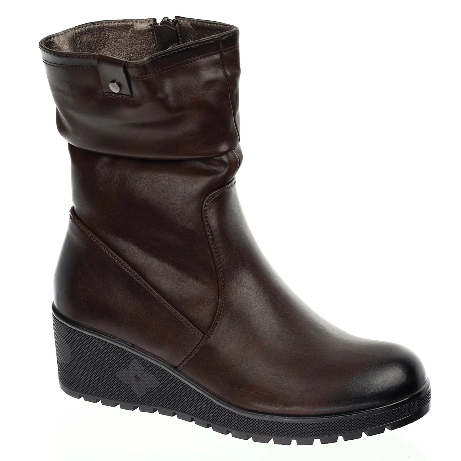 Brązowe czekoladowe botki zimowe komfortowe na koturnie Jezzi