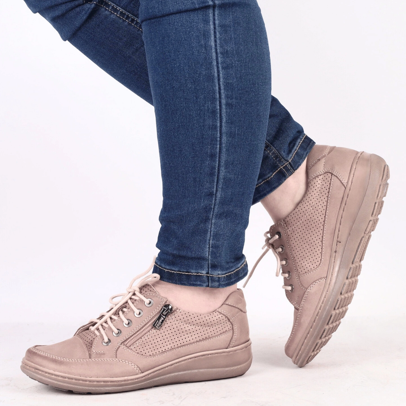 Półbuty beżowe damskie skórzane na zamek Helios 357