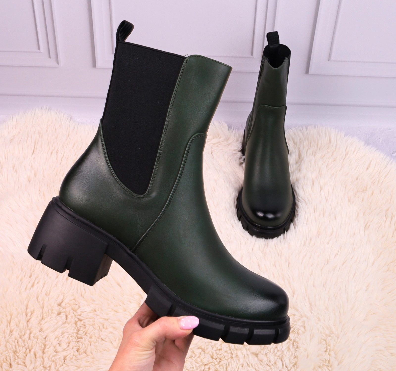 Zimowe botki damskie w kolorze butelkowej zieleni Jezzi