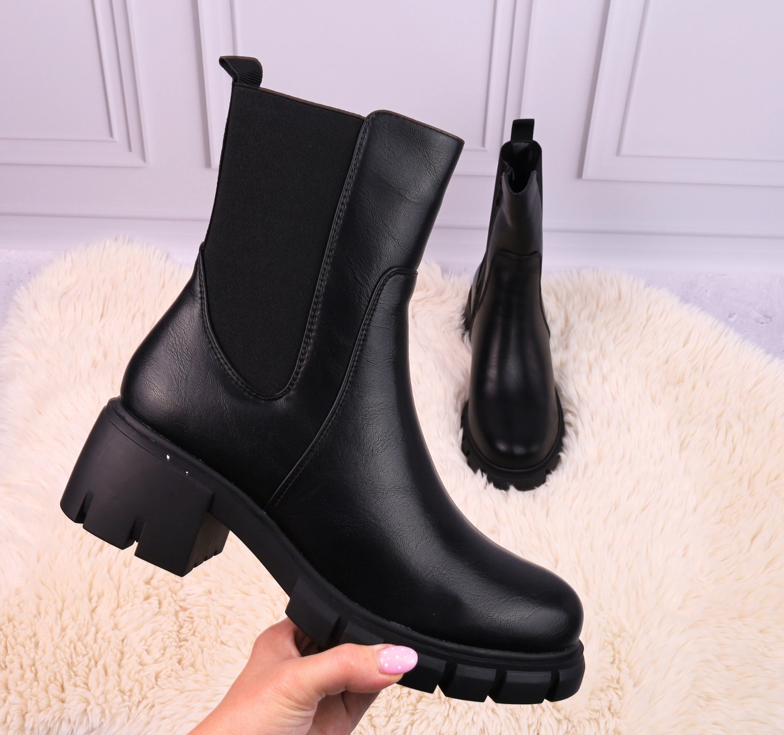 Czarne trapery botki damskie na grubej podeszwie Jezzi