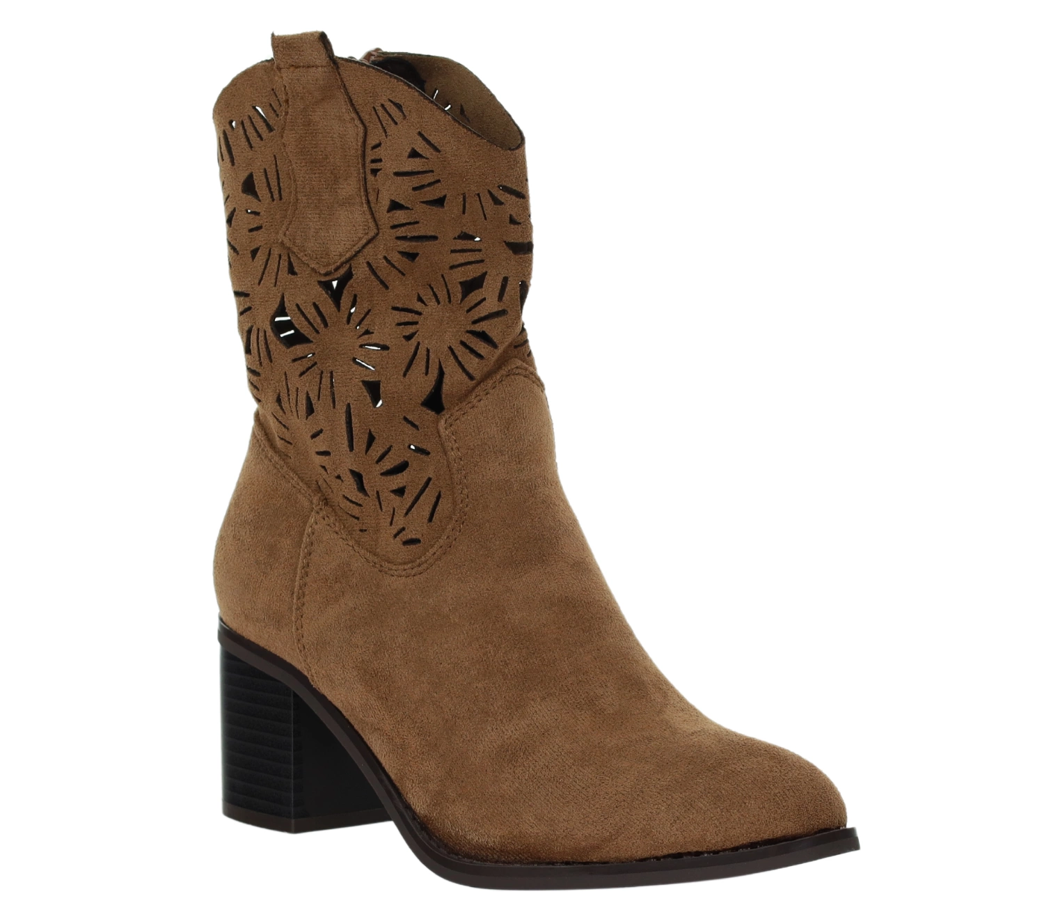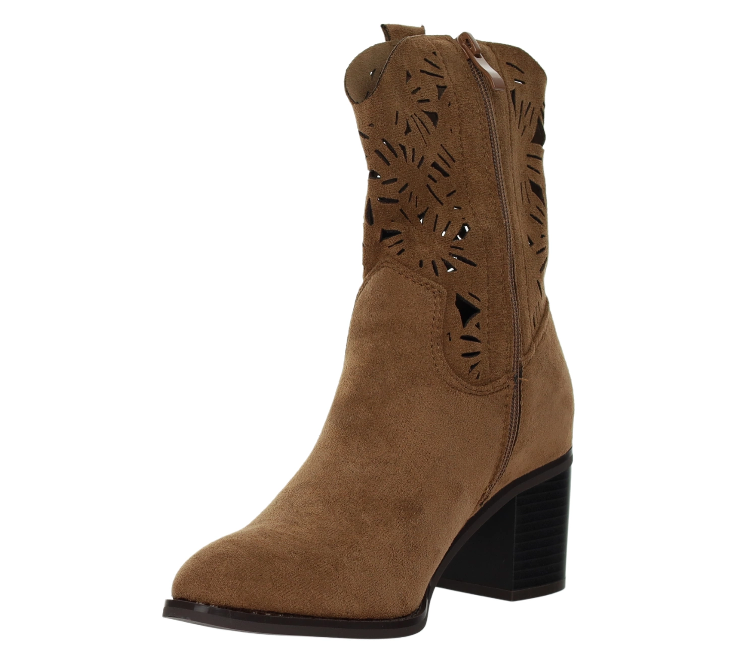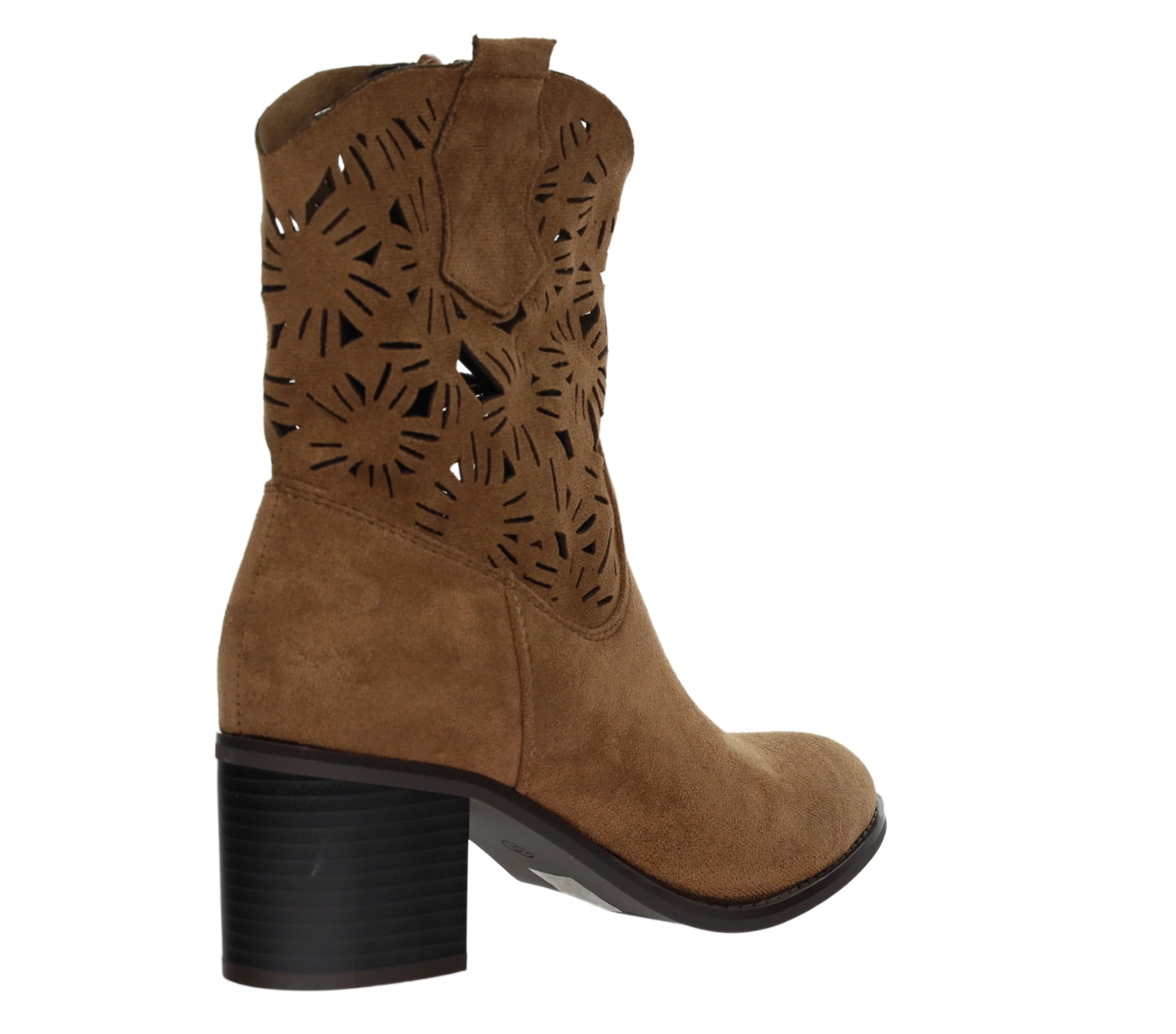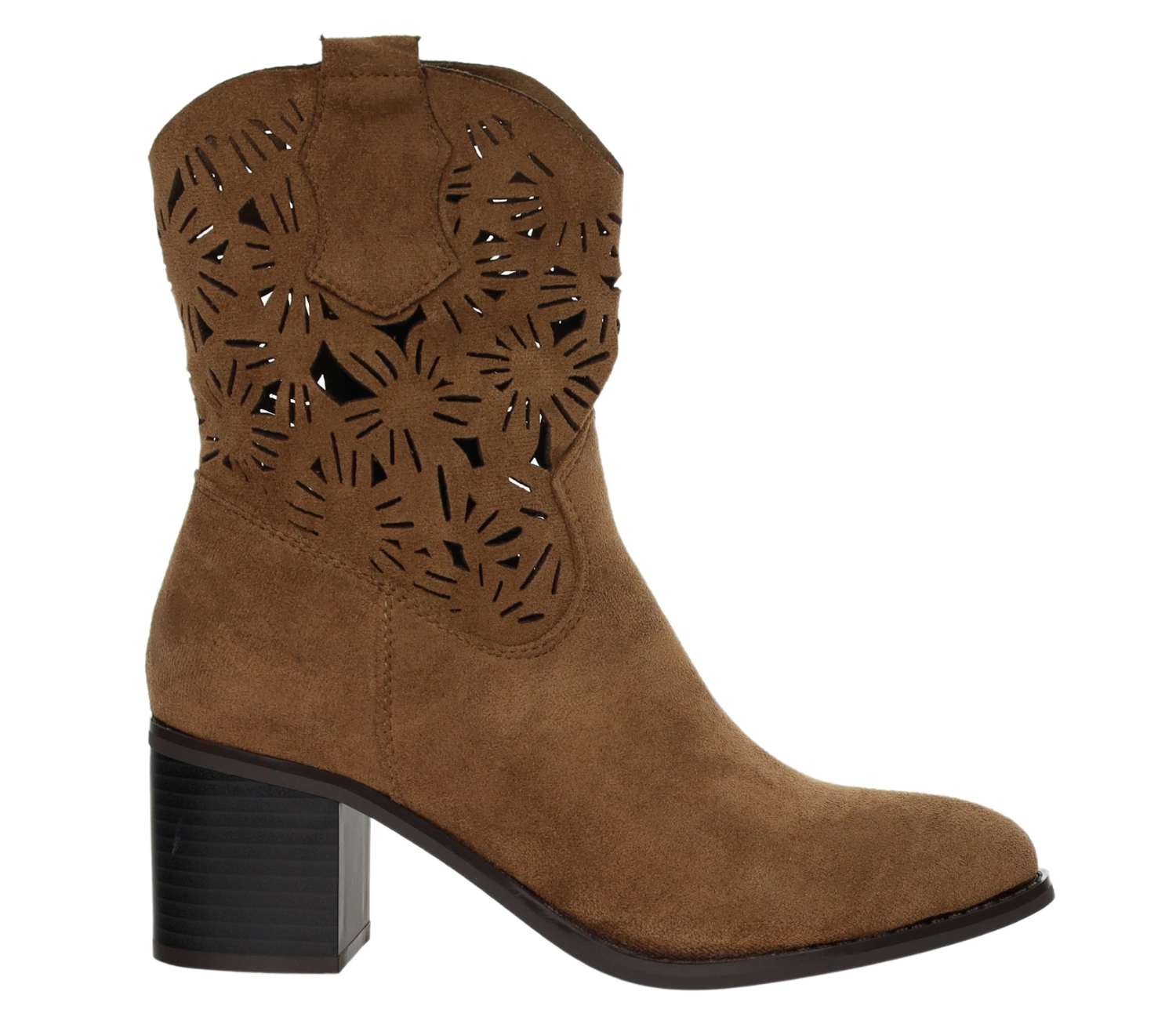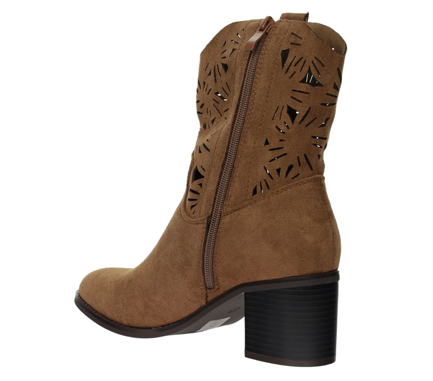 Brązowe czekoladowe zamszowe botki wycinane na obcasie ocieplane Daszyński