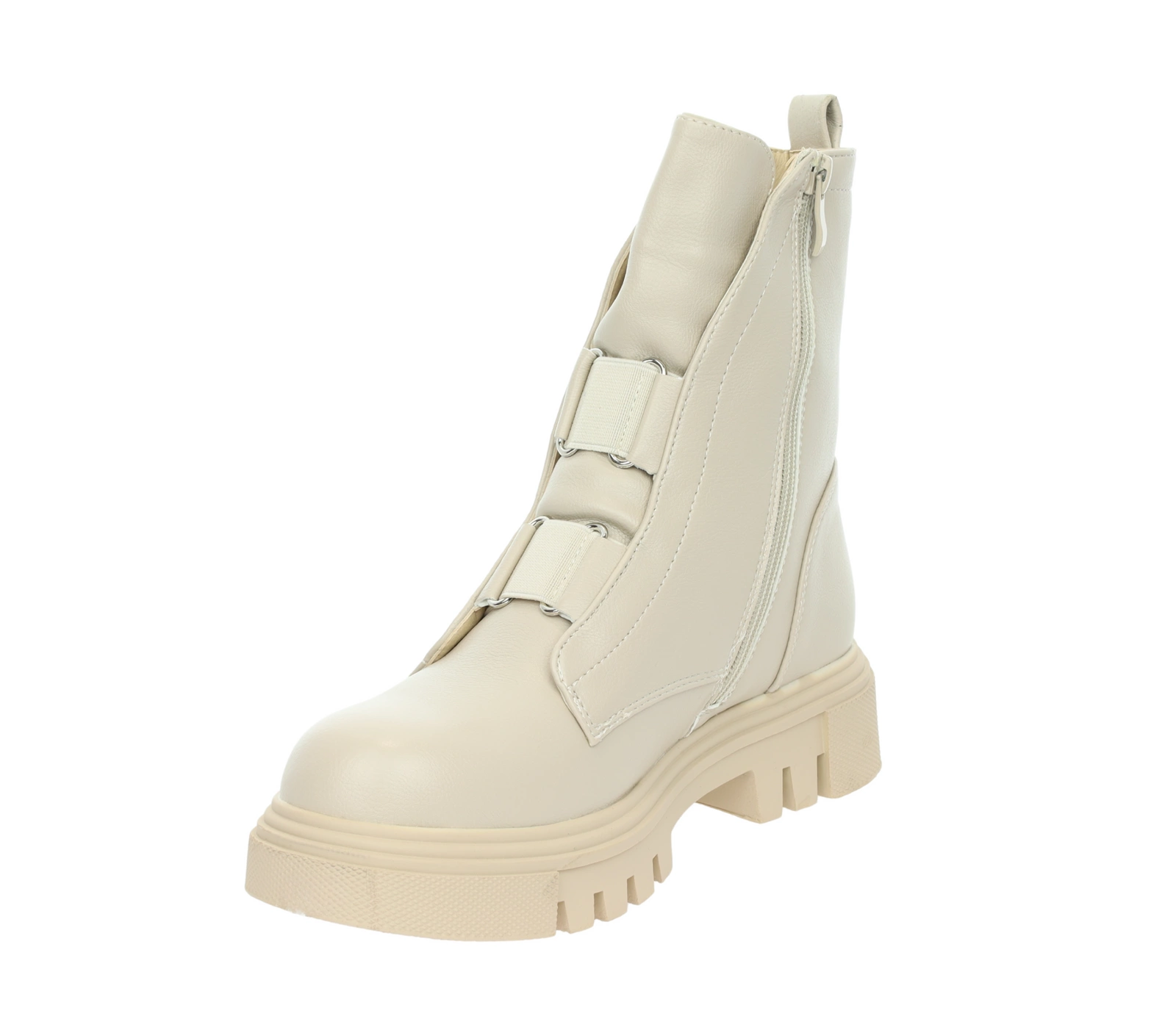 Damskie martensy beżowe zimowe na zamek, o rockowym stylu, to idealne obuwie na chłodne dni. Wykonane z wysokiej jakości materiałów, oferują solidne ocieplenie, zapewniając ciepło i komfort nawet w najzimniejsze dni. Zamek błyskawiczny ułatwia zakładanie i zdejmowanie. Rockowy design, z charakterystycznymi detalami, dodaje im wyrazistego charakteru. Te botki traperki są nie tylko praktyczne, ale też stylowe, doskonale pasując do casualowych i bardziej awangardowych zimowych stylizacji.