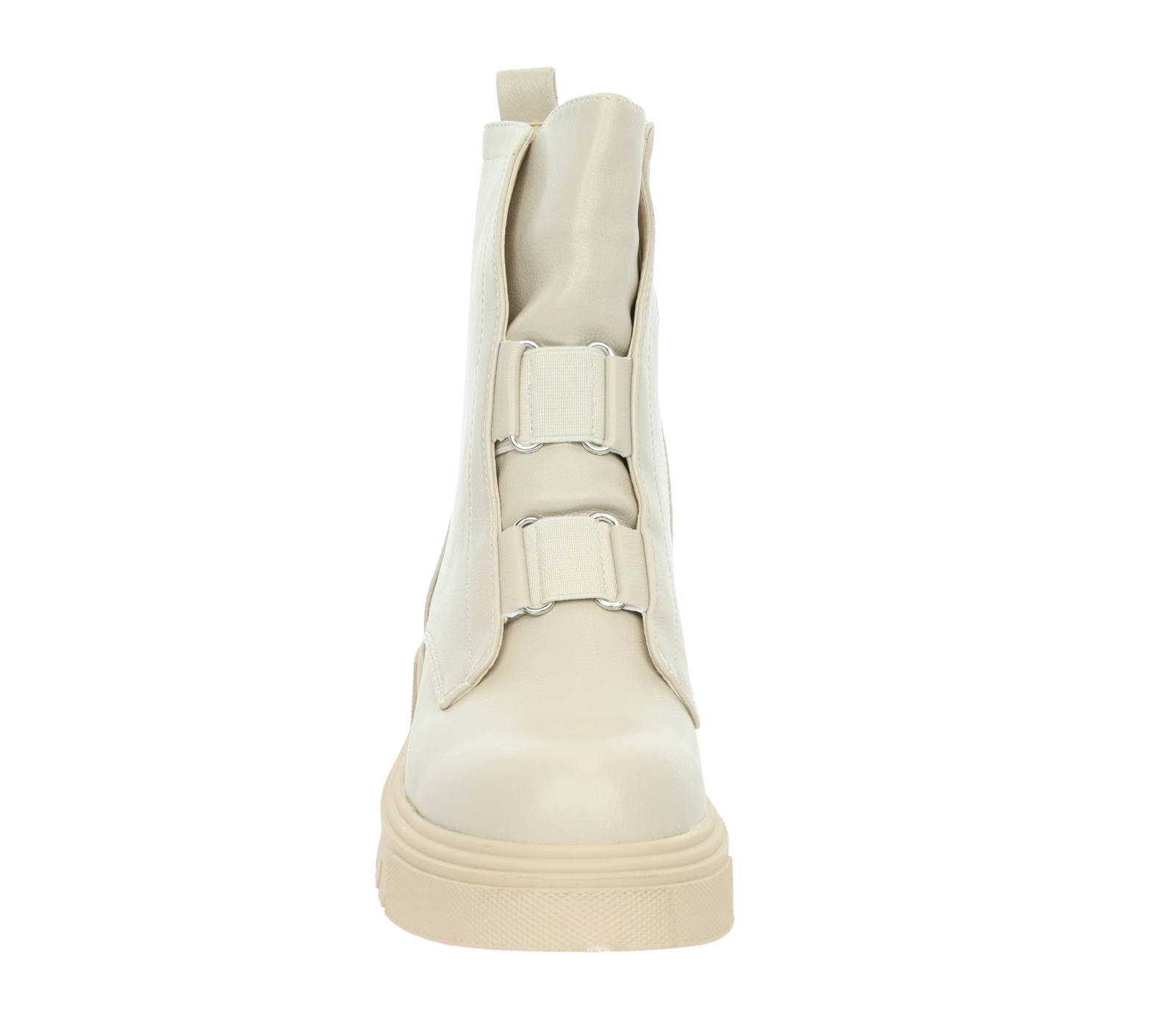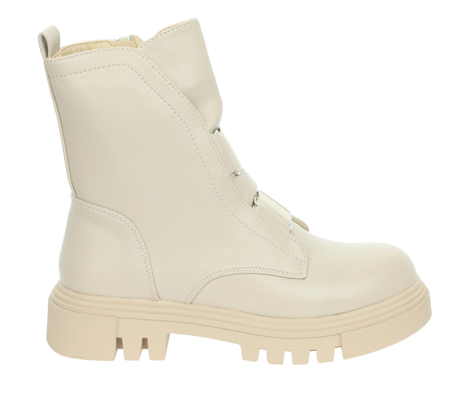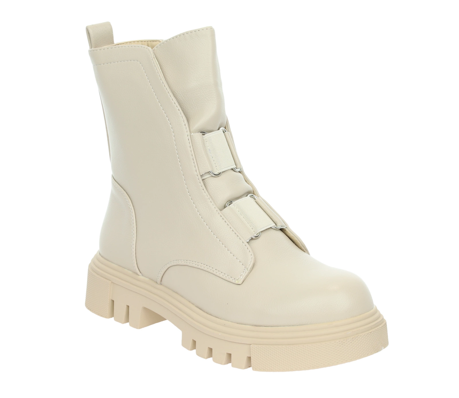 Beżowe botki glany damskie ocieplone futerkiem Jezzi