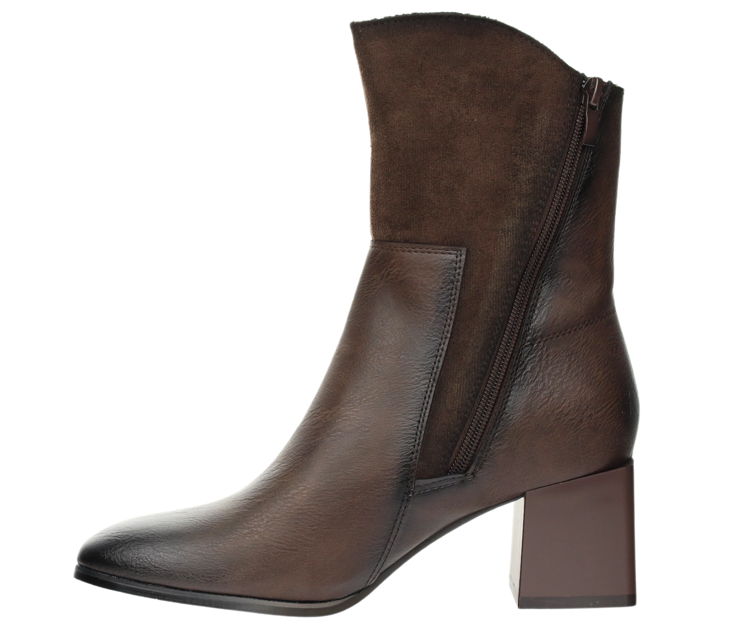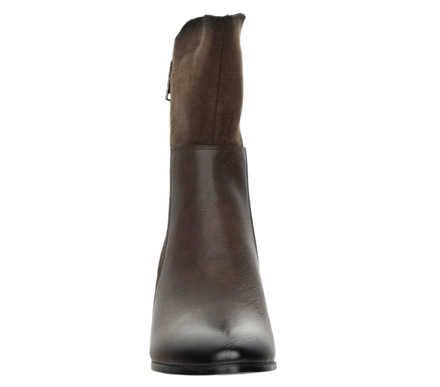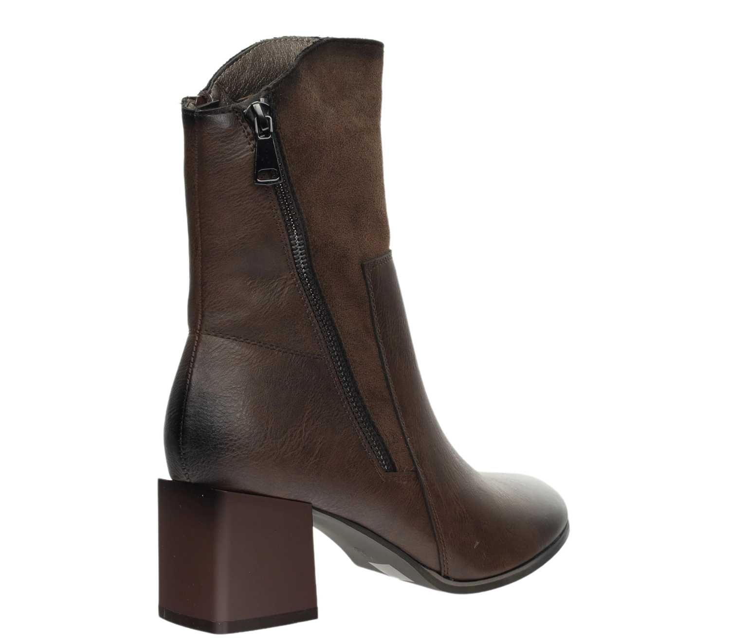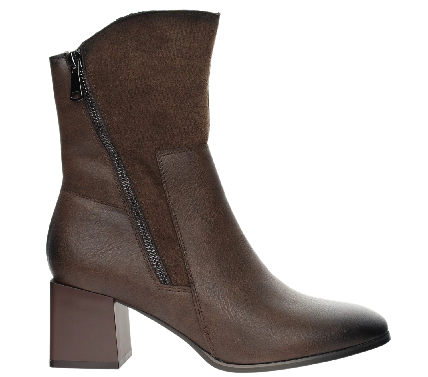 Stylowe brązowe botki damskie na obcasie z zamszowym wykończeniem