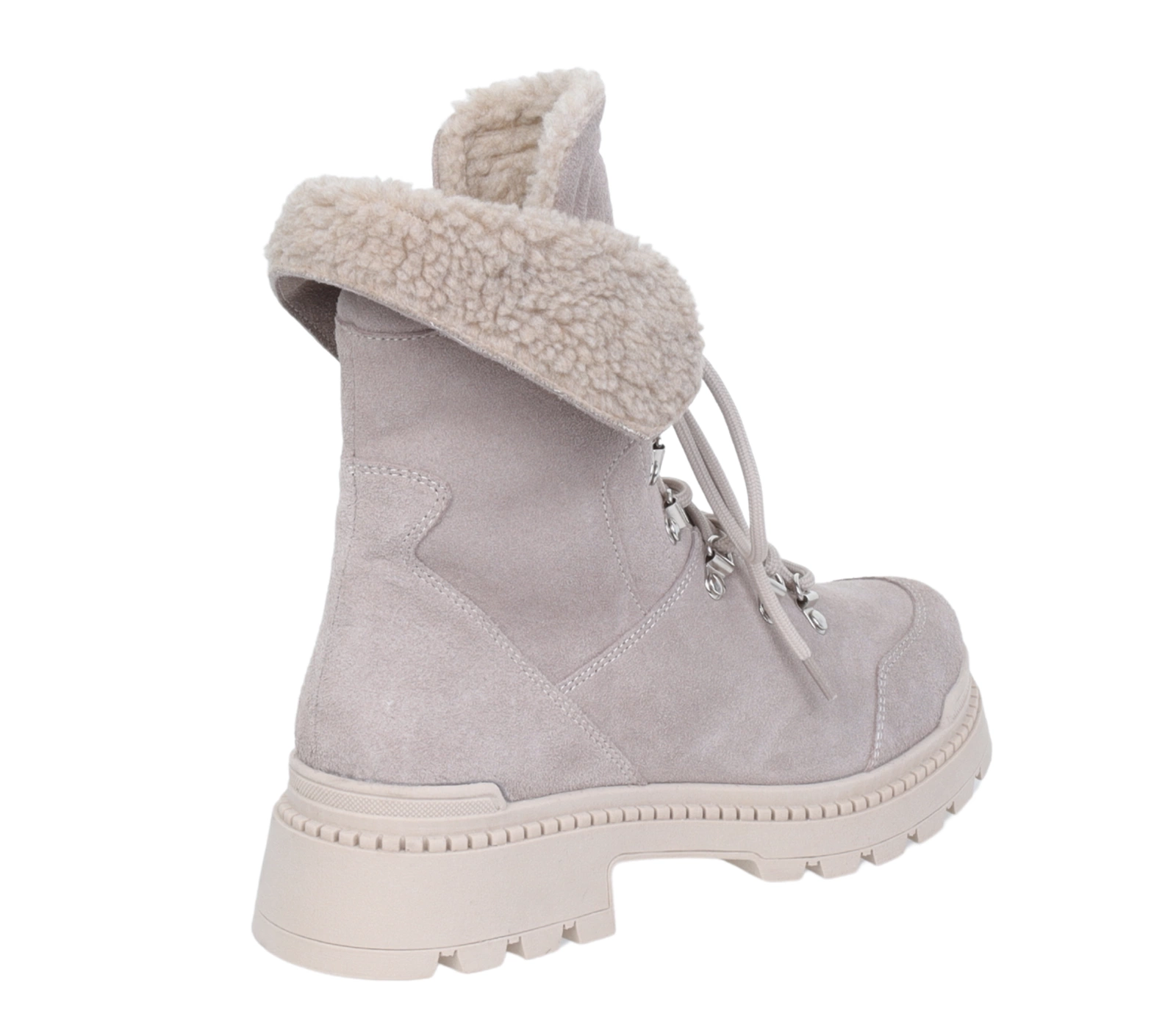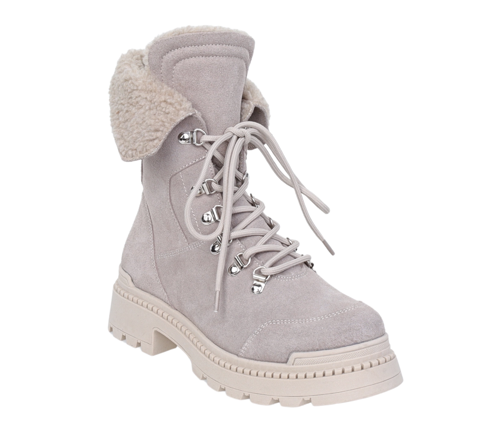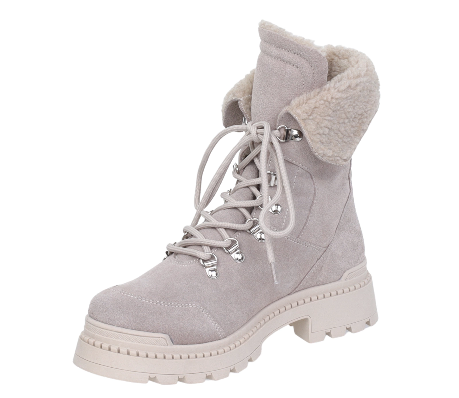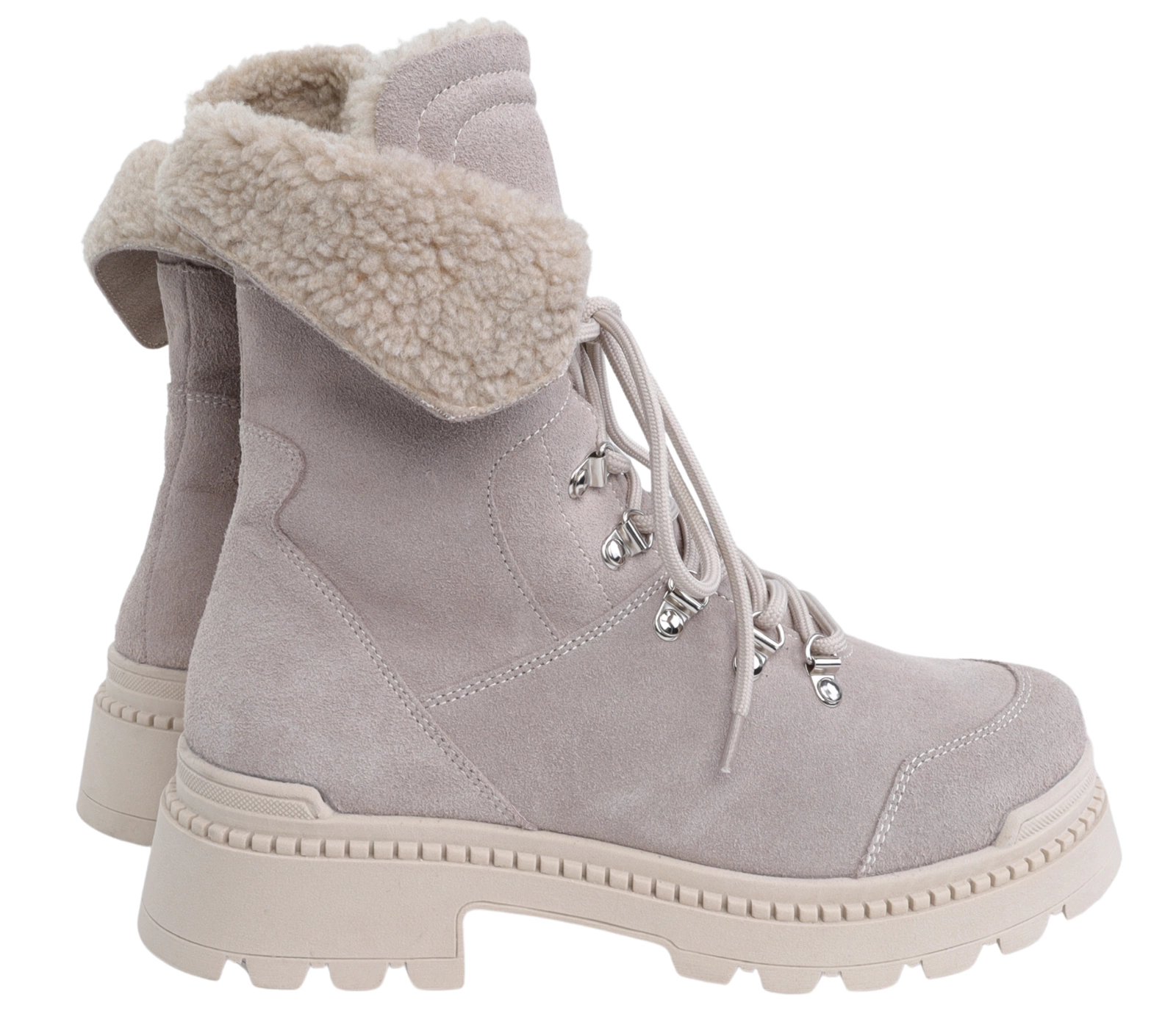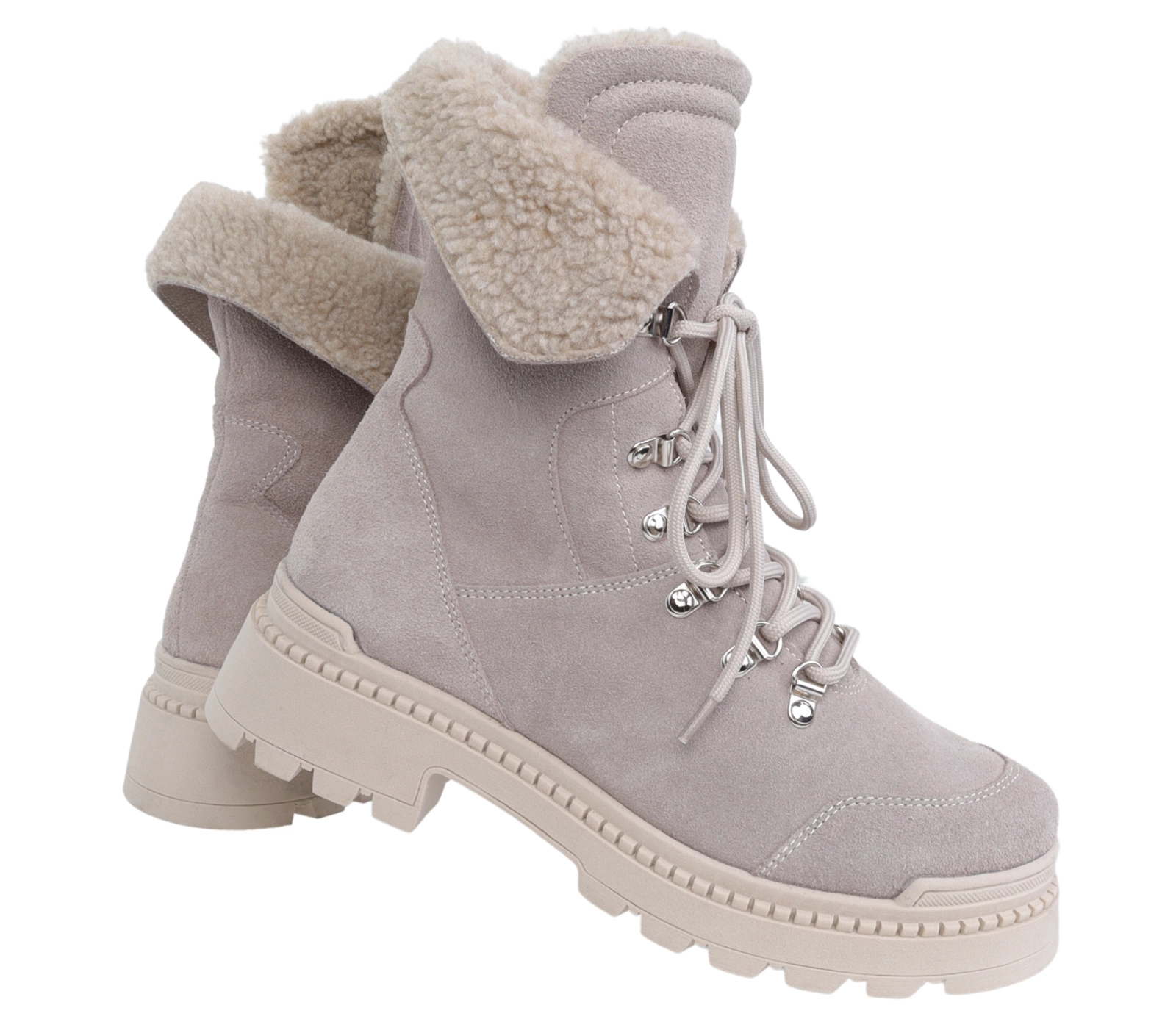 • Beżowe traperki skórzane damskie szyte w Polsce. Gruba, solidna podeszwa nie bojąca się żadnej pogody, ocieplenie, które przyjemnie ogrzewa stopy. To idealne buty zimowe skórzane na jesienno-zimowe dni.