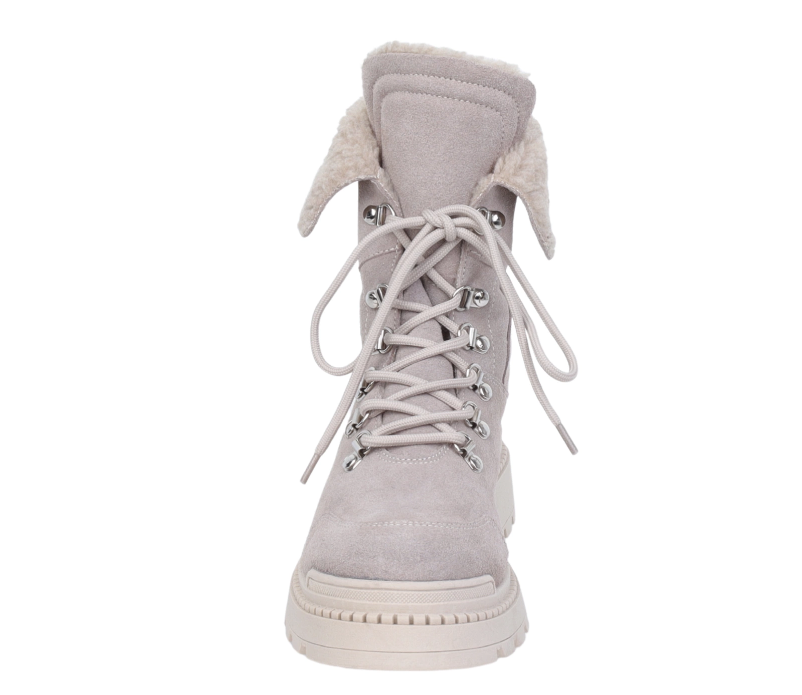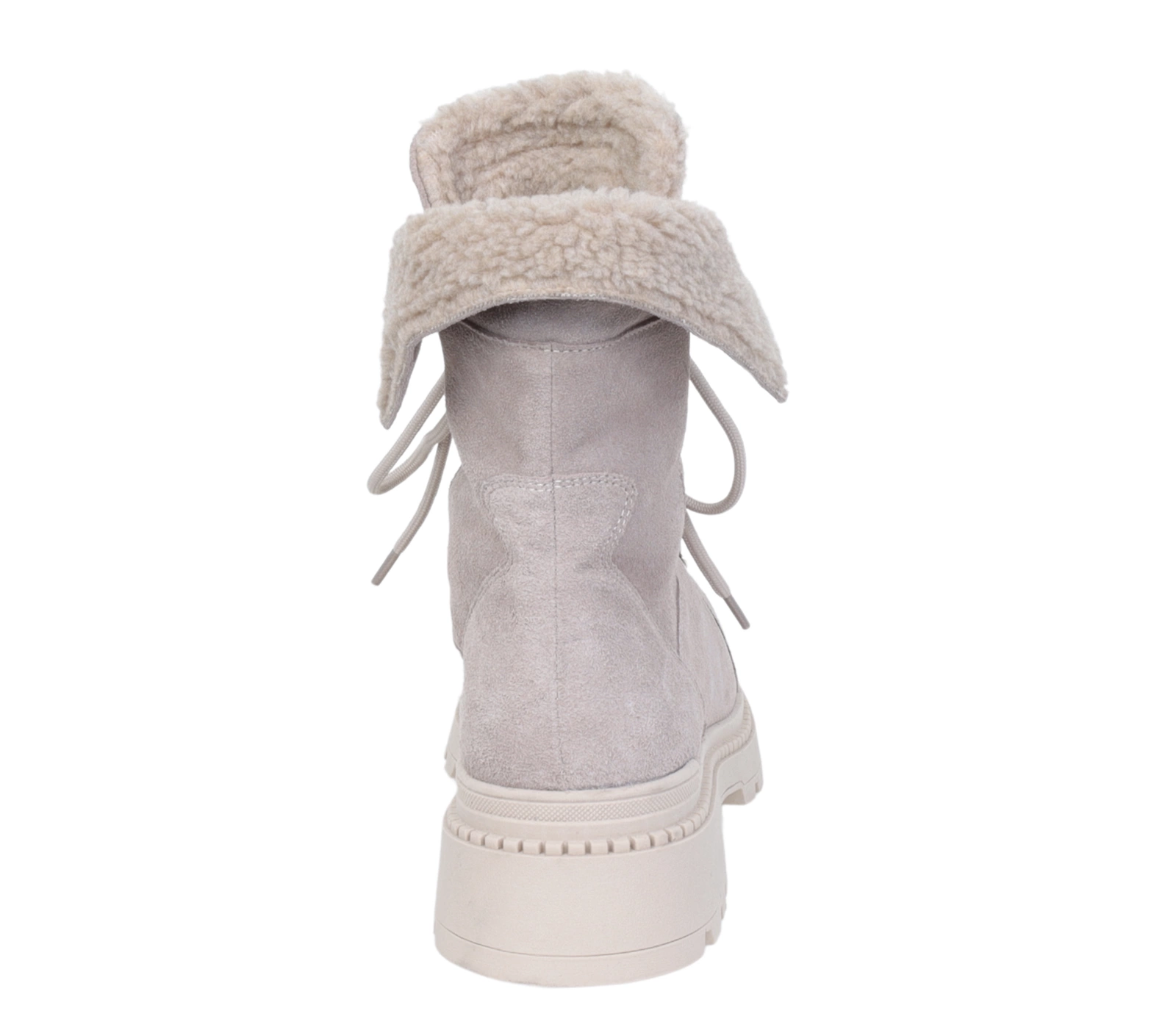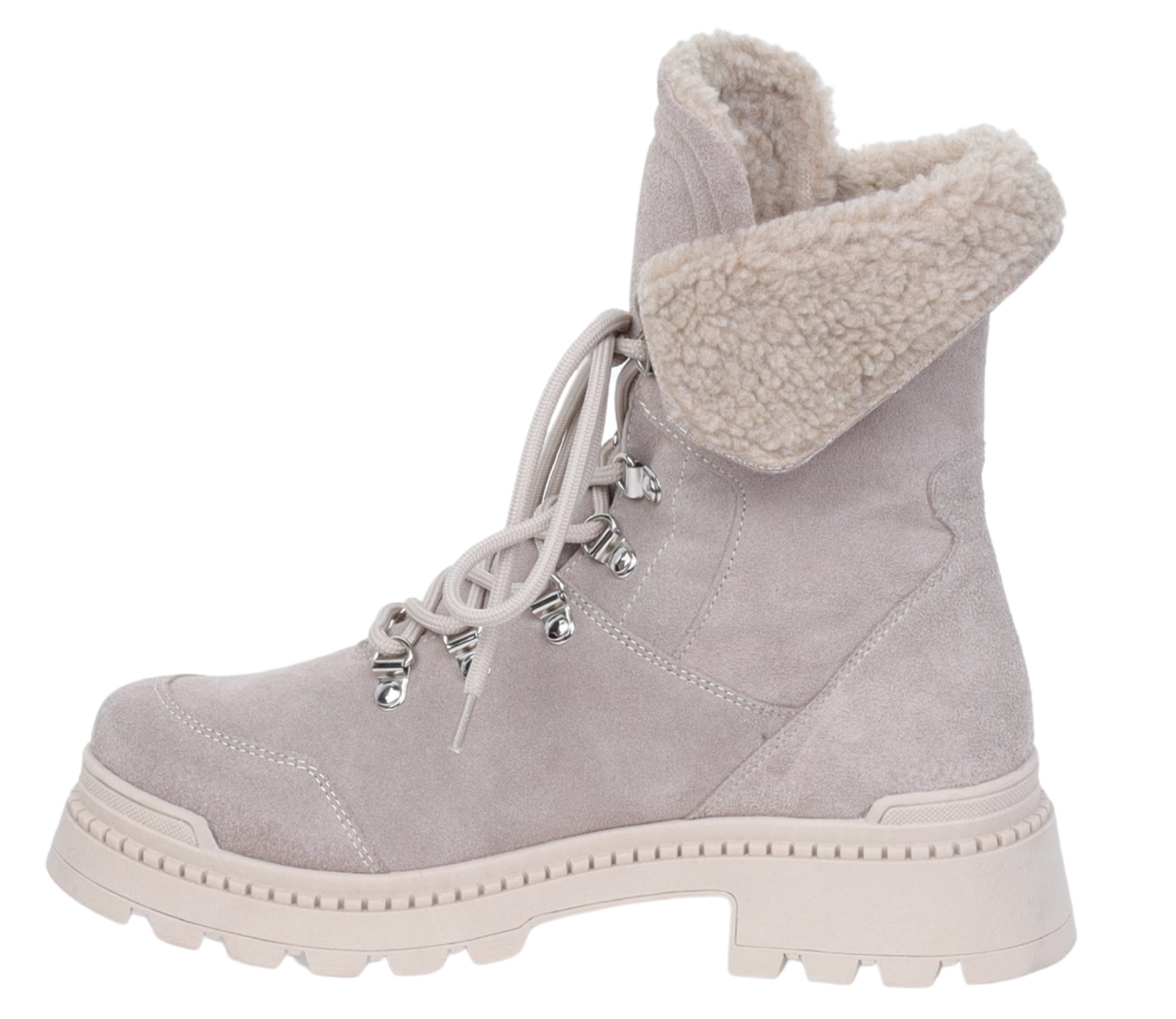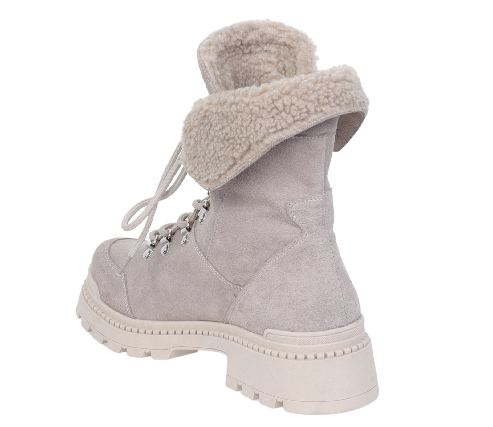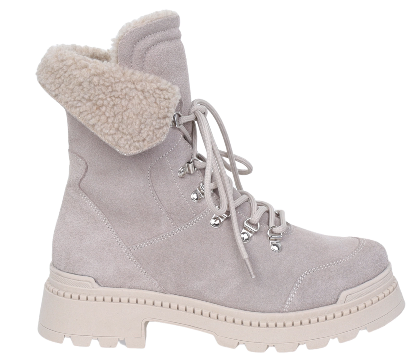 • Beżowe traperki skórzane damskie szyte w Polsce. Gruba, solidna podeszwa nie bojąca się żadnej pogody, ocieplenie, które przyjemnie ogrzewa stopy. To idealne buty zimowe skórzane na jesienno-zimowe dni.