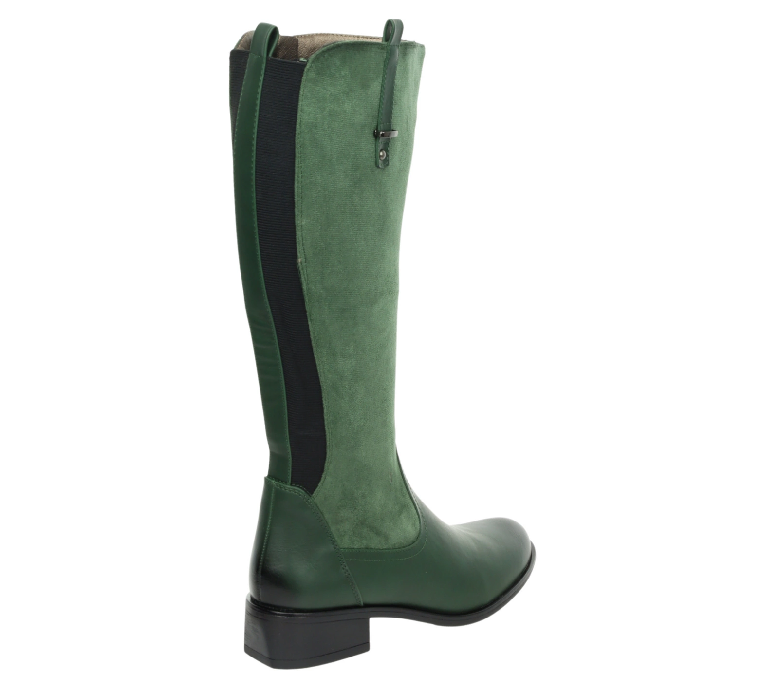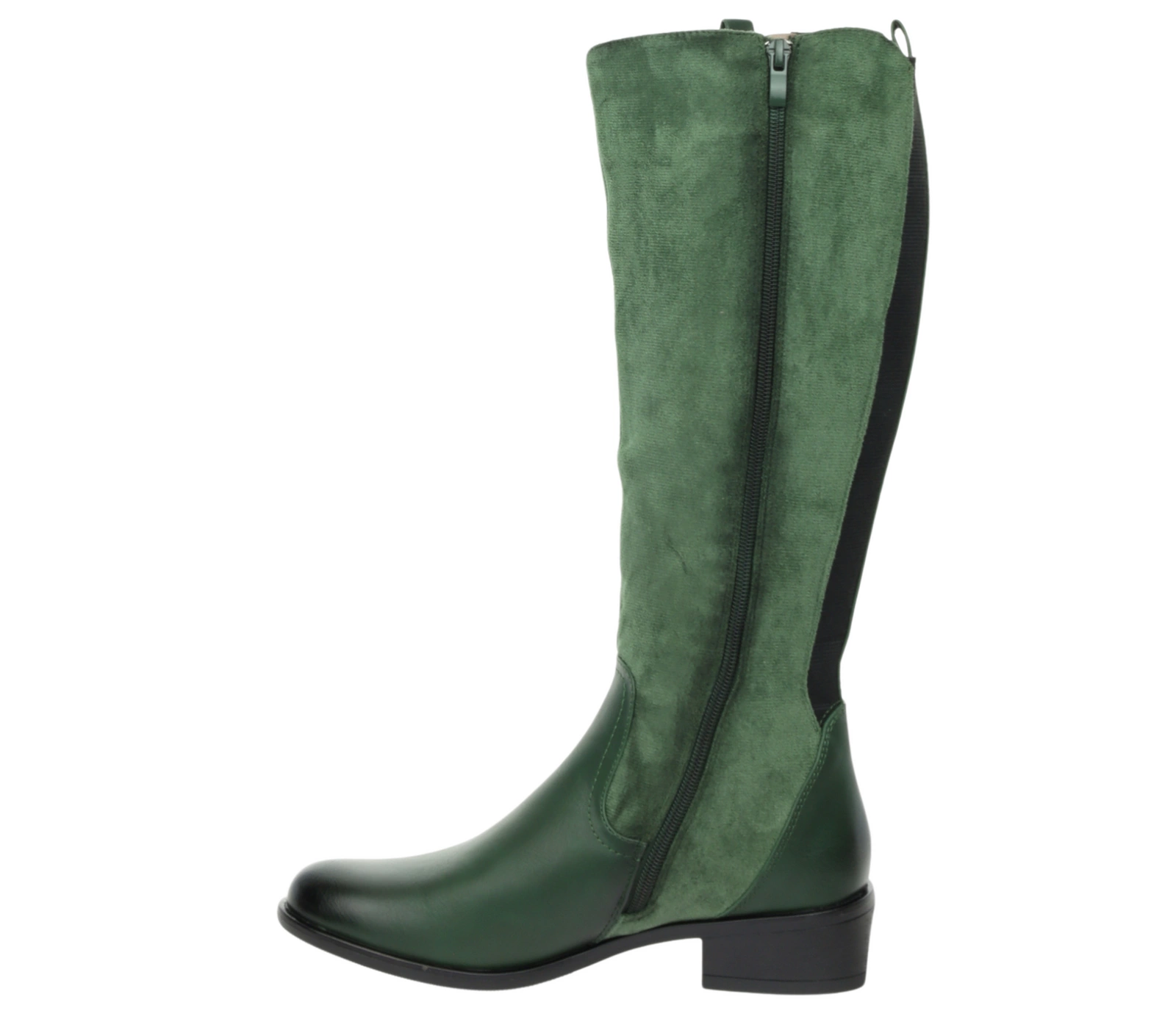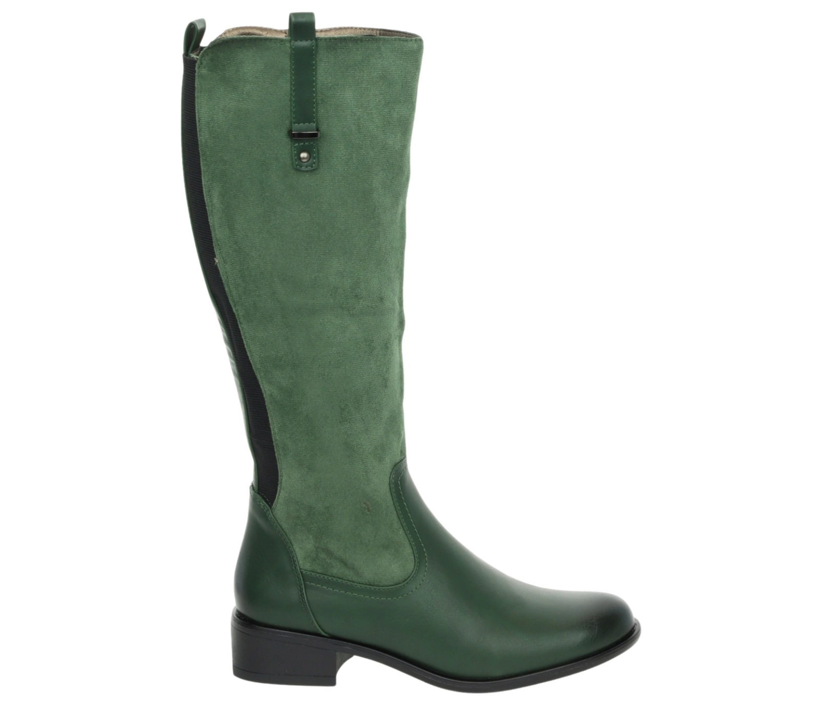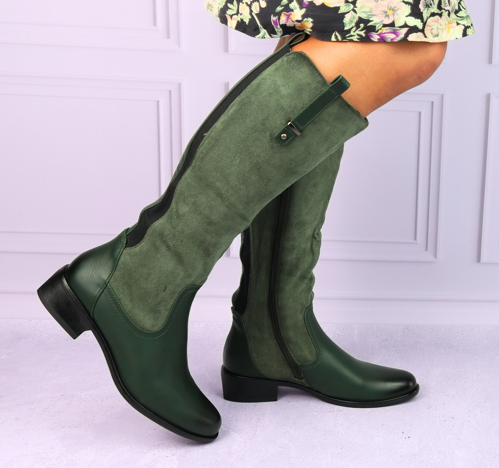 Kozaki damskie płaskie w kolorze butelkowej zieleni Karina