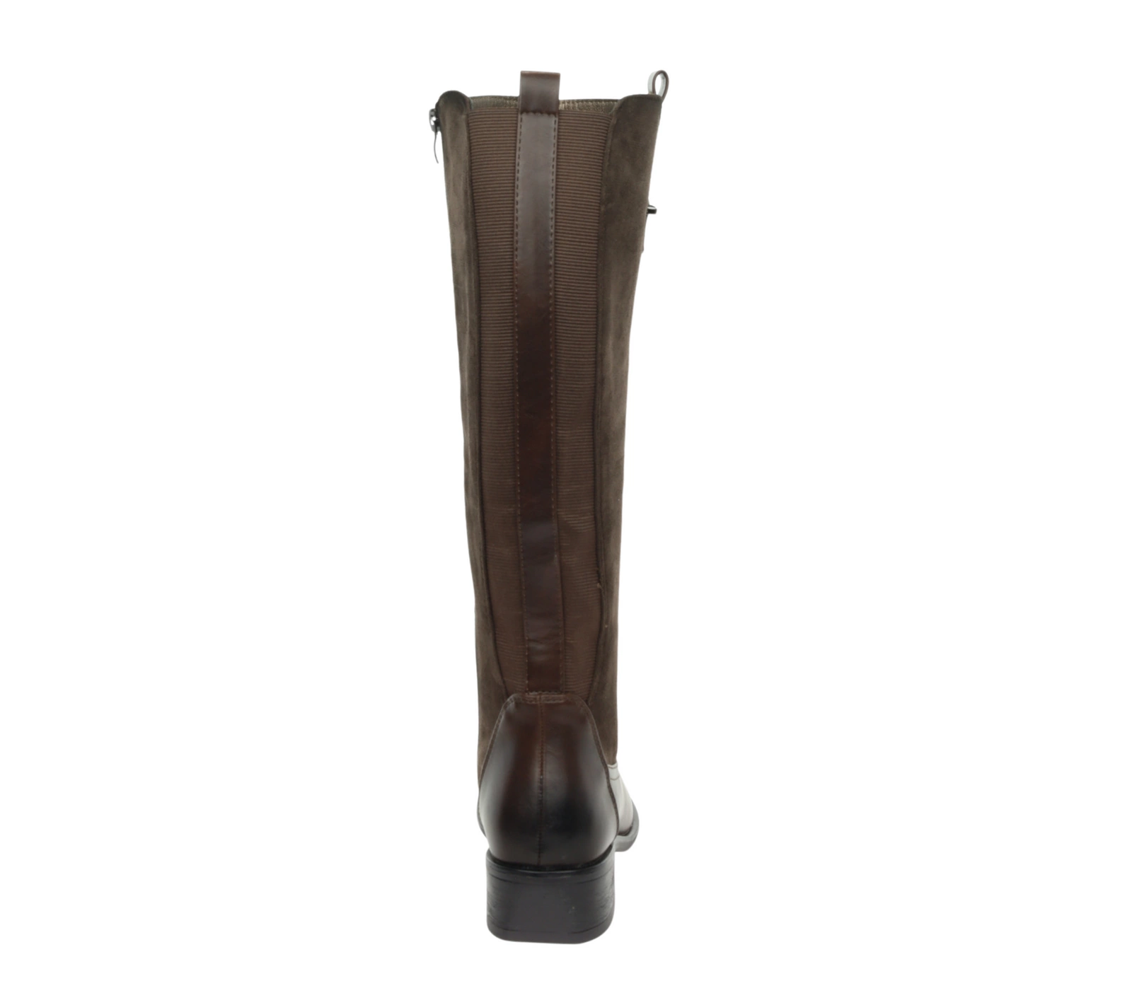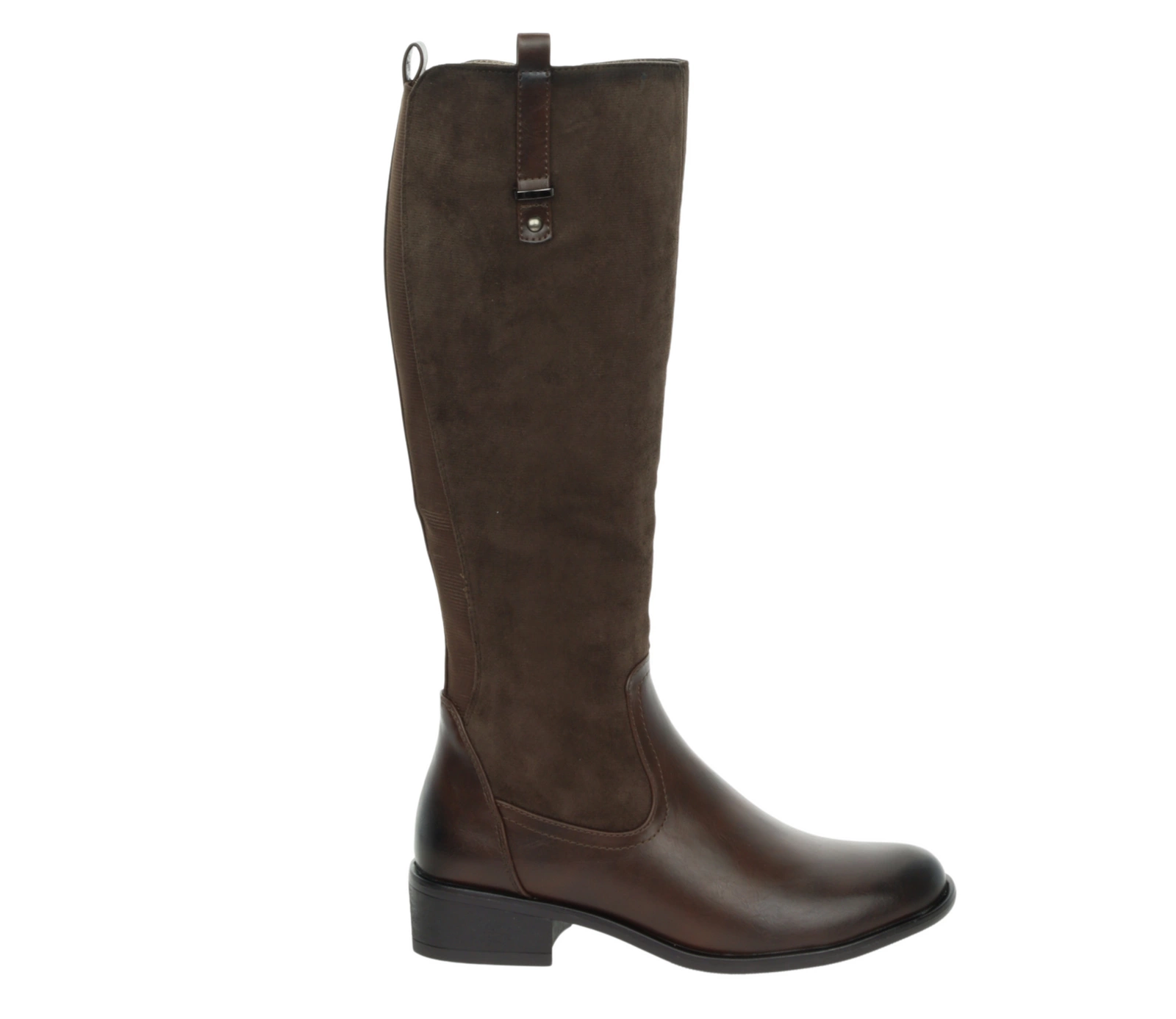 Czekoladowe kozaki damskie na płaskim obcasie ocieplane Karina