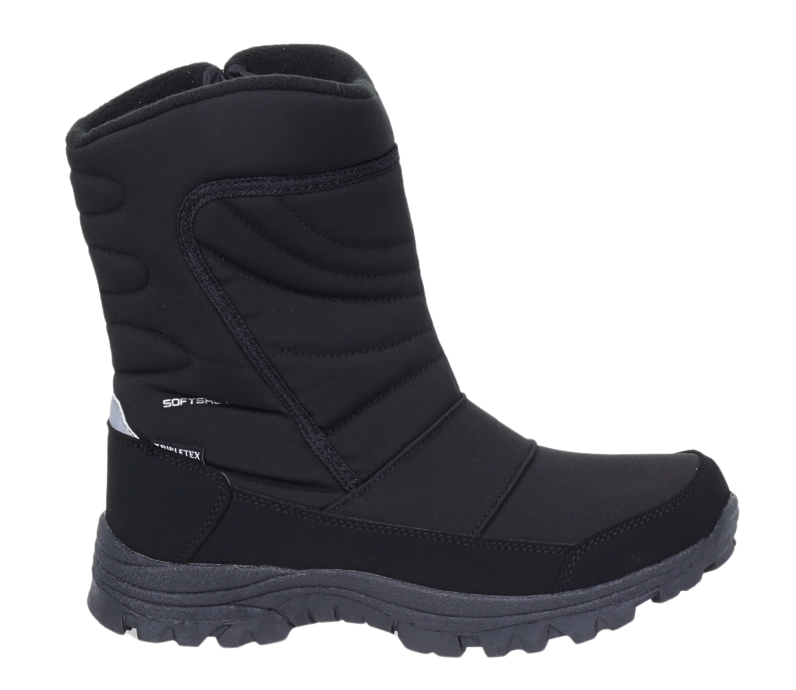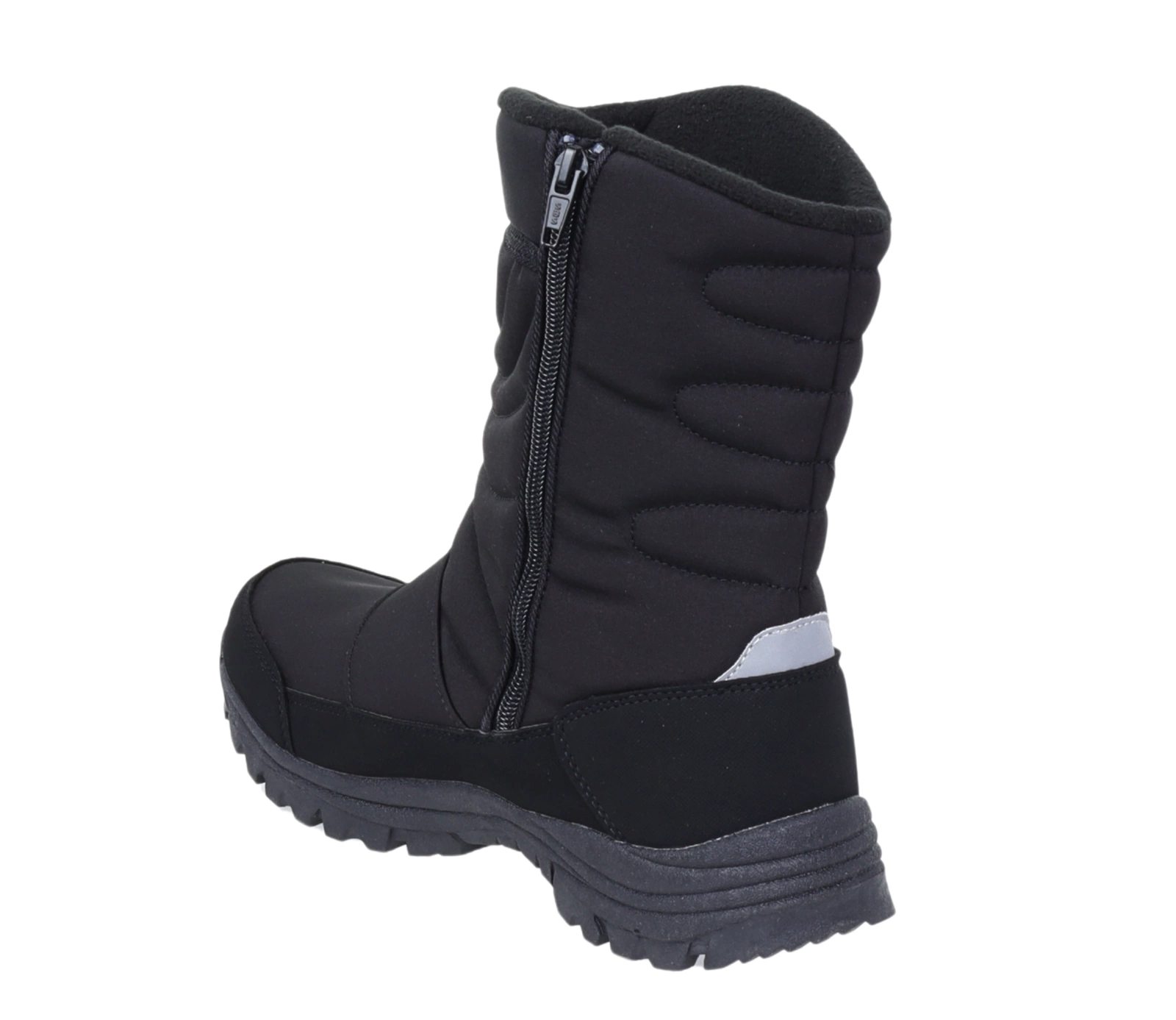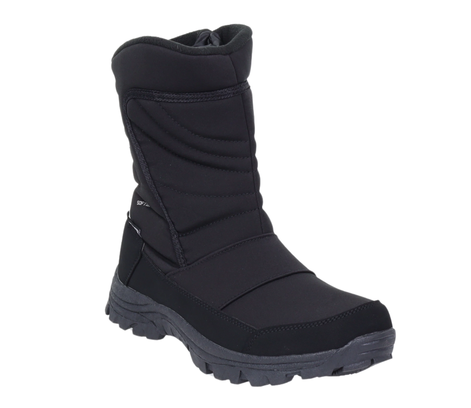 Zimowe trzewiki męskie ocieplane na zamek z membraną wodoodporną Softshell. Czarne śniegowce męskie ciepłe i nieprzemakalne buty zimowe.