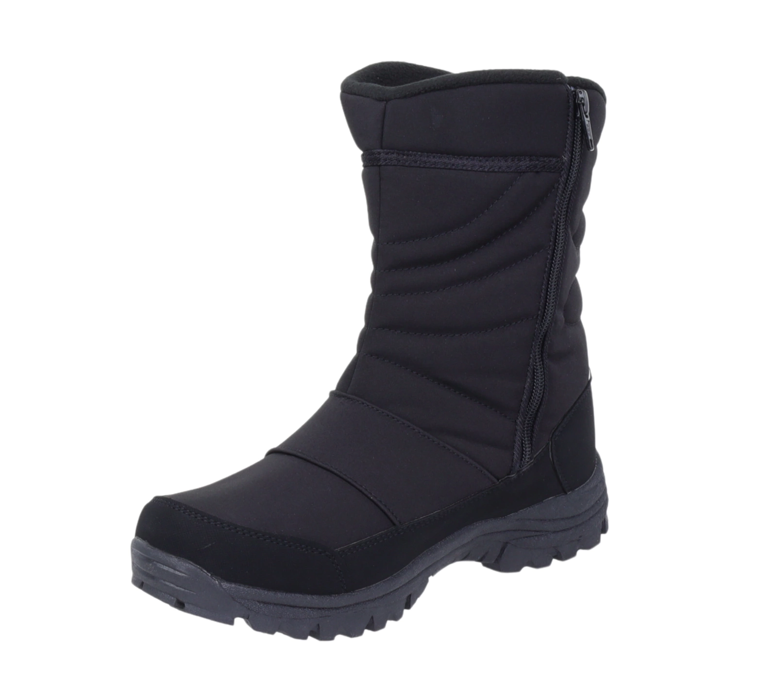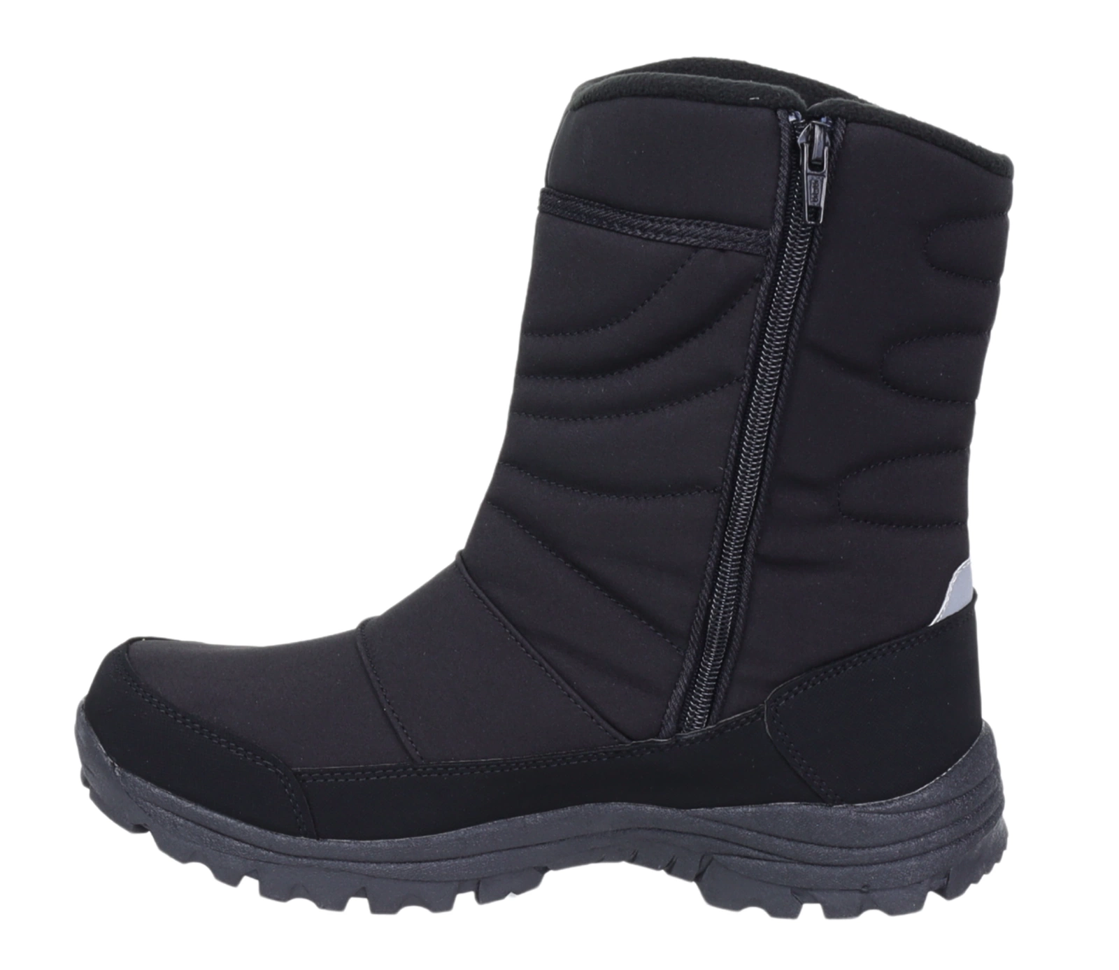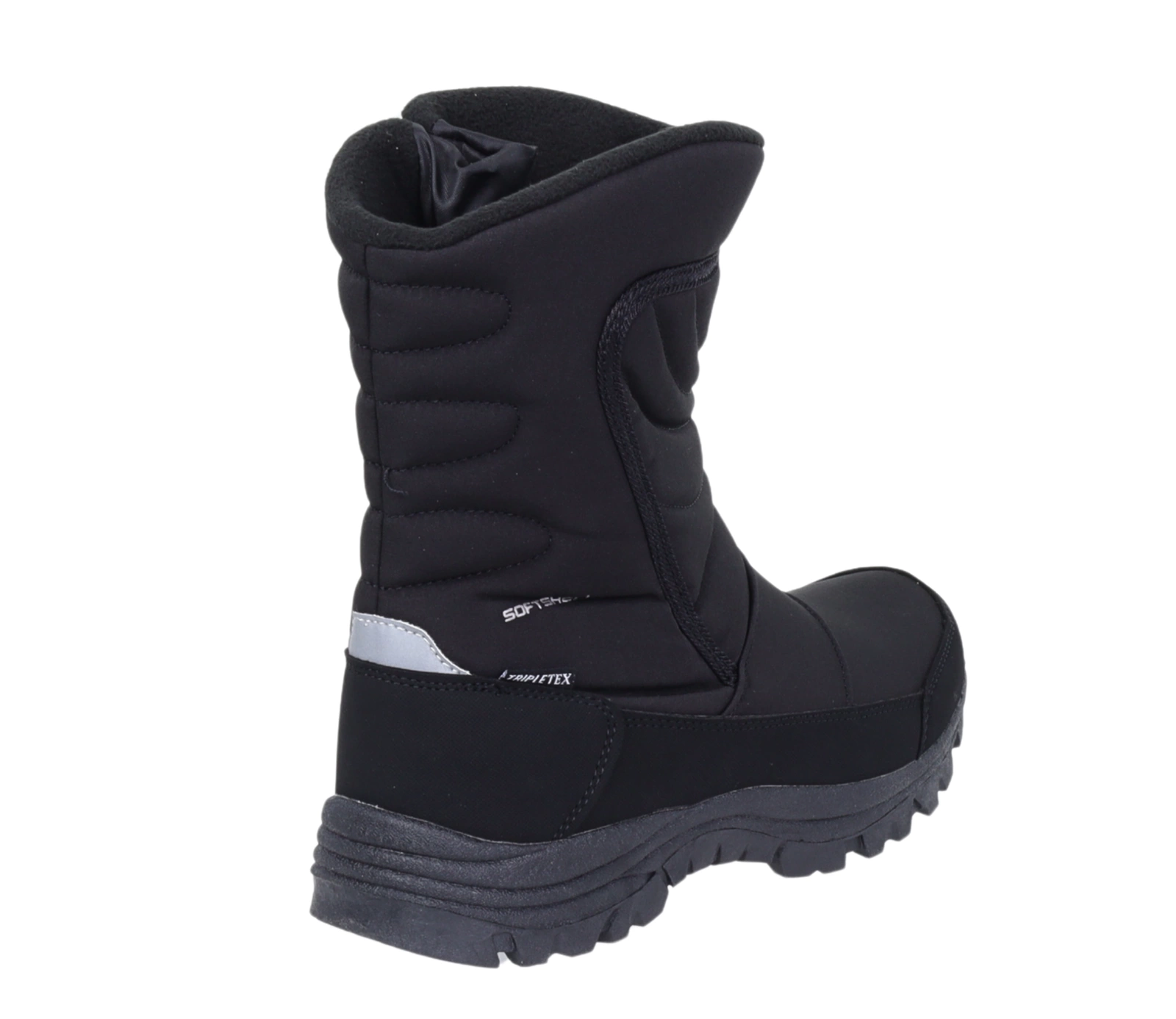 Zimowe trzewiki męskie ocieplane na zamek z membraną wodoodporną Softshell. Czarne śniegowce męskie ciepłe i nieprzemakalne buty zimowe.