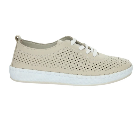 Beżowe eleganckie adidasy damskie półbuty sportowe ze ażurowe skórzane MODO