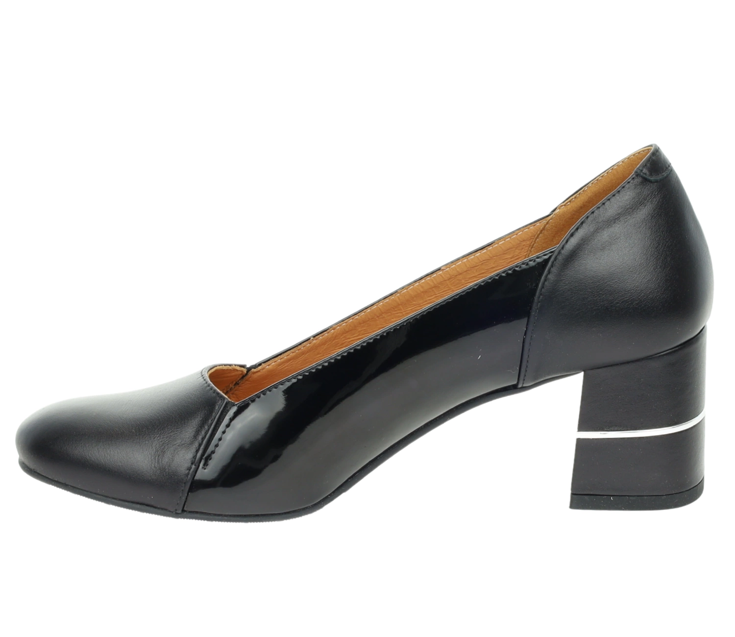 Czarne czółenka damskie na szerokim obcasie ze skóry naturalnej Gino Fabiani