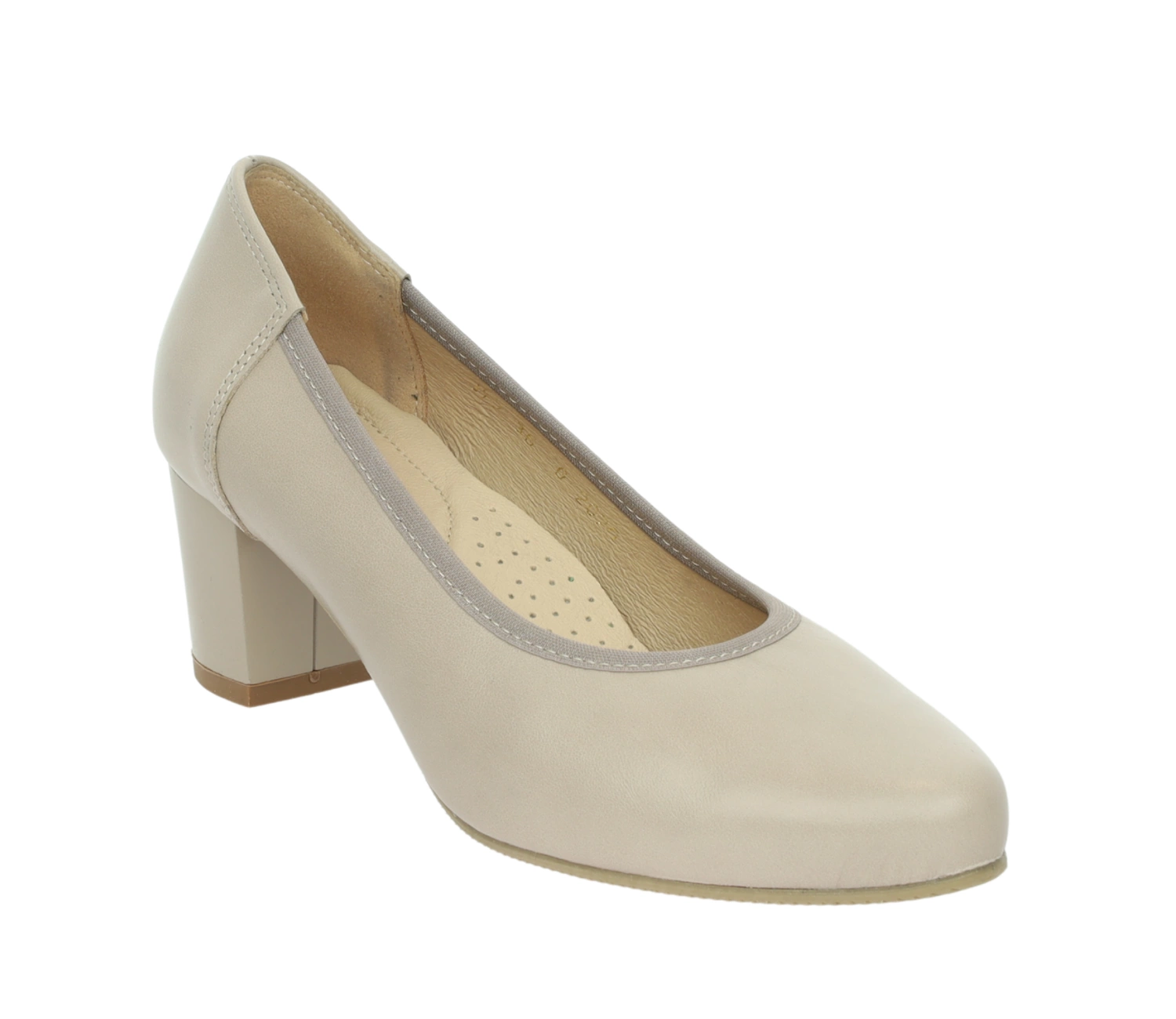 Beżowe czółenka damskie ze skóry naturalnej na niskim obcasie Gino Fabiani