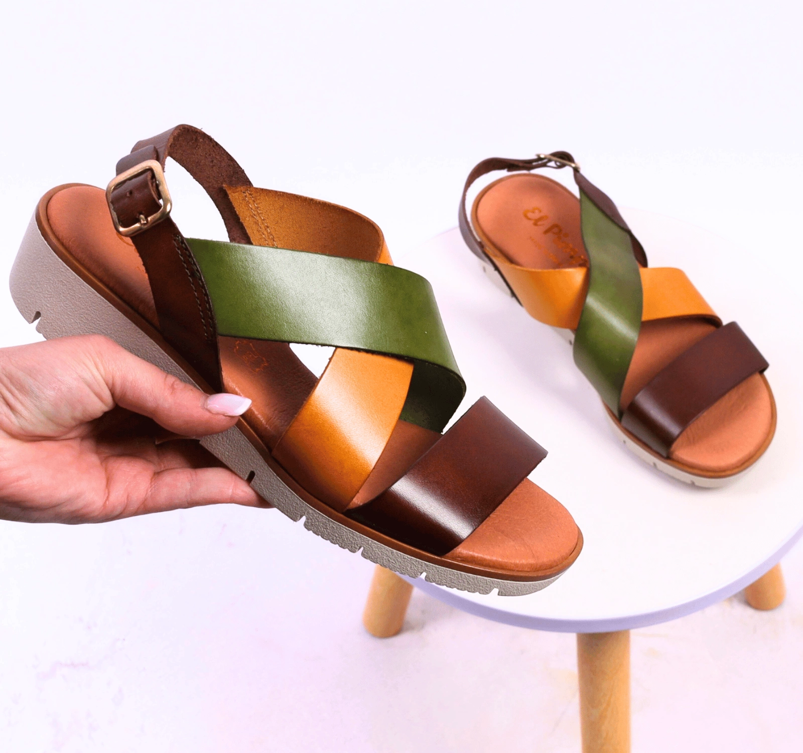 Kolorowe skórzane sandały damskie na paskach Hiszpańskie El Pimpi