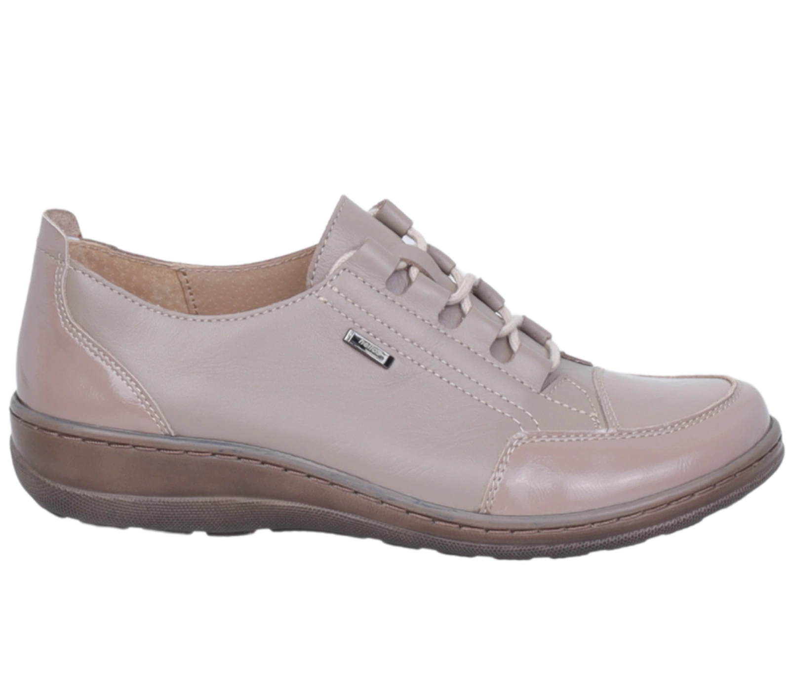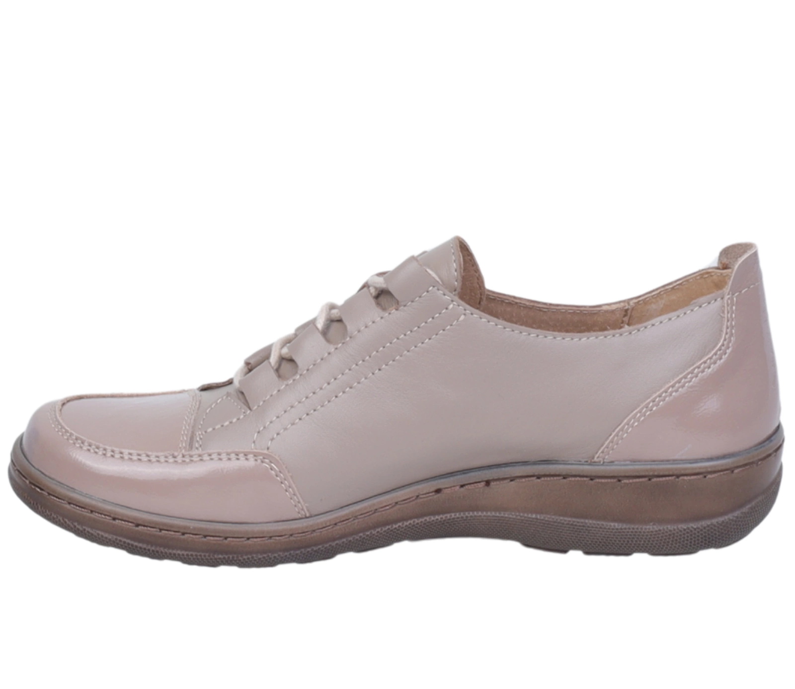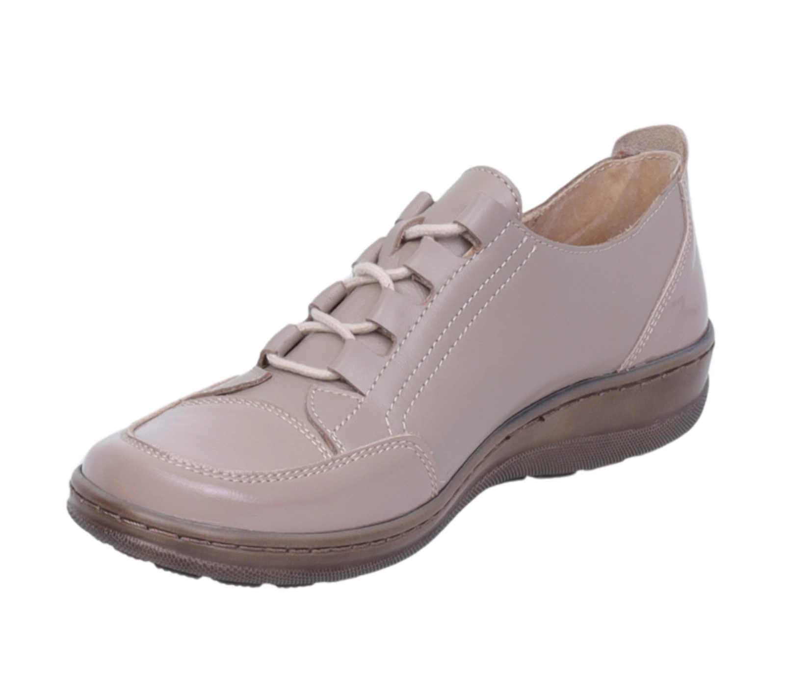 Skórzane półbuty damskie szyte komfortowe beżowe Helios model 408