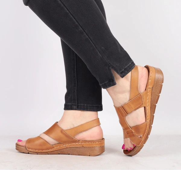 Polskie skórzane sandały damskie szyte komfortowe na rzep Gino Fabiani - Produkt Polski