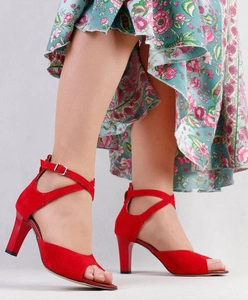 Czerwone sandały na szpilce damskie skórzane Polskie Gino Fabiani